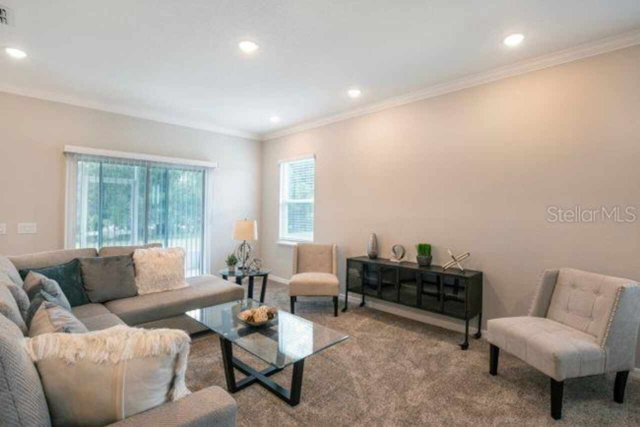 Under Construction. Your new single-family home in Palm Coast offers small-town charm with the convenience of nearby shopping, dining, and coastal attractions. The Memphis is thoughtfully designed with a special livability factor to meet your diverse needs, blending comfort, functionality, and modern style. A covered front porch creates an exceptional arrival experience, leading you into a welcoming foyer with 9’4” ceilings that set the tone for the spacious design throughout the home. Step into the open gathering area, where the great room features an additional window for natural light and six flush mount LED lights for a bright, inviting atmosphere. The adjoining breakfast nook is perfect for casual meals, while the luxury EVP flooring in the main living areas adds style and durability, complemented by soft carpet in the bedrooms. The kitchen is a standout with granite countertops, upgraded cabinets, large island with extra seating, a functional layout, and direct connection to the dining spaces, making it ideal for both everyday living and entertaining. The secondary bedrooms are each positioned for privacy, making them ideal for family or guests. Tucked away at the rear of the home, the primary suite offers a peaceful retreat complete with a walk-in closet and a large tile shower ensuite bath. Step outside to the 9’4” screened-in lanai, the perfect space for enjoying Florida’s sunshine while entertaining or unwinding in comfort. Enjoy modern smart home technology, including a Ring Video Doorbell, Smart Thermostat, Keyless Entry Smart Door Lock, and Deako Switches. The home also boasts a beautifully landscaped yard, while architectural shingles ensure lasting durability and style. Backed by a full builder warranty, The Memphis offers peace of mind along with a unique layout ready for you to personalize—the perfect combination of comfort, elegance, and practicality.