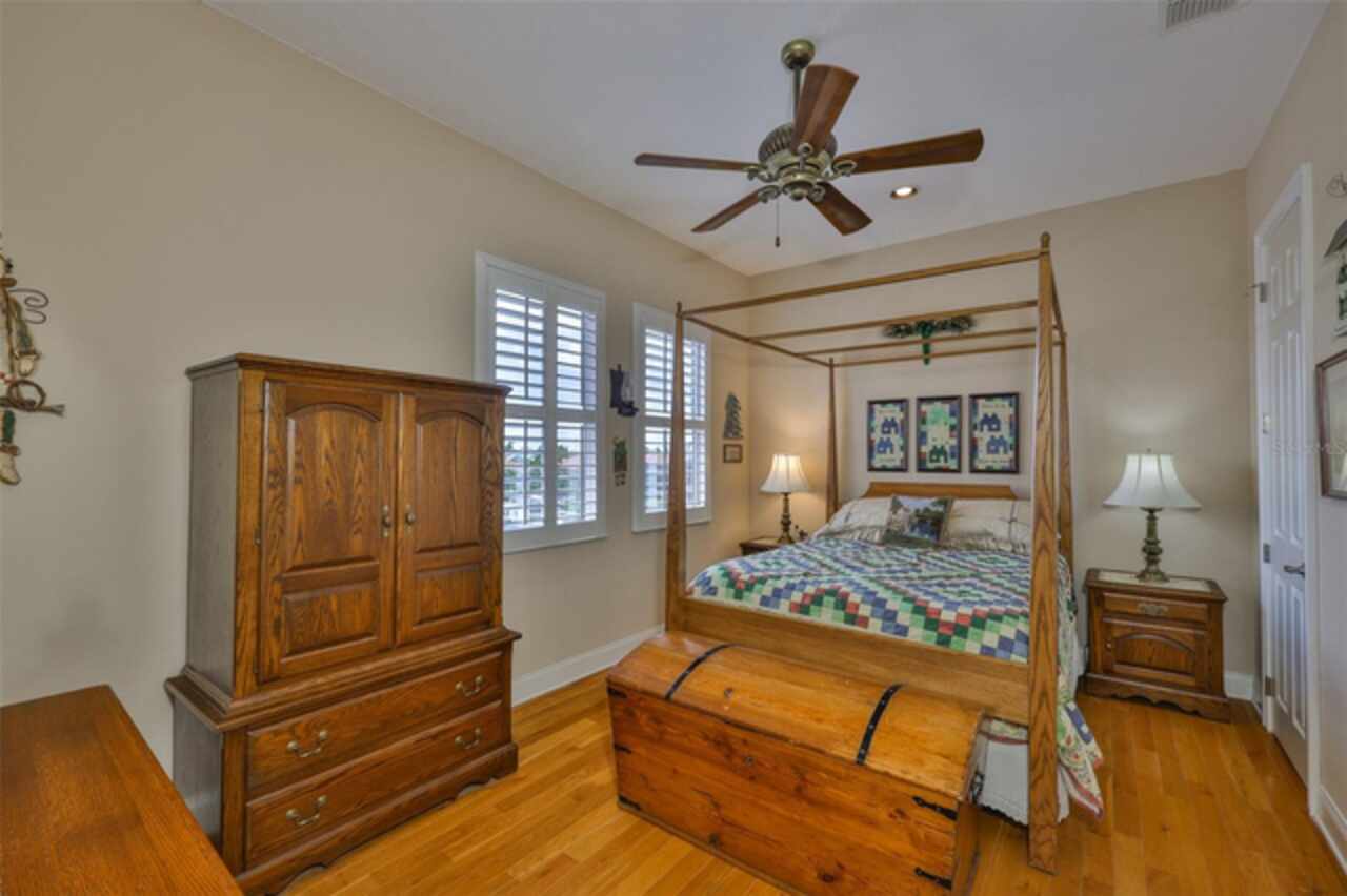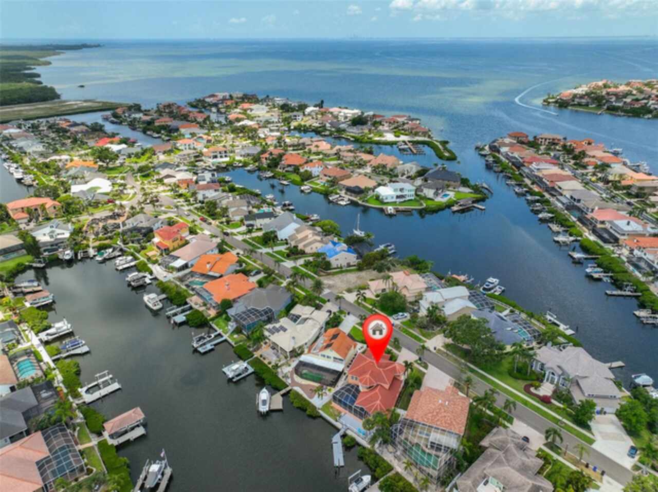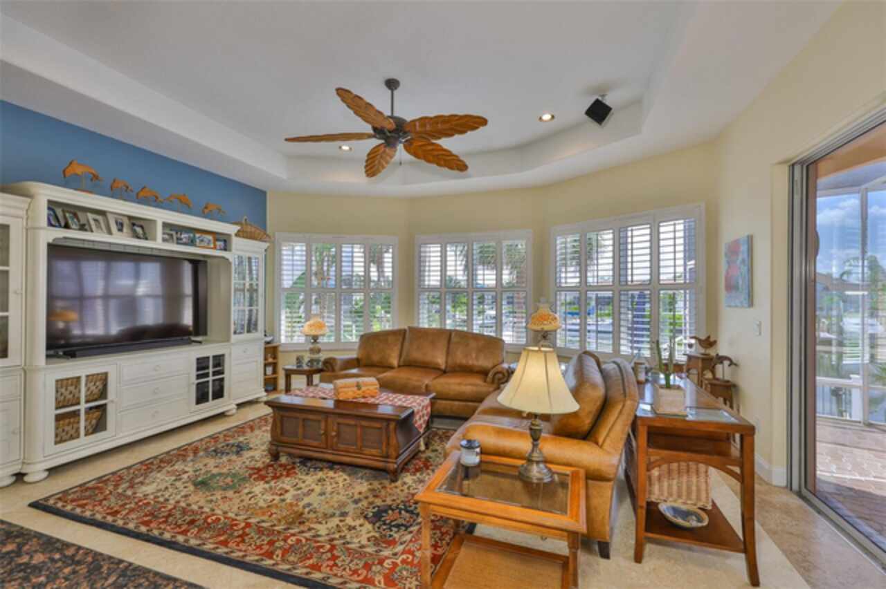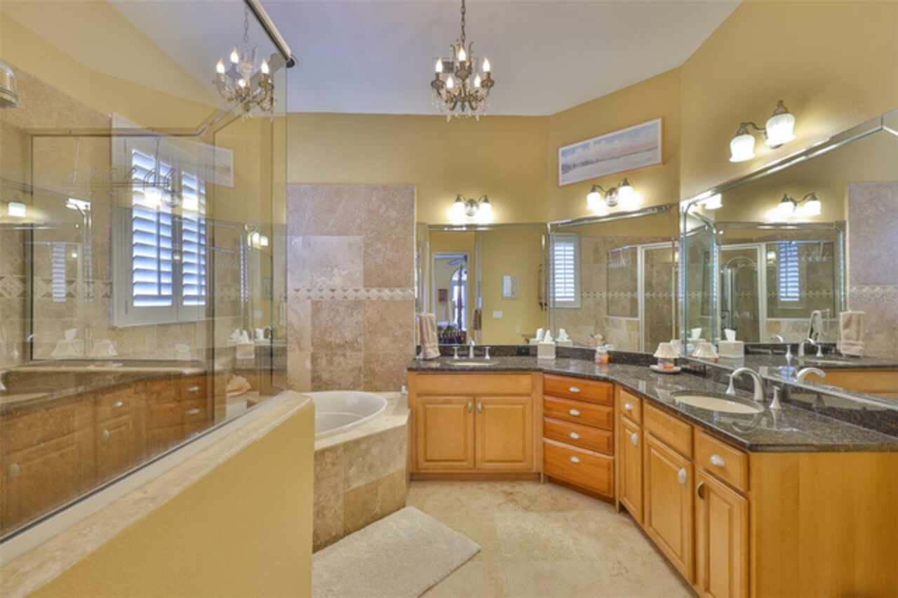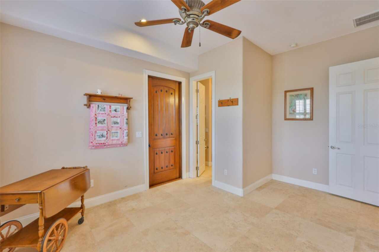 Welcome to your dream home in the prestigious Symphony Isles community! This breathtaking waterfront residence boasts a castle-like curb appeal, featuring Spanish tile accents, a grand baluster staircase, and an elegant balcony that exudes timeless charm. Step inside to discover a spacious, open floor plan adorned with gorgeous travertine floors throughout. Elegant columns and plantation shutters enhance the light-filled interiors, creating a sophisticated and inviting atmosphere. The formal living and dining areas are perfect for entertaining, complemented by an adjacent bar with a sink for effortless hosting. The large chef's kitchen is a culinary masterpiece, equipped with maple wood cabinets, granite countertops, a generous island with a sink, and stainless steel appliances with two full size ovens, gas stove, and large walk-in pantry. The family room offers stunning bay windows and sliding doors that open to the covered lanai and pool deck, ideal for indoor-outdoor living and enjoying Florida's beautiful weather. The downstairs master suite features tray ceilings, expansive walk-in closets, and a spa-inspired bathroom with a garden tub and a stand-up shower - your private retreat. For added convenience, a full-size elevator provides easy access to all floors. Upstairs, you'll find a spacious bonus room with a balcony, perfect for a home theater, gym, or additional living space. Three sizable bedrooms with Jack and Jill bathrooms, one with access to a private balcony, offer comfort and privacy for family and guests. Relax outdoors on your private lanai, complete with a sparkling pool and heated spa, perfect for unwinding or entertaining. The newer deck area with an outdoor grill makes outdoor dining and gatherings a breeze. Bring your sailboat or large vessel, Symphony Isles offers deep canals and private docks to accommodate your boating lifestyle. Enjoy the community's exclusive amenities, including private roads, 24/7 manned gate access, a private beach, swimming pool, clubhouse, and playgrounds, everything you need for a luxurious and active Florida lifestyle. Don't miss the opportunity to own this extraordinary waterfront estate, schedule your private tour today!