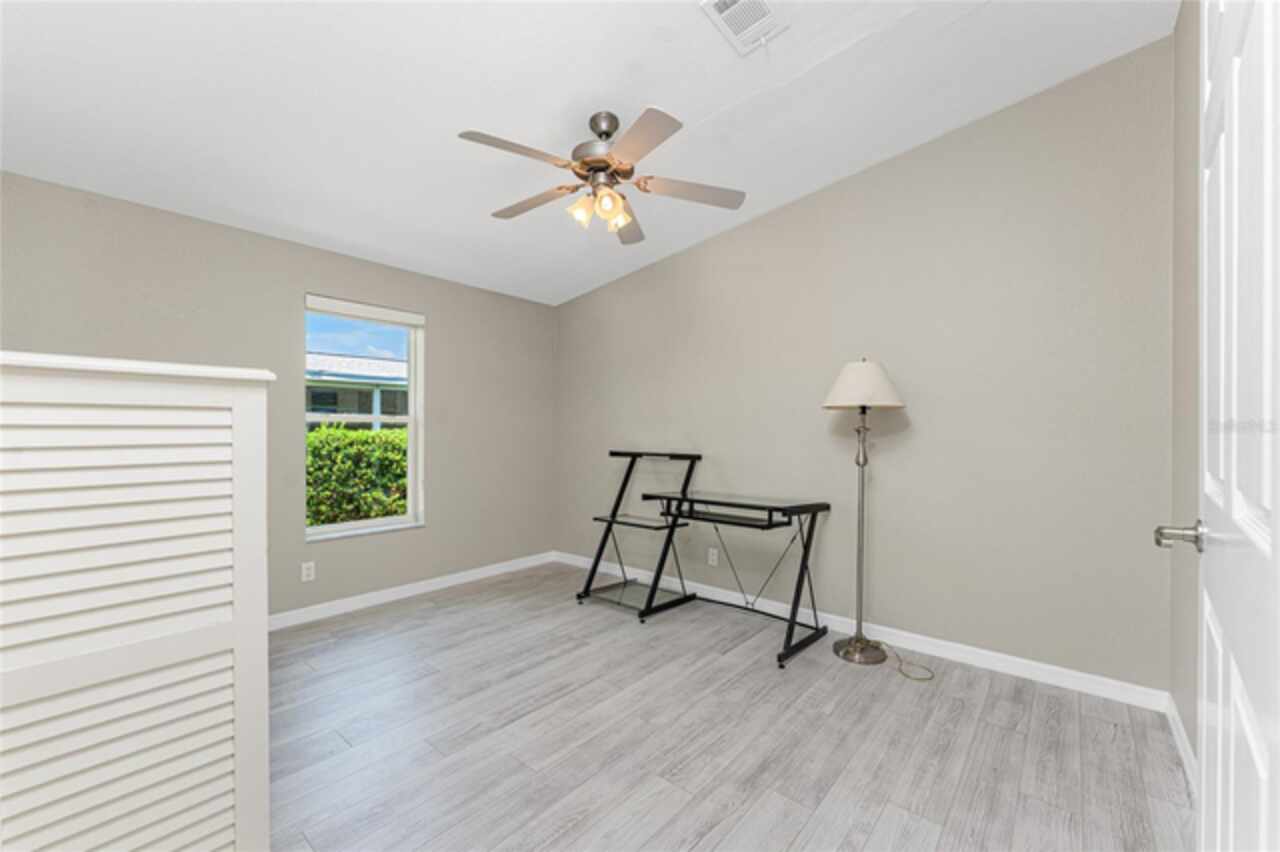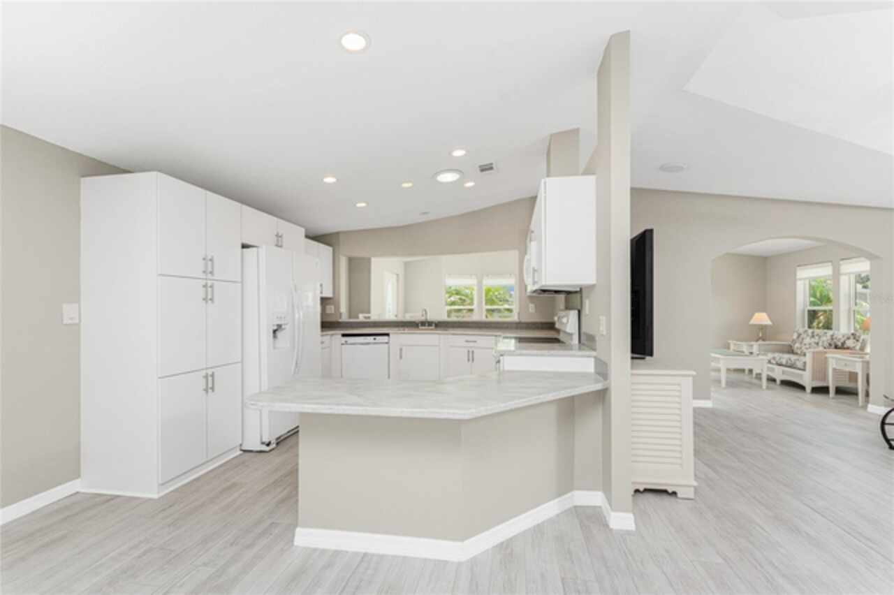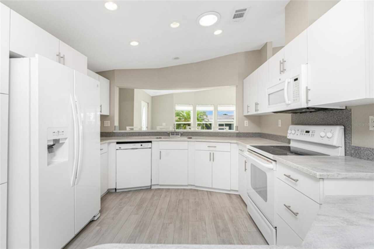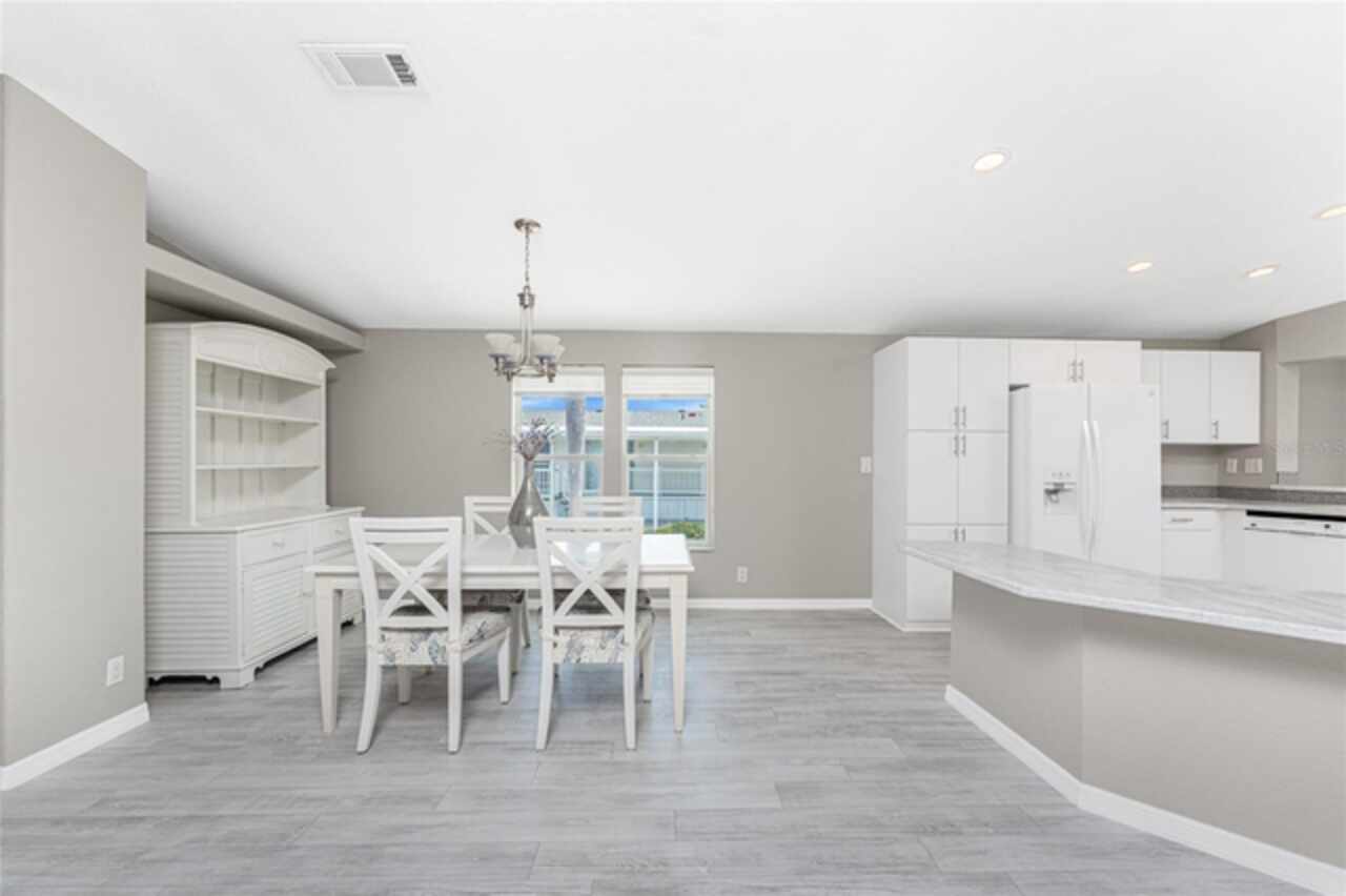 Live the good life at The Pines of Sandalhaven, a serene 55+ deed-restricted community that combines comfort, convenience, and coastal charm. This furnished, three-bedroom, two-bathroom home includes a one-car oversized enclosed garage, unique as the only one in the community, and is offered fully equipped with a golf cart featuring newer batteries, lawn mower, and bicycle. Located in the X flood zone and equipped with hurricane shutters, this property offers peace of mind. Exterior highlights include stone accents on the new siding, mature landscaping, and a 2023 roof. Inside, the home is light and bright, with large windows, brand new light-colored luxury vinyl plank flooring throughout, new drywall, new insulation, vaulted ceilings, and a fresh neutral color palette. The decorative leaded glass front door opens to a spacious sunroom that serves as an ideal formal living area or a sun filled place to relax. The family room features a cathedral-style wall of windows that allows abundant natural light to fill the space. The large kitchen includes ample white cabinetry, generous countertop space, and two breakfast bars—ideal for casual meals or entertaining. A formal dining area adjoins the kitchen, offering the perfect setting for holiday gatherings or family meals. The ensuite primary bedroom has plenty of space for furnishings, a door leading to the backyard, vaulted ceilings, and an oversized reach-in closet. The master bathroom features a dual-sink vanity and a walk-in shower. Both guest bedrooms are comfortably sized, and the guest bathroom includes a shower and tub combination for added flexibility. The interior laundry room offers additional functionality with plenty of built-in wire shelving for storage. When you are ready to enjoy the outdoors, the screened lanai with ceiling fans is a great place to kick back and relax—or fire up the grill after a day on the water. The community features a heated swimming pool, clubhouse with organized activities throughout the year, pickleball and bocce courts, and beautifully maintained park areas. Pet owners will appreciate that there are no size restrictions for pets. With low quarterly HOA fees and the advantage of land ownership (eliminating lot rental costs) The Pines of Sandalhaven offers an affordable and active lifestyle. This home puts you close to everything that makes Florida living so special, white sandy beaches in Englewood and Boca Grande, great local golf courses, major shopping, boutique browsing, many local restaurants and tiki bars, and amazing parks. You will be close to The Wildflower Preserve’s where you can stroll through the nature trails and birdwatching, or explore the wide-open beauty of the nearby Amberjack Environmental Park with its scenic trails. If you’re looking for a laid-back, fun, and sunny lifestyle, 9209 Pinehaven Way is ready for you. Contact us today to schedule your private showing.