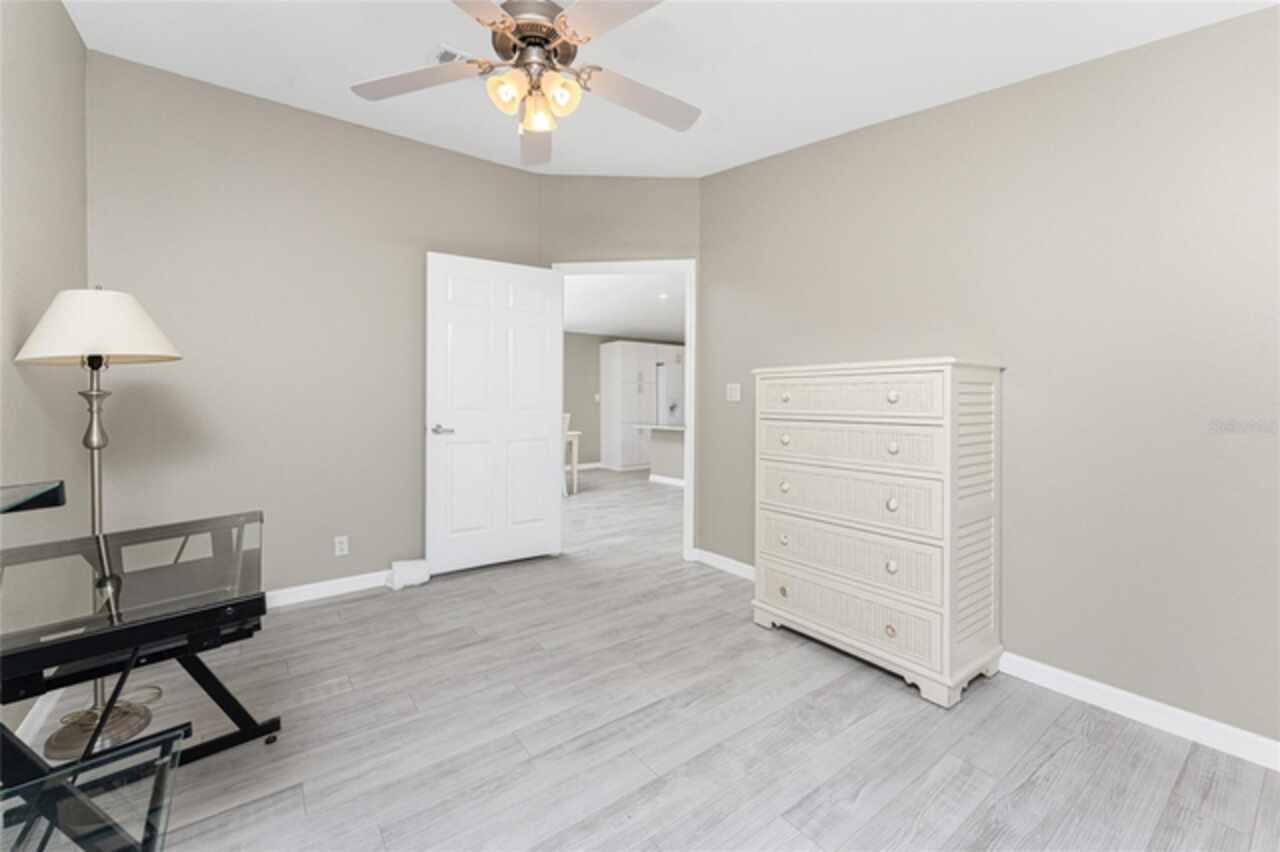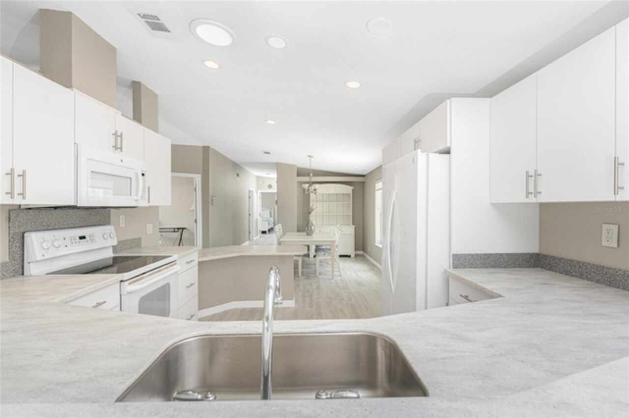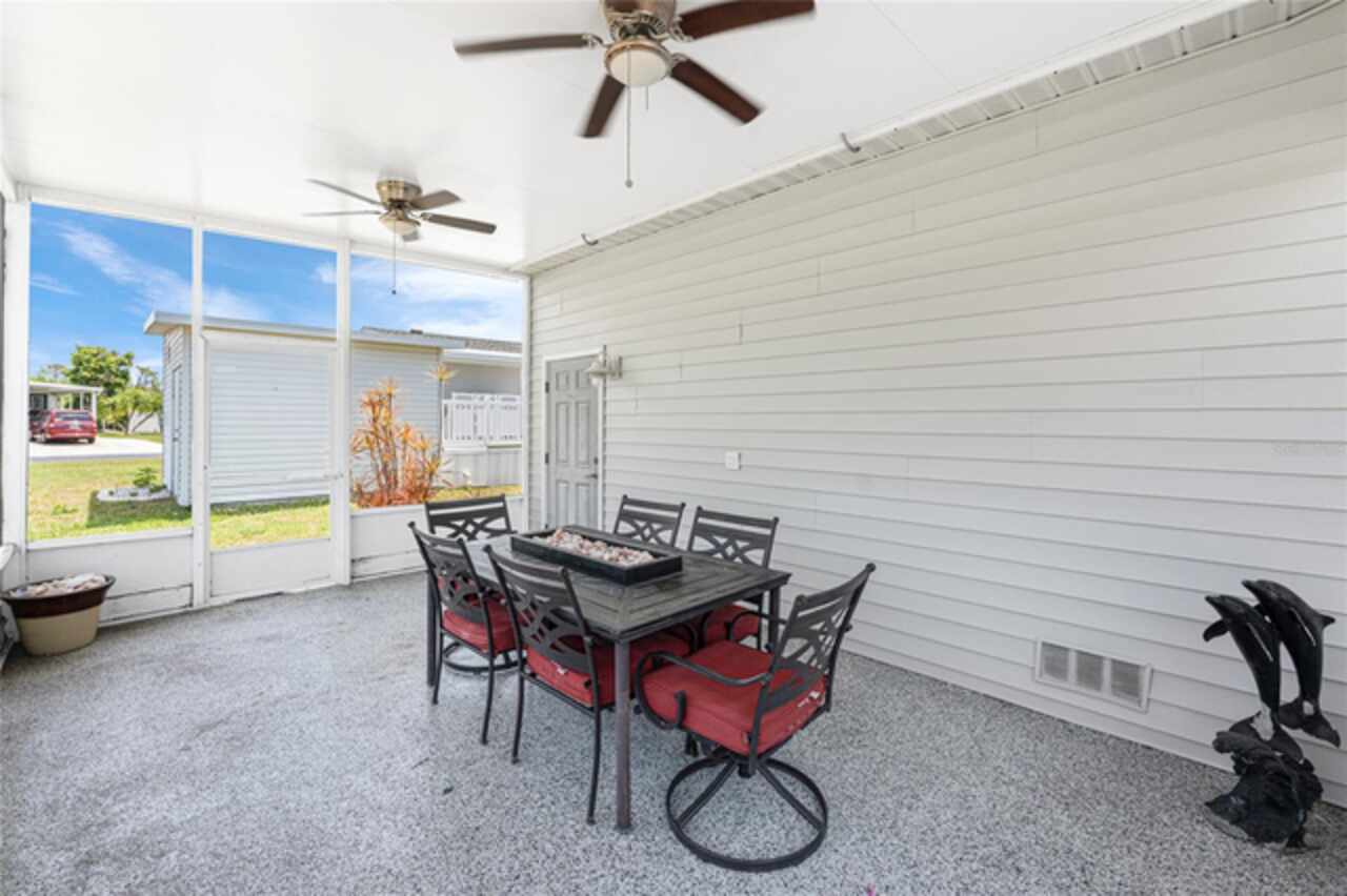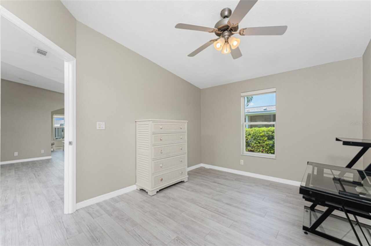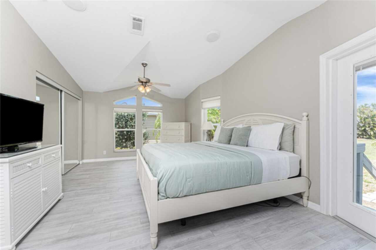 Live the good life at The Pines of Sandalhaven, a serene 55+ deed-restricted community that combines comfort, convenience, and coastal charm. This furnished, three-bedroom, two-bathroom home includes a one-car oversized enclosed garage, unique as the only one in the community, and is offered fully equipped with a golf cart featuring newer batteries, lawn mower, and bicycle. Located in the X flood zone and equipped with hurricane shutters, this property offers peace of mind. Exterior highlights include stone accents on the new siding, mature landscaping, and a 2023 roof. Inside, the home is light and bright, with large windows, brand new light-colored luxury vinyl plank flooring throughout, new drywall, new insulation, vaulted ceilings, and a fresh neutral color palette. The decorative leaded glass front door opens to a spacious sunroom that serves as an ideal formal living area or a sun filled place to relax. The family room features a cathedral-style wall of windows that allows abundant natural light to fill the space. The large kitchen includes ample white cabinetry, generous countertop space, and two breakfast bars—ideal for casual meals or entertaining. A formal dining area adjoins the kitchen, offering the perfect setting for holiday gatherings or family meals. The ensuite primary bedroom has plenty of space for furnishings, a door leading to the backyard, vaulted ceilings, and an oversized reach-in closet. The master bathroom features a dual-sink vanity and a walk-in shower. Both guest bedrooms are comfortably sized, and the guest bathroom includes a shower and tub combination for added flexibility. The interior laundry room offers additional functionality with plenty of built-in wire shelving for storage. When you are ready to enjoy the outdoors, the screened lanai with ceiling fans is a great place to kick back and relax—or fire up the grill after a day on the water. The community features a heated swimming pool, clubhouse with organized activities throughout the year, pickleball and bocce courts, and beautifully maintained park areas. Pet owners will appreciate that there are no size restrictions for pets. With low quarterly HOA fees and the advantage of land ownership (eliminating lot rental costs) The Pines of Sandalhaven offers an affordable and active lifestyle. This home puts you close to everything that makes Florida living so special, white sandy beaches in Englewood and Boca Grande, great local golf courses, major shopping, boutique browsing, many local restaurants and tiki bars, and amazing parks. You will be close to The Wildflower Preserve’s where you can stroll through the nature trails and birdwatching, or explore the wide-open beauty of the nearby Amberjack Environmental Park with its scenic trails. If you’re looking for a laid-back, fun, and sunny lifestyle, 9209 Pinehaven Way is ready for you. Contact us today to schedule your private showing.