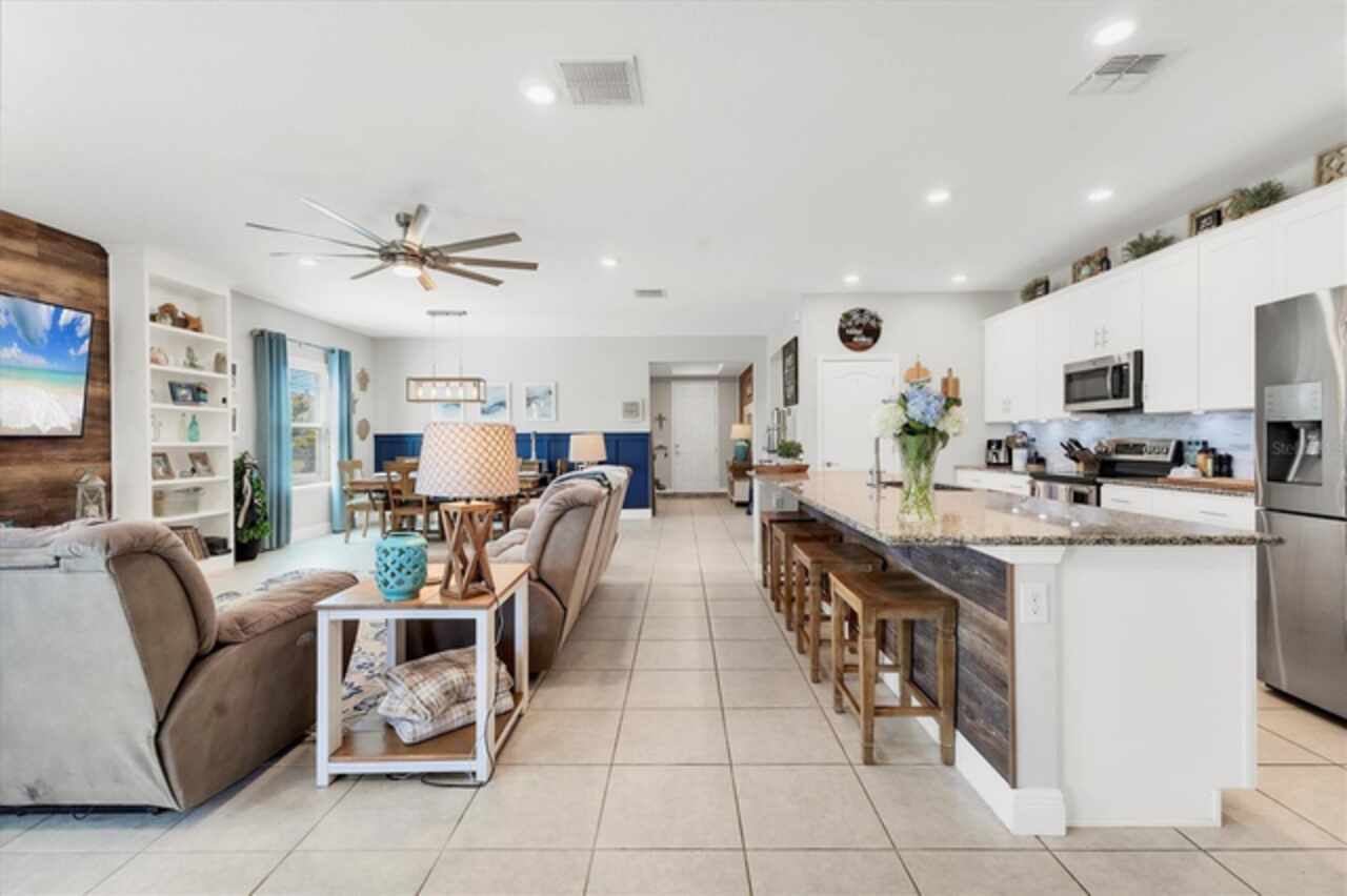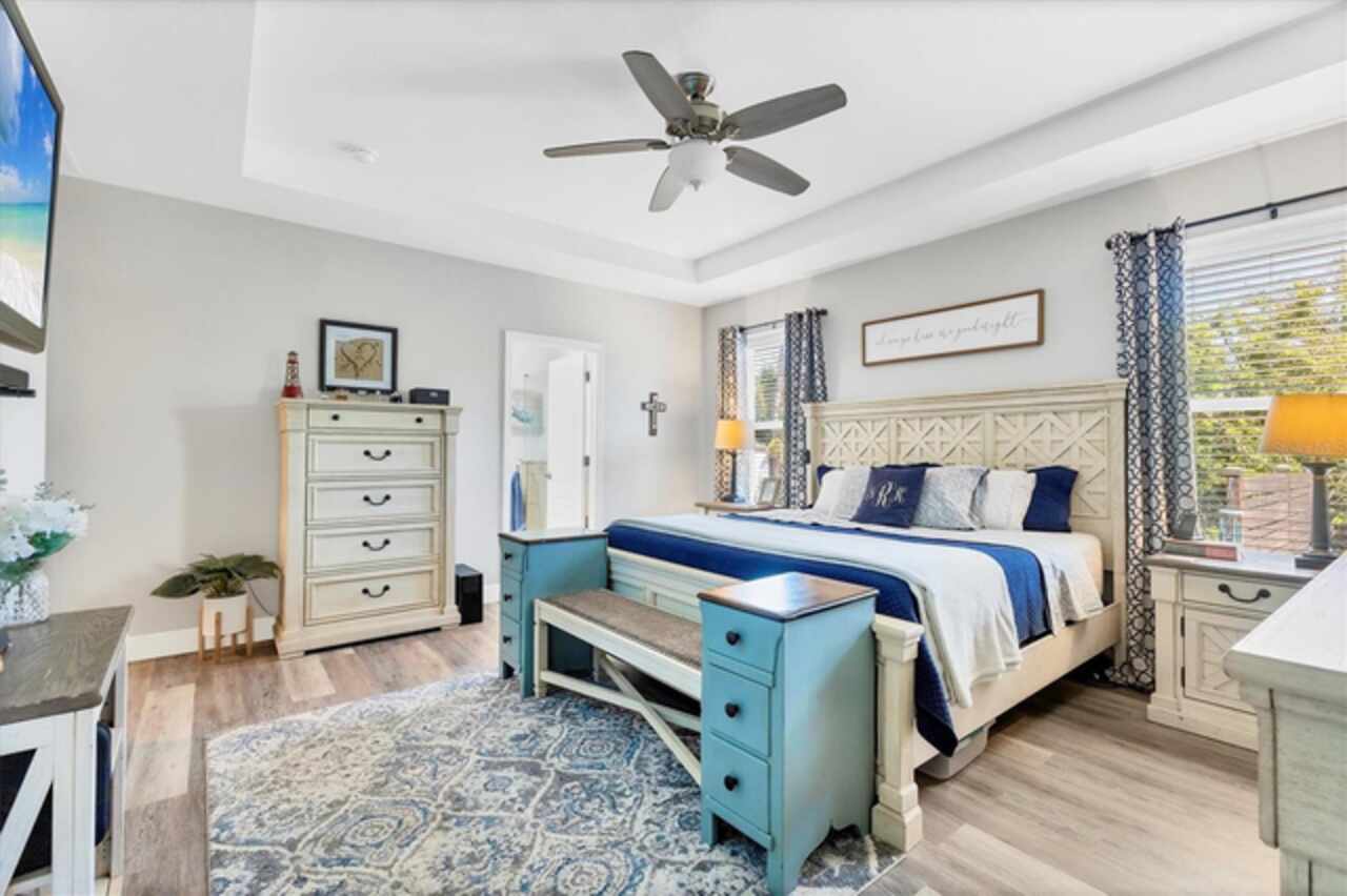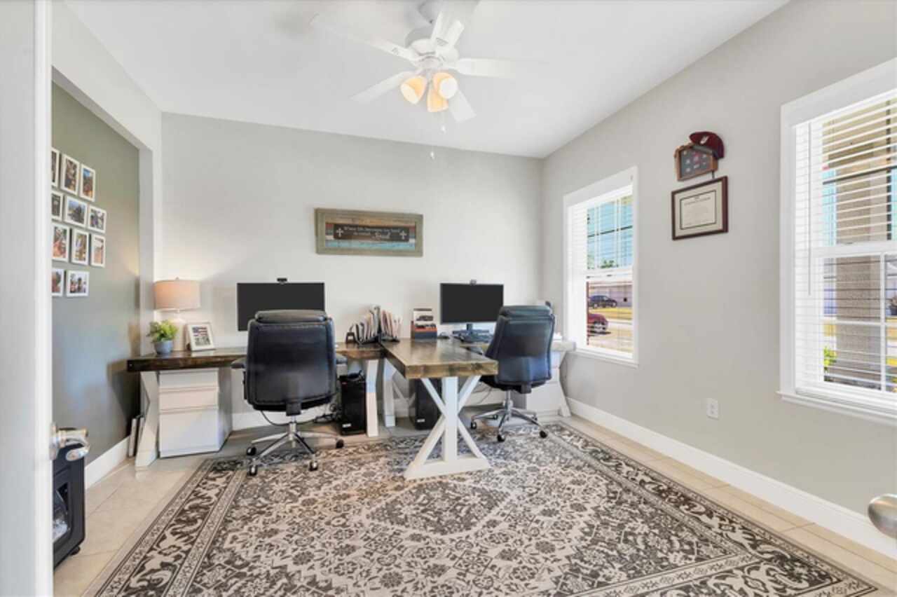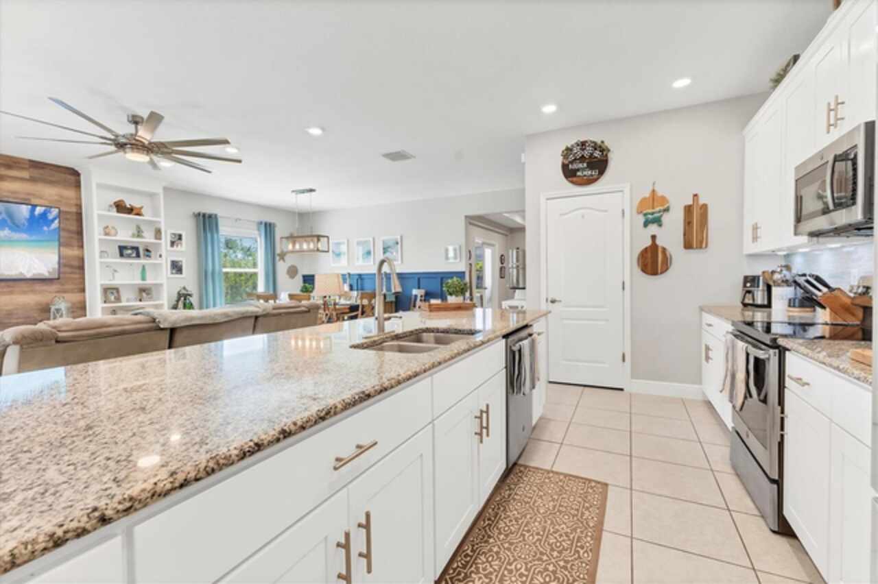 Under contract-accepting backup offers. NEW LOWER PRICE, GREAT OPPORTUNITY FOR NEW OWNER!!! NO NEED TO WAIT ON NEW CONSTRUCTION...NO CDD FEES & NO REQUIRED HOA FEES (voluntary HOA)!!! Original owners have upgraded and meticulously maintained this beautiful 1 level, 4 bedrooms, 3 baths with an office/den and a 3-car garage in South Gulf Cove. The front exterior features mature landscaping, low voltage lighting and custom curbing. Once Inside you are welcomed into a large foyer with wooden accent wall and tray ceiling. Off to the right and through the double frosted doors of the foyer is the home office/den which is large enough to accommodate two workspaces. Just past the foyer on the left is a hallway which has access to the garage. This hallway also features a private bedroom 2 (15x11) and conveniently placed full bathroom that would be perfect for an in-law or guest wing. In the heart of the home, you will find the much-desired open concept kitchen / dining / living room. This home has a true chef’s kitchen, featuring granite counters, an oversized center island with seating to accommodate four, 42-inch wood cabinets with crown molding & soft close doors / drawers, under cabinet lighting, tile backsplash, stainless appliances & pantry. There are two dining areas within the center of this home- a full dining area (10x15) with a custom wood trimmed accent wall and a dining nook (which is currently being used for a coffee bar and regular bar). Just off the kitchen is an oversized living room with two stunning custom-built bookcases and wooden accent wall large enough to fit almost any size TV (currently using a 65”). There is space built conveniently behind the accent wall to hide all of your electrical cords. The living room also has floor outlets under the sofa for your convenience. The hallway off the far side of the kitchen features the laundry room, bedroom 3 (12 x12), bedroom 4 (13x11), full bathroom and master bedroom / bathroom suite. The laundry room has been completed upgraded with cabinets and additional storage making this an extremely functional space. All three bedrooms within this home feature Stainmaster carpet with upgraded padding which was installed 2/25. The master suite features the owner’s bedroom (16x14) with an ensuite bathroom featuring granite counters, double sinks, private toilet area, walk-in tile shower & garden tub. The oversized walk-in closet (7x10) features double racks for maximum apace. Heading outside you will find an enclosed lanai (12x14), a fully fenced backyard, an amazing paver patio, storage shed and more than enough room to add a pool or garden if you want. EXTRA HOME FEATURES: hurricane shutters, whole house gutters, window blinds, Trane A/C system, Nest thermostat, low ceiling for maximum energy efficiency, extended concrete pads with fence to store trash cans outside, garage epoxy flooring, garage storage racks and pull-down ladder for attic access.