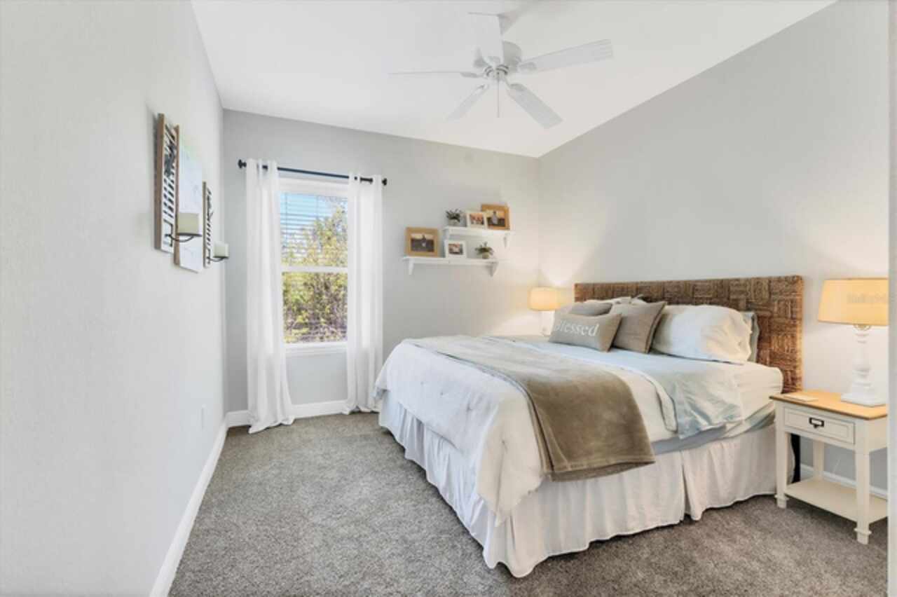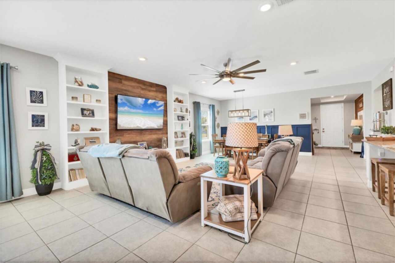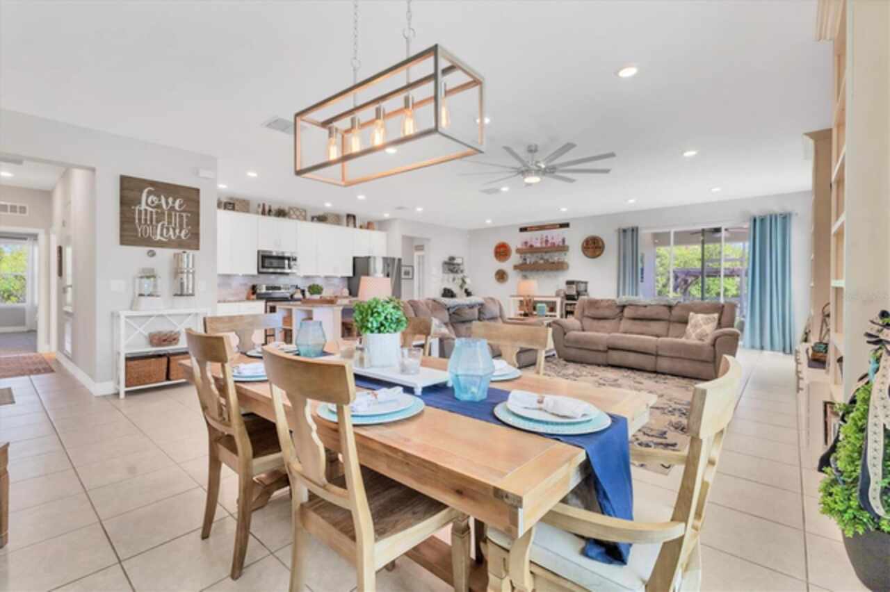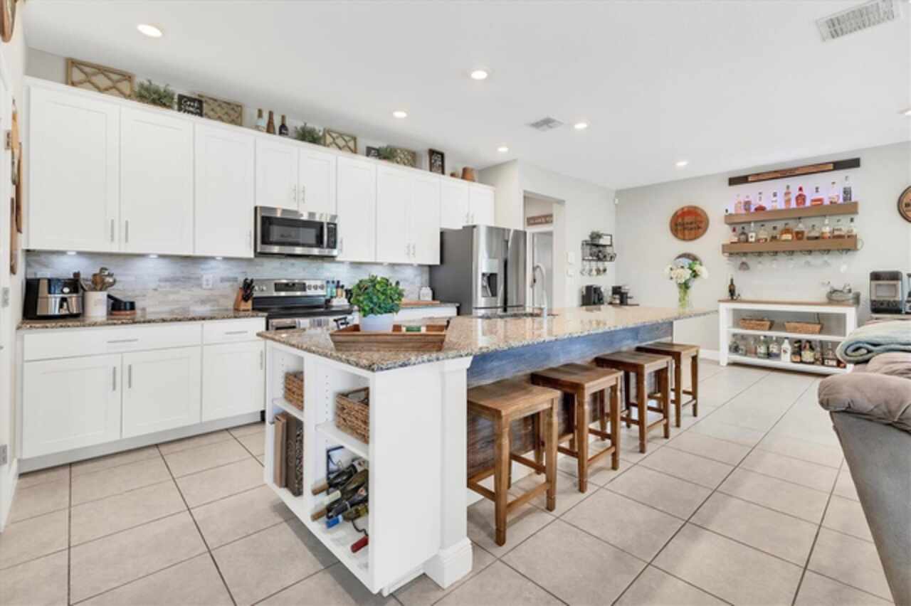 Under contract-accepting backup offers. NEW LOWER PRICE, GREAT OPPORTUNITY FOR NEW OWNER!!! NO NEED TO WAIT ON NEW CONSTRUCTION...NO CDD FEES & NO REQUIRED HOA FEES (voluntary HOA)!!! Original owners have upgraded and meticulously maintained this beautiful 1 level, 4 bedrooms, 3 baths with an office/den and a 3-car garage in South Gulf Cove. The front exterior features mature landscaping, low voltage lighting and custom curbing. Once Inside you are welcomed into a large foyer with wooden accent wall and tray ceiling. Off to the right and through the double frosted doors of the foyer is the home office/den which is large enough to accommodate two workspaces. Just past the foyer on the left is a hallway which has access to the garage. This hallway also features a private bedroom 2 (15x11) and conveniently placed full bathroom that would be perfect for an in-law or guest wing. In the heart of the home, you will find the much-desired open concept kitchen / dining / living room. This home has a true chef’s kitchen, featuring granite counters, an oversized center island with seating to accommodate four, 42-inch wood cabinets with crown molding & soft close doors / drawers, under cabinet lighting, tile backsplash, stainless appliances & pantry. There are two dining areas within the center of this home- a full dining area (10x15) with a custom wood trimmed accent wall and a dining nook (which is currently being used for a coffee bar and regular bar). Just off the kitchen is an oversized living room with two stunning custom-built bookcases and wooden accent wall large enough to fit almost any size TV (currently using a 65”). There is space built conveniently behind the accent wall to hide all of your electrical cords. The living room also has floor outlets under the sofa for your convenience. The hallway off the far side of the kitchen features the laundry room, bedroom 3 (12 x12), bedroom 4 (13x11), full bathroom and master bedroom / bathroom suite. The laundry room has been completed upgraded with cabinets and additional storage making this an extremely functional space. All three bedrooms within this home feature Stainmaster carpet with upgraded padding which was installed 2/25. The master suite features the owner’s bedroom (16x14) with an ensuite bathroom featuring granite counters, double sinks, private toilet area, walk-in tile shower & garden tub. The oversized walk-in closet (7x10) features double racks for maximum apace. Heading outside you will find an enclosed lanai (12x14), a fully fenced backyard, an amazing paver patio, storage shed and more than enough room to add a pool or garden if you want. EXTRA HOME FEATURES: hurricane shutters, whole house gutters, window blinds, Trane A/C system, Nest thermostat, low ceiling for maximum energy efficiency, extended concrete pads with fence to store trash cans outside, garage epoxy flooring, garage storage racks and pull-down ladder for attic access.