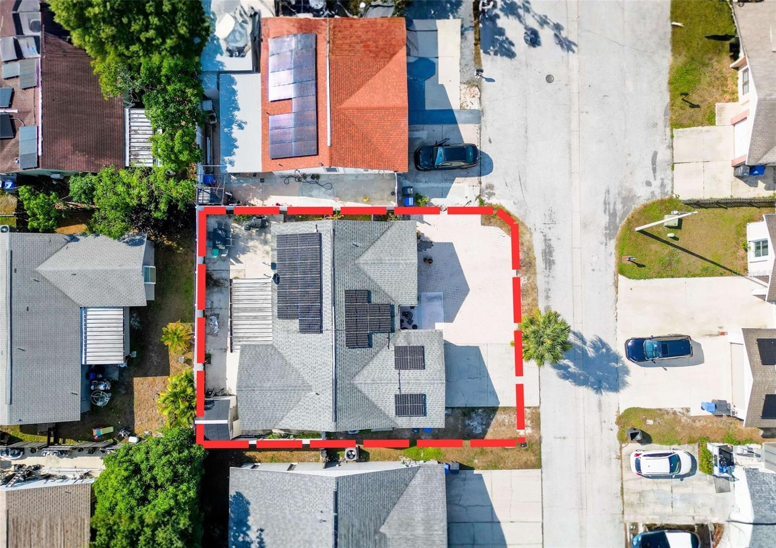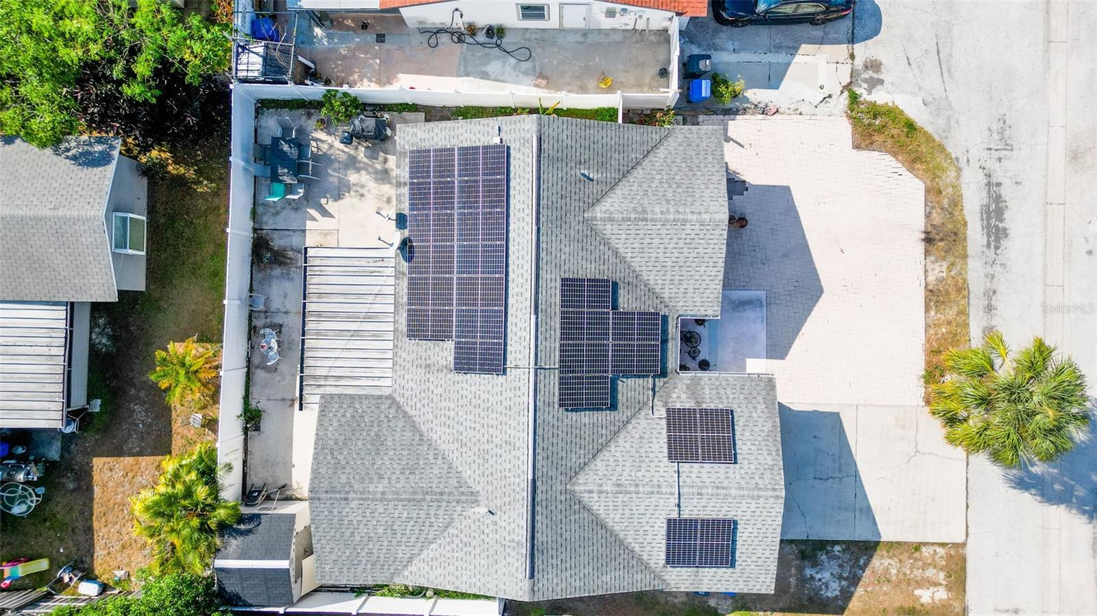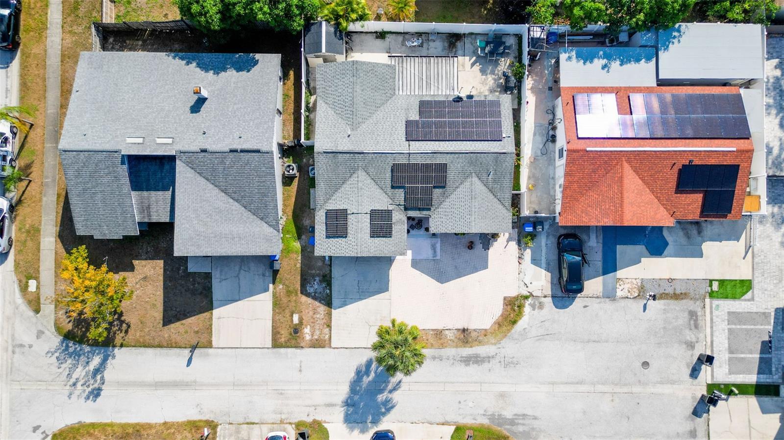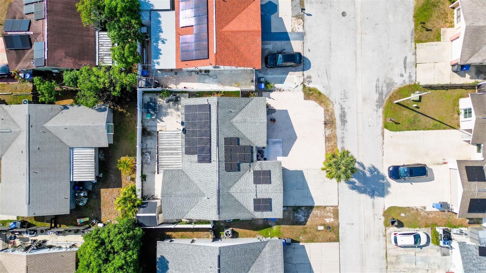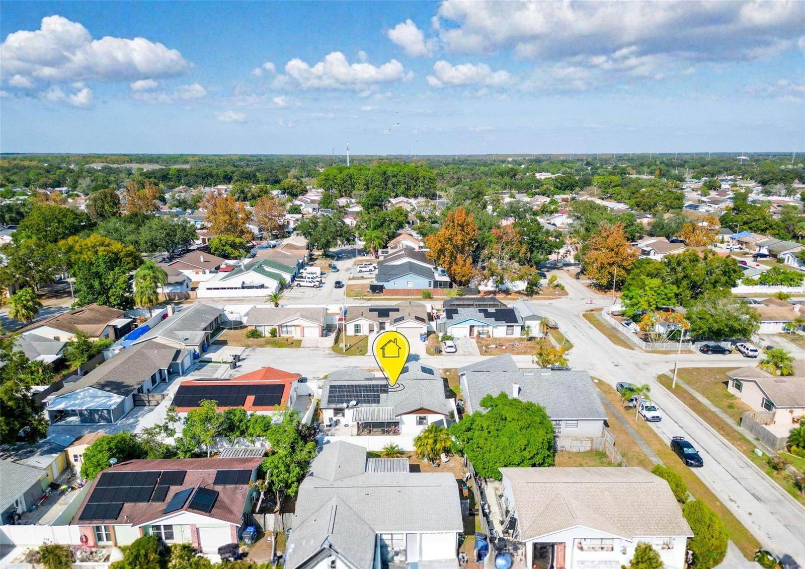 Welcome to 9214 Roundwood Ct — a beautifully upgraded, move-in ready home located in the heart of Town ’N’ Country with NO HOA, NO CDD, and NO flood zone. This charming split-floor plan offers 3 bedrooms, 2 bathrooms, and 1, 248 sqft of comfortable living, designed with style and functionality in mind. Step inside to an open living and dining area featuring luxury vinyl flooring throughout the main spaces, creating a modern and cohesive flow. The 2024-upgraded kitchen is the highlight of the home, showcasing stainless steel appliances, quartz countertops, tile backsplash, and sleek cabinetry—perfect for cooking and entertaining. Both bathrooms have been tastefully updated with new vanities and shower enclosures, offering a fresh feel. The spacious primary bedroom includes a walk-in closet and plenty of natural light. Major upgrades provide peace of mind, including a 2024 hybrid water heater, 2024 AC unit, and 2025 solar panels—with the solar panel loan to be PAID OFF at closing, giving the next owner incredibly low electric bills. The home also features a whole-home soft water system. The yard is low-maintenance with paver driveway, the home recently has a fresh exterior paint, it has vinyl fencing, and a backyard complete with concrete patio, storage shed, and fruit trees (avocado, papaya, and banana). Relax year-round in the screened-in lanai, perfect for morning coffee or evening downtime. Located minutes from shopping, restaurants, schools, parks, Tampa International Airport, and major highways—this home offers convenience, comfort, and long-term value. Don’t miss your chance to own a beautifully updated home with exceptional features, low monthly costs, and a highly desirable location.