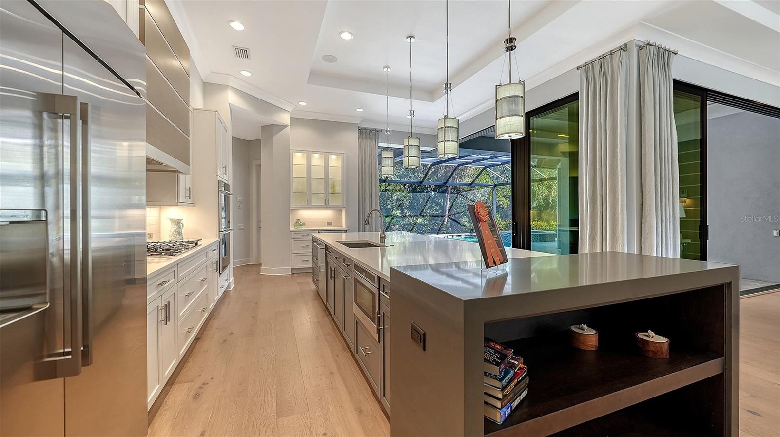 Welcome to this exceptional former model home built by one of the area’s finest luxury home builders, Arthur Rutenberg, poised on the most expansive executive homesite in all of Skye Ranch. This luxuriously upgraded masterpiece is tucked back and nestled by a stunning Florida preserve providing extra privacy and natural beauty. Enter through the grand double iron front doors with glass inlays and transom window. Inside, the great room impresses with soaring ceilings, custom warm wood detailing in the entertaining wall and gorgeous white oak engineered hardwood flooring throughout the home. Expansive hurricane impact sliders invite an effortless transition to the spacious lanai and pool area, enhancing the home's indoor-outdoor flow. The kitchen serves as the centerpiece, anchored by a massive island with seating and storage, quartz countertops and custom backsplash, premium GE Monogram stainless steel appliances including double ovens, beverage/wine refrigerator, in cabinet microwave and large premium refrigerator, plus a hidden walk-in pantry and custom all wood cabinetry. The adjoining dining area enhances the home's entertaining appeal, situated next to the kitchen area and featuring a drop-down ceiling with designer lighting. The primary suite is a private retreat showcasing designer window treatments, huge sliding glass doors to access the lanai, dual customized walk-in closets and a stunning master bath. This spa inspired bath, complete with 2 vanities, soaking tub, an oversized walk-in shower creates a serene haven. Two additional guest suites each feature private baths and share a delightful lanai area to have morning coffee or evening nightcap. The front of the home also showcases a dedicated executive office, while the rear of the home has a spacious bonus room with custom ceiling detailing and perfect for movie and game nights. Enjoy outdoor living with the stunning travertine lanai offering a full summer kitchen, gas fireplace that is perfectly positioned by the master suite, a salt-water pool and spa and cage with panoramic screening to take advantage of the natural setting. Completing this residence is a huge laundry room with extensive cabinetry, quartz countertops and newer LG washer and dryer. OTHER NOTEABLE FEATURES INCLUDE: WHOLE HOUSE GENERATOR with transferable warranty, PGT HURRICANE IMPACT WINDOWS AND DOORS/SLIDERS, NO CARPETING...thoughtful owners installed hardwood flooring throughout, NEWER POOL PUMP, FILTER, SALT CELL in 2024, NEWER WINDOW TREATMENTS with remote control, REFRESHED LANDSCAPING, LEAF FILTER GUTTER PROTECTION installed WITH TRANSFERABLE WARRANTY, and to top it off...THE CDD HAS BEEN PAID IN FULL! Residents of Cassia at Skye Ranch have exclusive access to an impressive array of amenities at The HUB, including a resort-style pool and spa, Junior Olympic pool, splash pad, locker rooms, fitness and movement studios, a full, indoor basketball court, rock climbing wall, demonstration kitchen, and café. Outdoor recreation abounds with nature trails, dog parks, playgrounds, sports fields, sand volleyball, tennis, pickleball, and a community firepit area. A brand-new K–6 school is now open in the neighborhood, 7th and 8th grades to open in the next 2 years. Conveniently located east of I-75, this home is close to top-rated schools, shopping, dining, healthcare, cultural attractions, and only 25 minutes to world-renowned Siesta Key Beach.