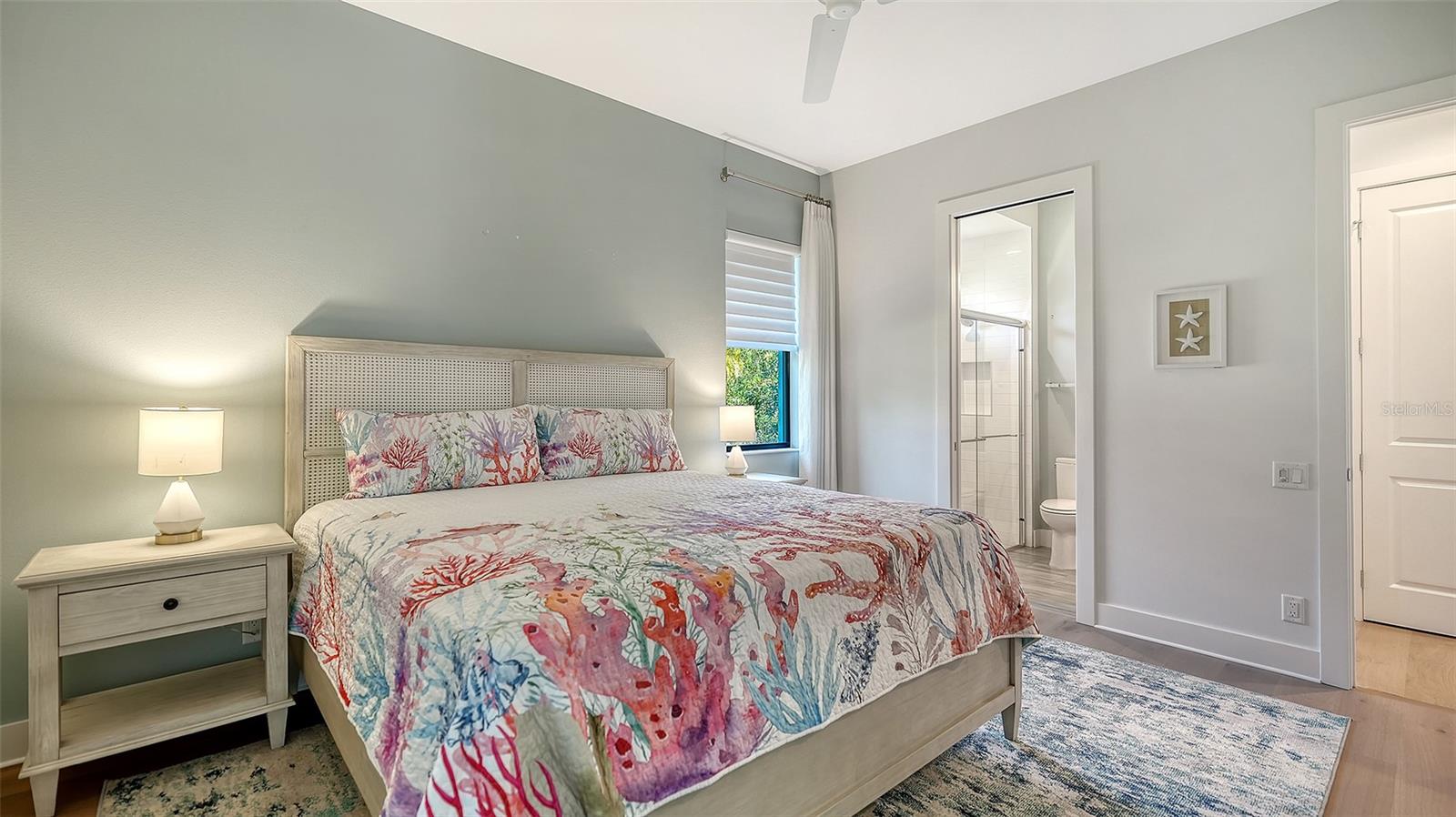 Ceiling Fans(s), Eat-in Kitchen, High Ceilings, Kitchen/Family Room Combo, Living Room/Dining Room Combo, Primary Bedroom Main Floor, Solid Wood Cabinets, Stone Counters, Thermostat, Walk-In Closet(s), Window Treatments