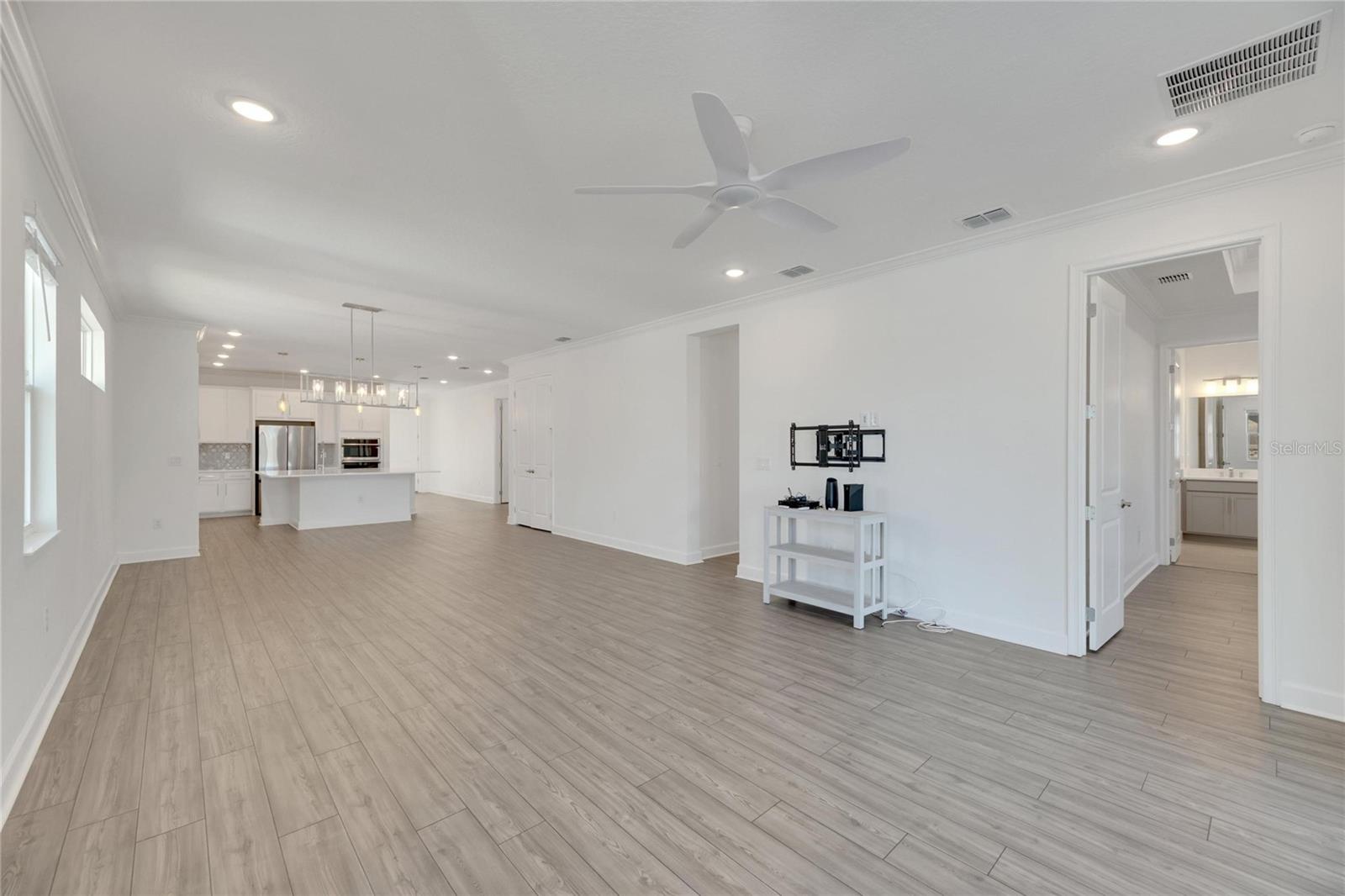 Ceiling Fans(s), Crown Molding, Kitchen/Family Room Combo, Open Floorplan, Split Bedroom, Thermostat, Walk-In Closet(s)