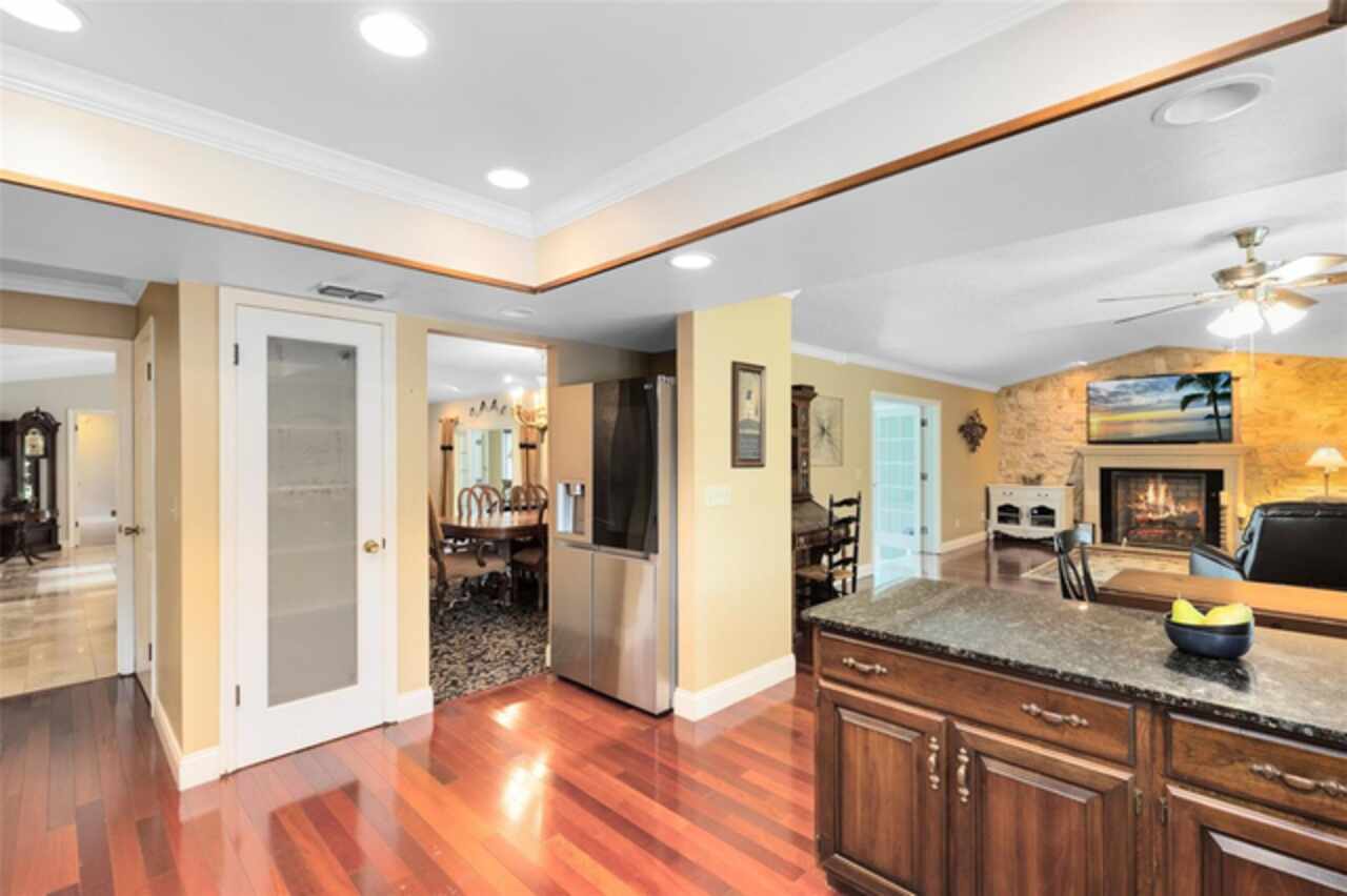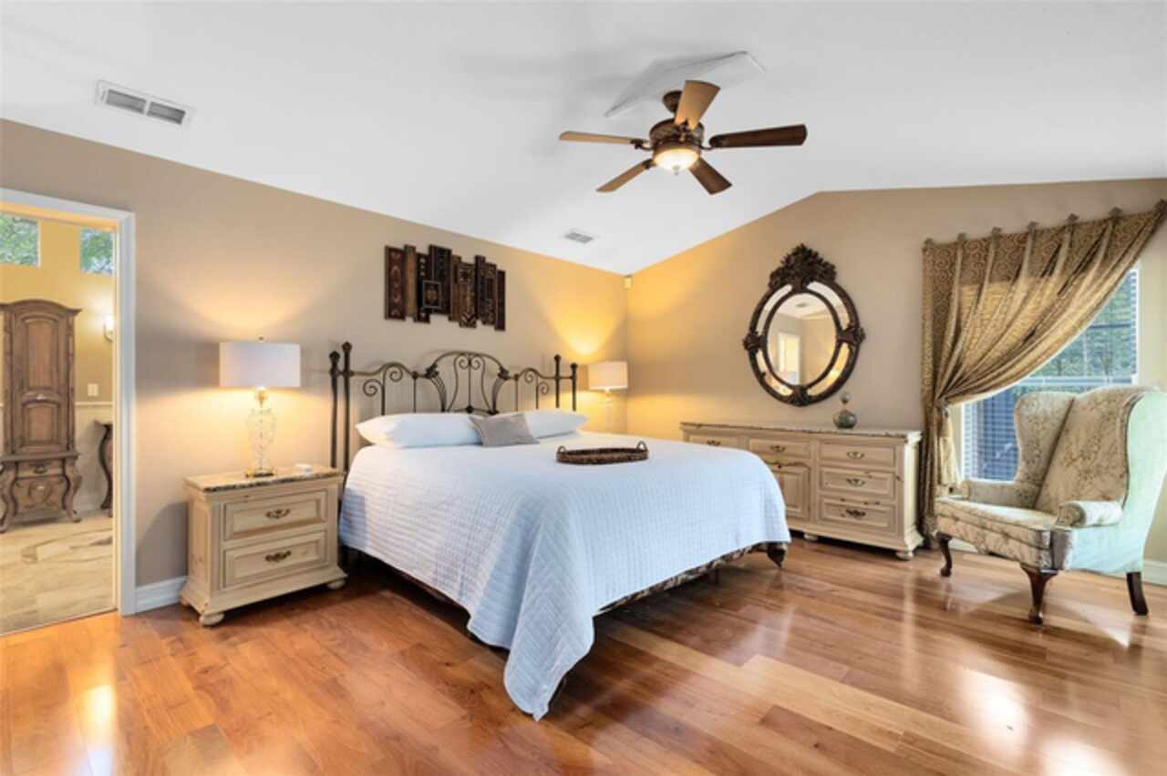 Welcome to 930 Arabian Avenue, ideally located on what is widely regarded as the most beautiful street in all of Tuscawilla—especially within the coveted Estate area, where lots span one acre or more. Lined with mature oaks and custom homes, Arabian Avenue reflects the refined charm and established character that define this sought-after country club community. Set on an expansive homesite with a long, welcoming driveway and lush backyard views, this home offers privacy, space, and natural beauty. The property backs onto a picturesque creek, making it a perfect place to sit on the banks with a glass of wine and listen to the soothing sound of the water. The open kitchen overlooks the family room, creating a warm and functional layout perfect for entertaining or everyday living. A cozy gas fireplace adds ambiance and comfort to the main living area, making it an ideal gathering spot in every season. Large windows throughout the home provide tranquil views from every room, bringing the outdoors in and enhancing the peaceful atmosphere. A major highlight is the NEW ROOF installed in 2023, offering long-term protection and immediate value. The primary bathroom has been beautifully renovated with a spa-inspired design, featuring elegant finishes and a dedicated gas hot water heater for consistent comfort. The rest of the home is served by a separate electric hot water heater, providing efficient coverage throughout. Additional features include: *24kW Generac whole-house generator powered by propane *Irrigation system on a deep well, helping reduce utility costs *Spacious interior with plenty of room for everyone *Exceptional curb appeal and serene setting Enjoy a quick golf cart ride to the Tuscawilla Country Club and access to four nearby parks. With close proximity to SR417, you’re less than 50 minutes from Florida’s beaches and world-class theme parks, while still enjoying the calm and beauty of this established estate neighborhood.