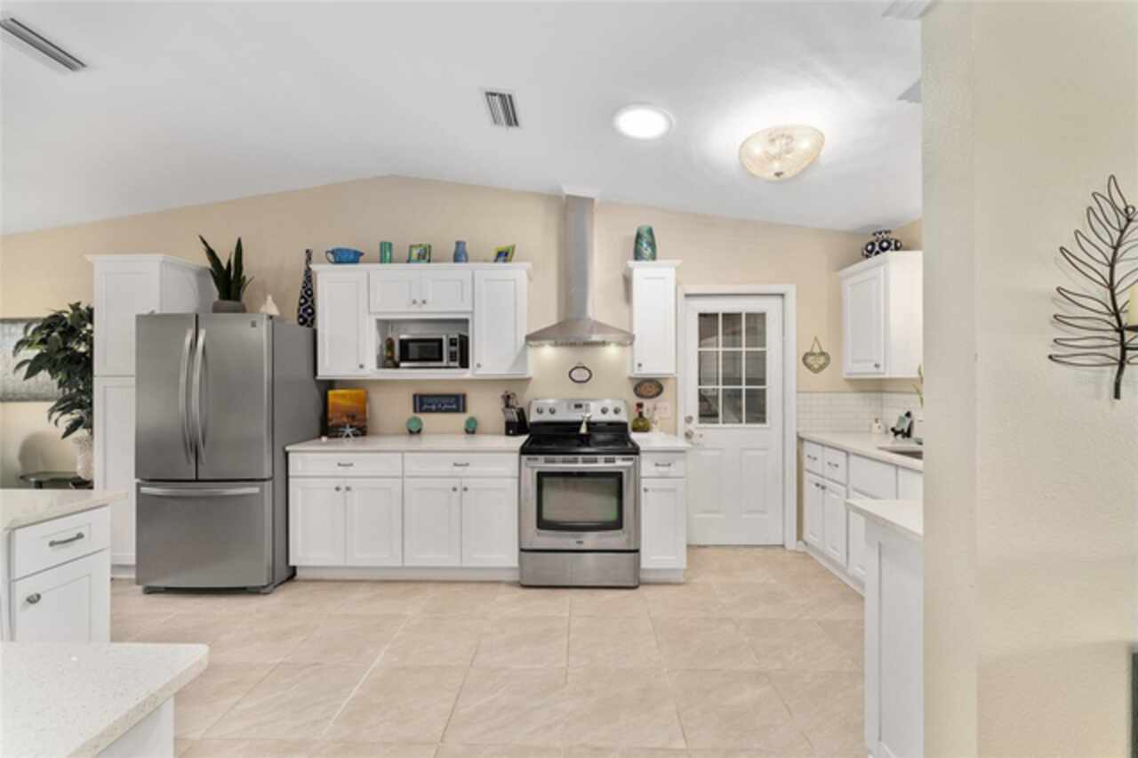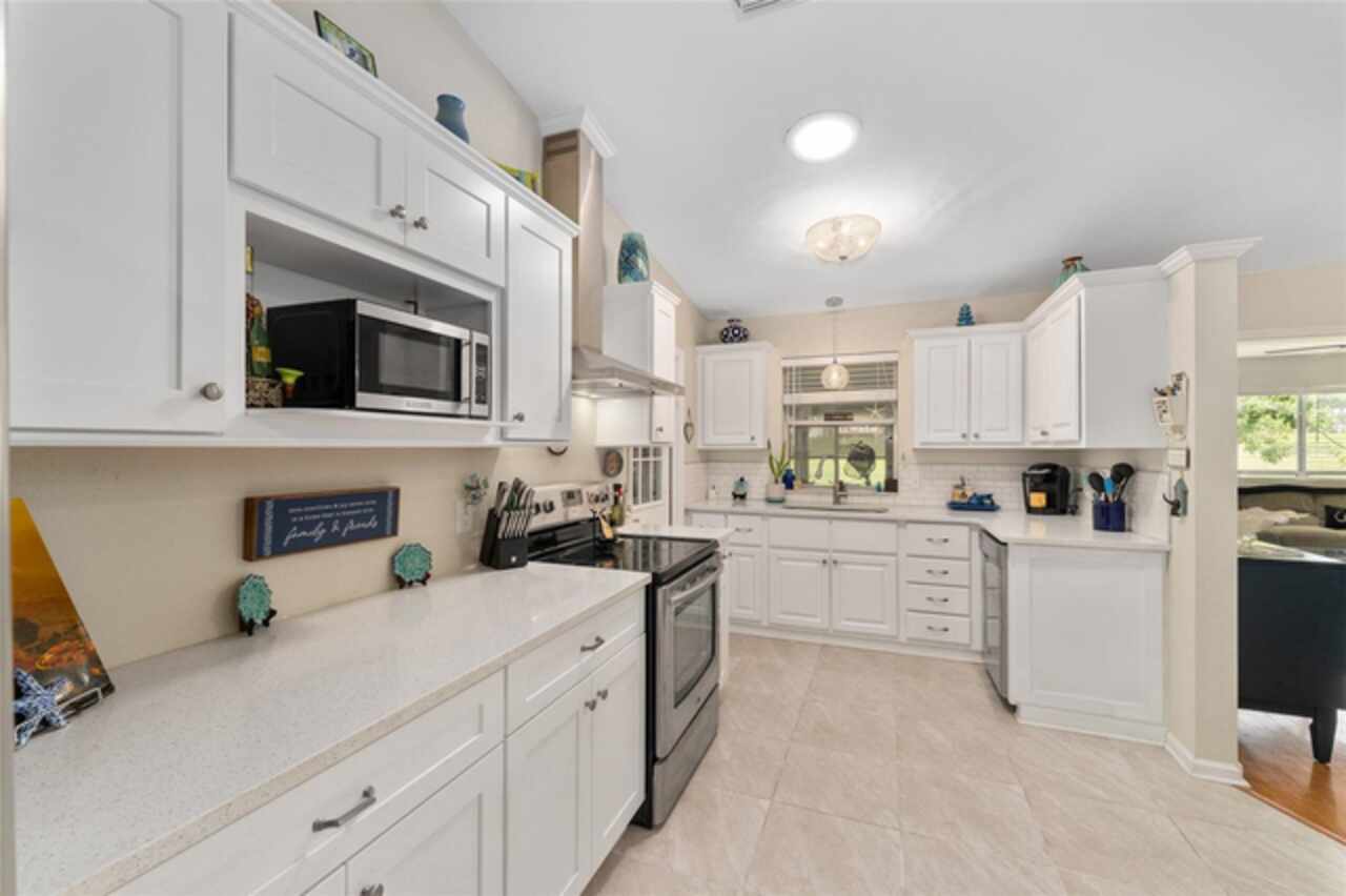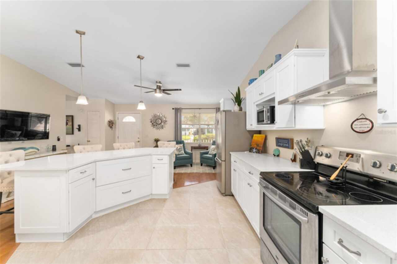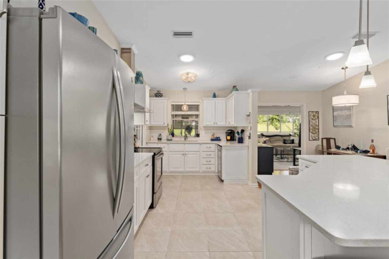 SELLER IS OPEN TO REASONABLE OFFERS!!! Don’t miss this beautifully upgraded, walk-in ready 3-bedroom, 2-bath home with breathtaking golf course views located in the desirable Orange Blossom Hills Golf & Country Club community. Major updates such as a 2020 roof, 2021 AC, and 2021 water heater ensure peace of mind for years to come. This home offers the perfect blend of comfort, style, and location—plus NO BOND! Step inside to a completely updated interior, including a brand-new kitchen featuring a large island topped with stunning quartz countertops, newer appliances, and solar tubes that flood the space with natural light. Engineered hardwood floors run throughout the main areas, with tile in all wet spaces, and modern light fixtures add a fresh touch throughout. The primary suite includes a double vanity, new toilets, a walk-in closet with a stylish barn door, and plenty of room to unwind. Vaulted ceilings create a light and airy feel, while the large enclosed patio with portable AC is perfect for year-round relaxation or entertaining. Additional highlights include a garage with a large utility sink—ideal for washing your little fur babies—and an expanded driveway providing extra parking for guests. Living in Orange Blossom Hills means access to championship golf, a scenic hilltop pool with a waterfall and hot tub, a welcoming country club restaurant and bar with indoor and outdoor seating, billiards, fitness facilities, and a variety of social events and recreational opportunities. An exciting new, state-of-the-art Regional Paradise Recreation Center is set to open in 2027! Neighborhood Amenities include: Two Adult Swimming pools, One Family pool, Pickleball, Tennis, Basketball, Baseball, Shuffle Board, Archery, Dog Park and Golf. This home is also conveniently located just minutes from Spanish Springs Town Square, where you’ll enjoy nightly live entertainment, endless shopping, and a wide variety of dining options—everything you need for the ultimate Villages lifestyle.