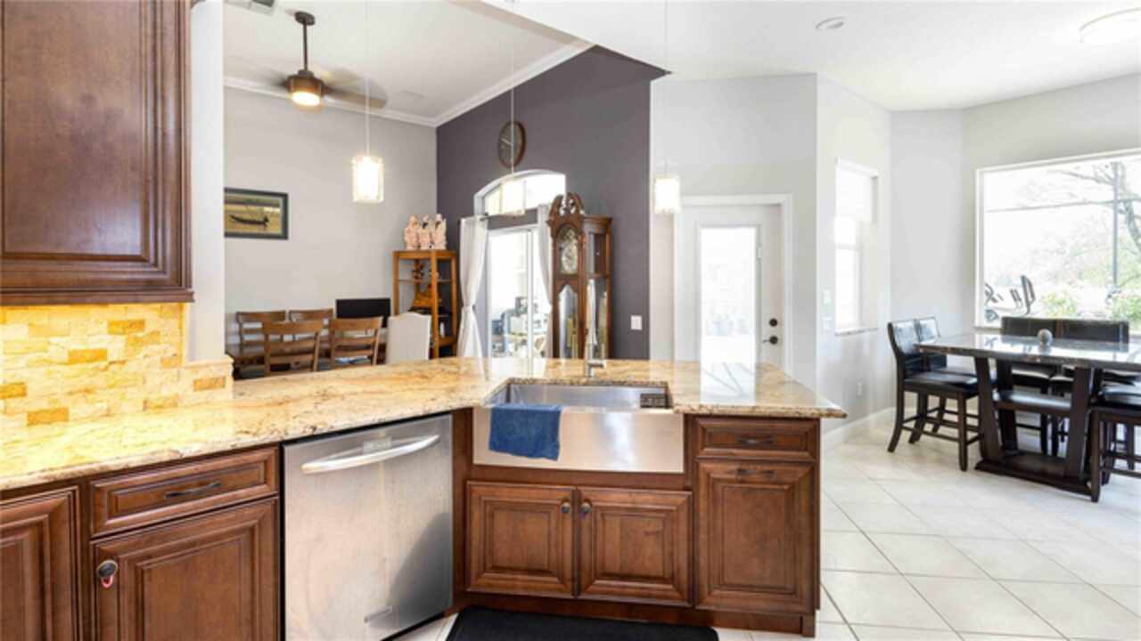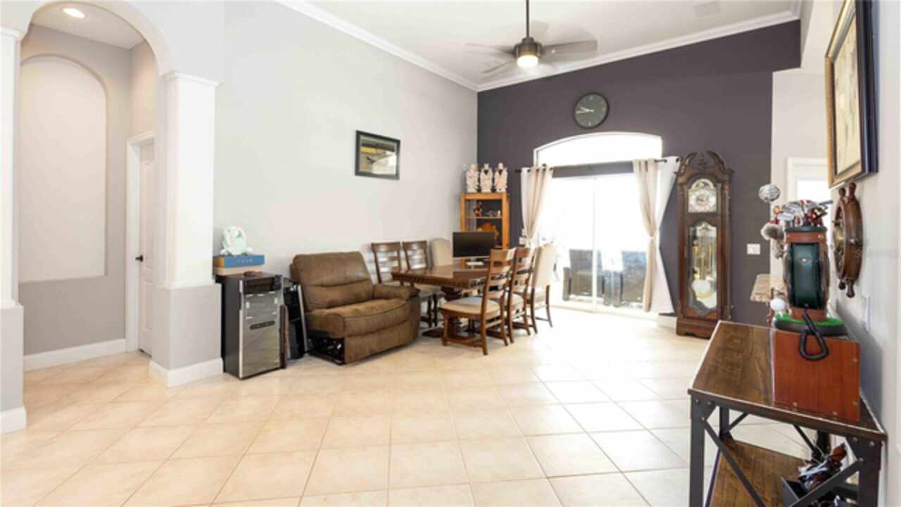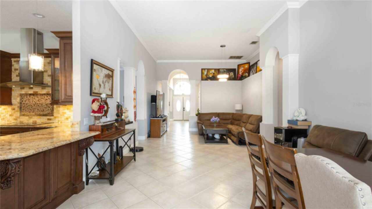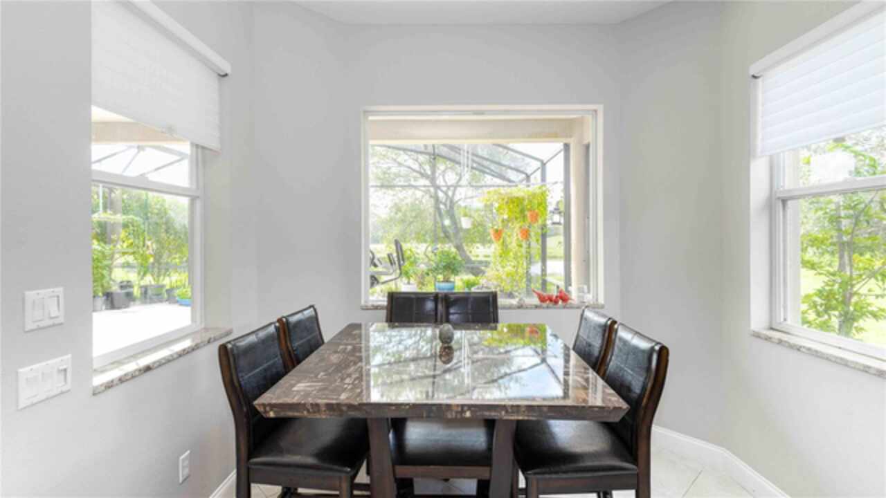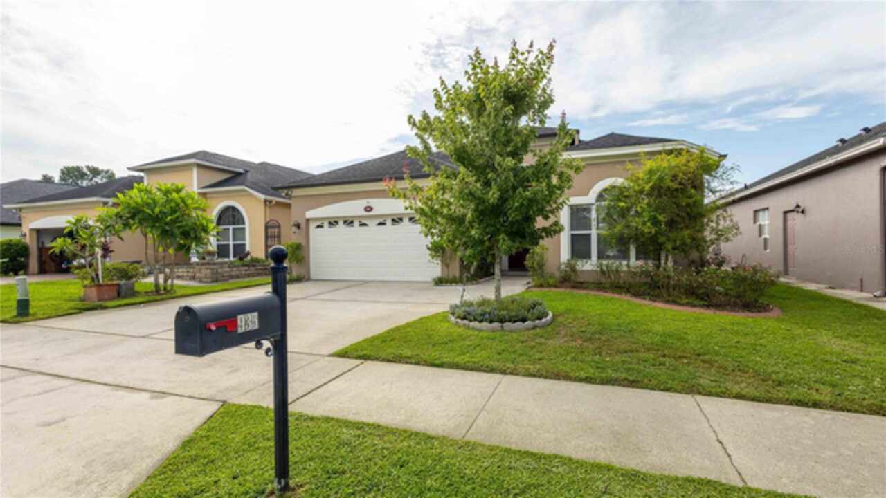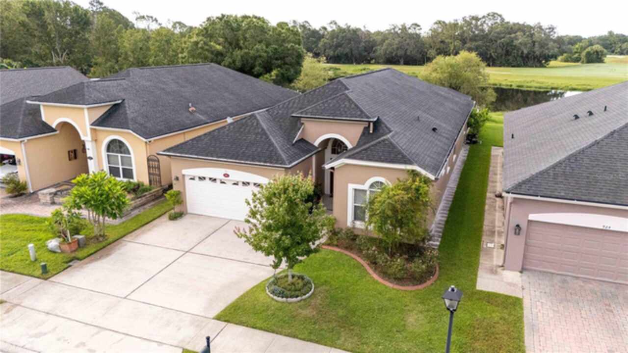 Welcome to 935 Ekana Green Ct, a spacious and beautifully maintained home located in the gated community of Ekana Green. Offering over 2, 300 square feet of living space, this 3-bedroom, 2.5-bath home with a separate office or den is perfectly positioned on a quiet cul-de-sac with peaceful pond, conservation, and golf course views. Inside, the open floor plan is enhanced by soaring 12-foot ceilings, crown molding, and tile flooring throughout the main living areas. The gourmet kitchen, updated with granite countertops, 42-inch cabinets, and stainless steel appliances, features a bright breakfast nook ideal for morning coffee. The oversized primary suite includes a cozy sitting area, high ceilings, and generous closet space. The additional bedrooms and office offer wood laminate flooring—no carpet anywhere in the home. Step outside to an expansive 40’ x 40’ screened lanai with a private storage room, perfect for relaxing or entertaining. Upgrades include a water softener system, new gutters, an interior/exterior speaker system, and a full alarm system for added peace of mind. Residents enjoy access to tennis courts and golf, and the home is zoned for top-rated schools, with convenient proximity to shopping, dining, and major highways. This move-in ready home offers comfort, space, and scenic views—don't miss your opportunity to make it yours.