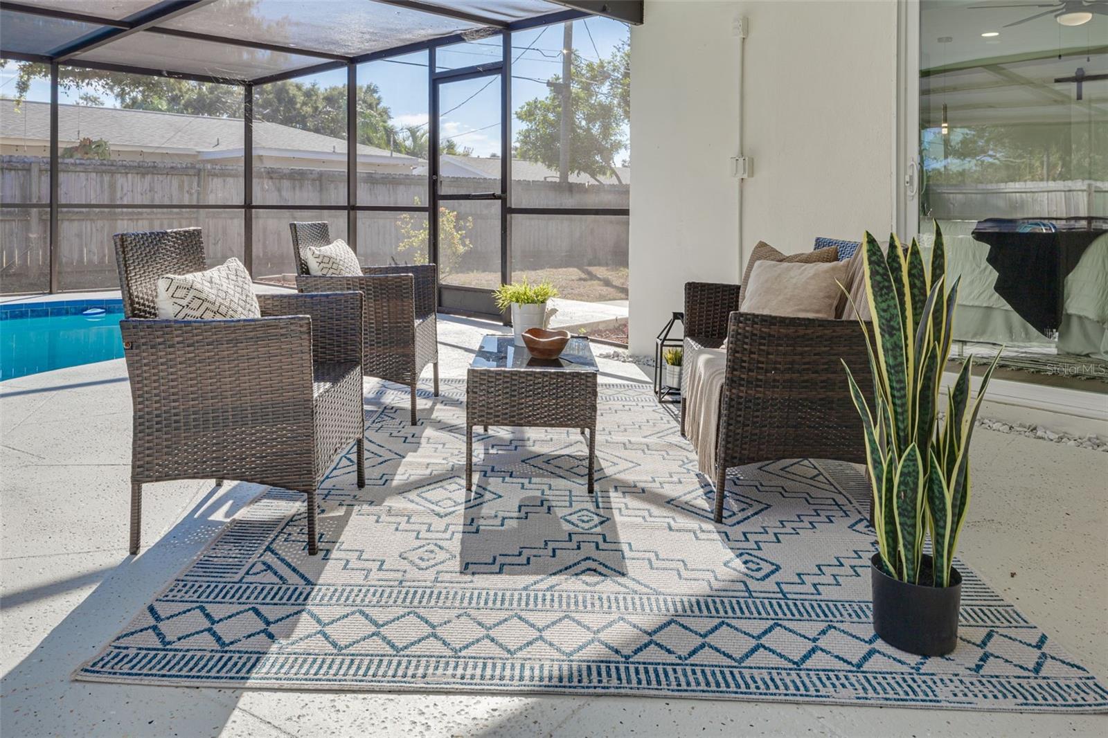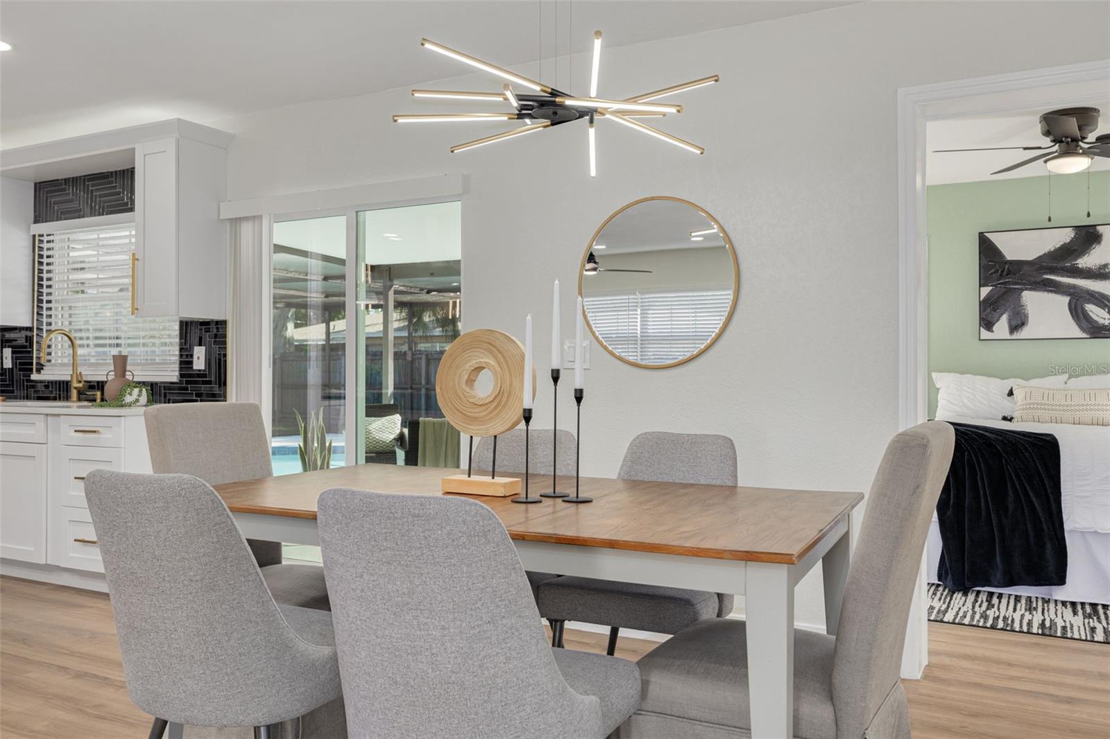 Gorgeous, Meticulously Renovated Dunedin Home! Come see this beautifully updated 3 Bedroom / 2 Bath / 1-Car Garage residence that perfectly blends modern comfort with coastal charm. Step inside to a bright open-concept floor plan combining the living, dining, and kitchen areas. The space is enhanced by luxury, water-resistant vinyl plank flooring and an eye-catching contemporary electric fireplace that serves as the home’s centerpiece. The brand-new kitchen is a showstopper—spacious, stylish, and thoughtfully designed with quartz countertops, a glass herringbone tile backsplash, soft-close shaker hardwood cabinets, and new Samsung stainless-steel appliances, including a refrigerator with a built-in smart info center. The split-floor plan primary suite offers privacy and elegance, featuring a large walk-in closet, modern barn door, and a luxurious en-suite bath complete with a frameless glass shower with multiple shower heads and a sleek new vanity.Both bathrooms have been completely renovated with high-end finishes and contemporary fixtures. The home also features new interior wall and ceiling textures, fresh interior and exterior paint, and nearly every major component updated, including 2019 installed roof, HVAC system, and driveway, newer double pane windows, water heater and garage door. All-new interior doors, new lighting accessories, ceiling fans, new attic insulation for improved energy efficiency, and list goes on. Home has a solar energy system installed, already paid off, which makes it almost electric energy free. From the living room and primary bedroom, sliding glass doors open to your own tropical oasis—a screened-in, in-ground swimming pool with a covered deck and spacious, fully fenced backyard. It’s truly an entertainer’s paradise, perfect for relaxing, enjoying Gulf breezes, or hosting gatherings. There’s plenty of room for kids and pets to play. Immerse yourself in the rich art and culture scene that defines Dunedin, and don’t forget to explore the local shops and galleries that showcase the community’s creativity. And for beach lovers, you’ll have access to Honeymoon Island, Florida's #1 state park, just a short drive away. With its unique blend of small-town warmth and vibrant activities, Dunedin truly has something for everyone. Experience the magic of this charming city and discover why it feels like home! HIGH AND DRY-NON EVACUATION ZONE. ALL YOU NEED TO DO IS MOVE IN AND START ENJOYING THIS AMAZING HOME!