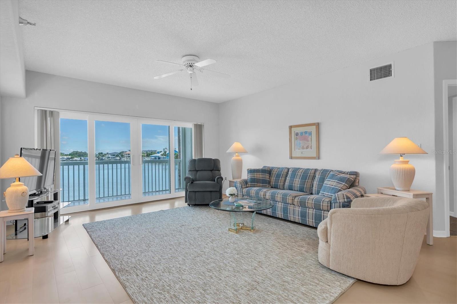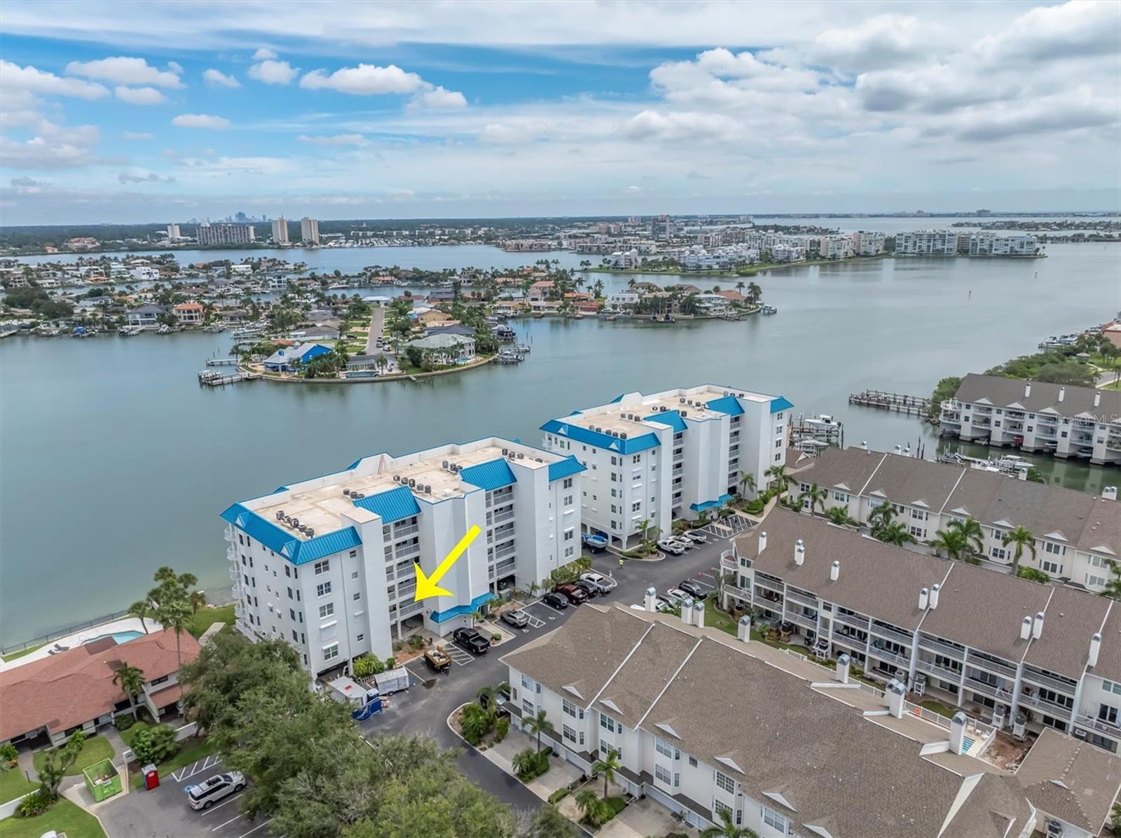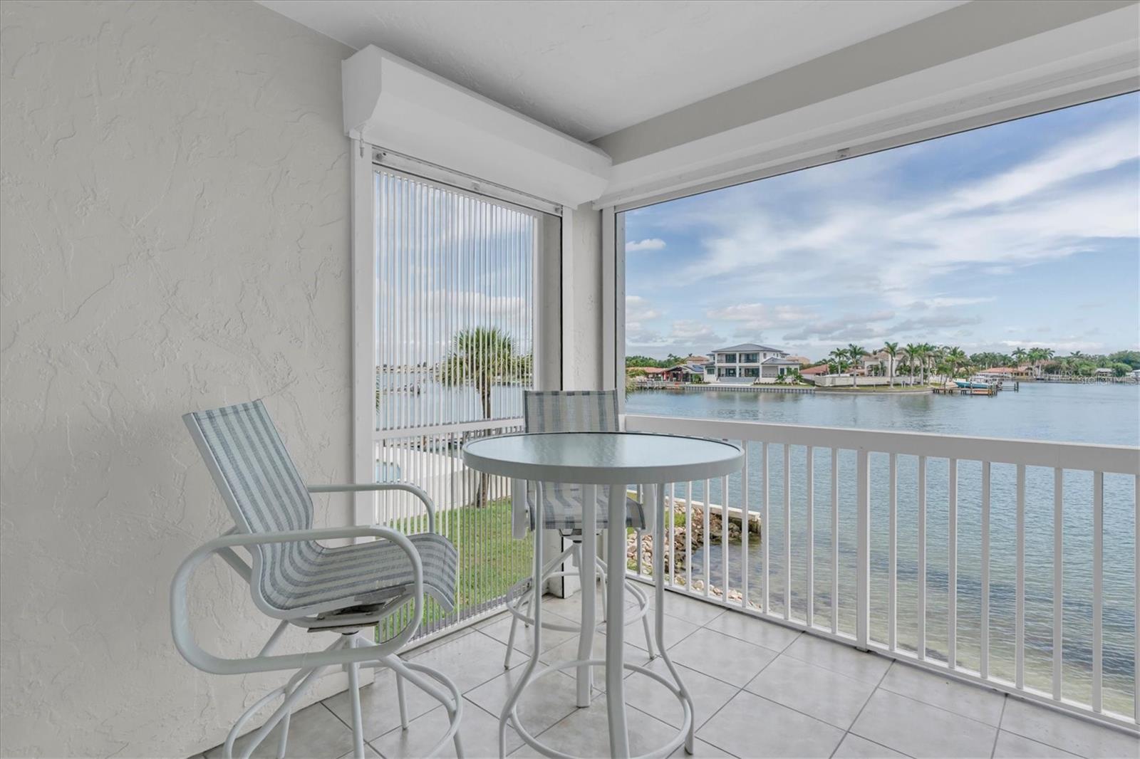 Waterfront condo with boat slip. Enjoy panoramic views of the Intracoastal Waterway from your oversize balcony at Captiva Cay Condominiums. Includes a 32’x15’ deeded boat slip with 12, 000 lb lift in the sheltered private marina. This condo features 2 bedrooms, 2 baths, plus a den that could easily serve as a third bedroom. The primary suite has bay windows overlooking the water with a door to the balcony, and a walk-in closet. Captiva Cay amenities include a waterfront clubhouse, well-equipped gym, two heated pools (25-yard lap pool) spa, fishing dock, private beach ideal for kayaking and paddle boarding, and beautiful landscaping throughout. Nearby is Sunset Beach, restaurants, bars, parks, including a dog park, and tennis courts. Includes assigned parking under the building and storage unit. The first floor of this building is approx. 17' above sea level. The milestone inspection has been completed and the association is in compliance with the law’s requirements.