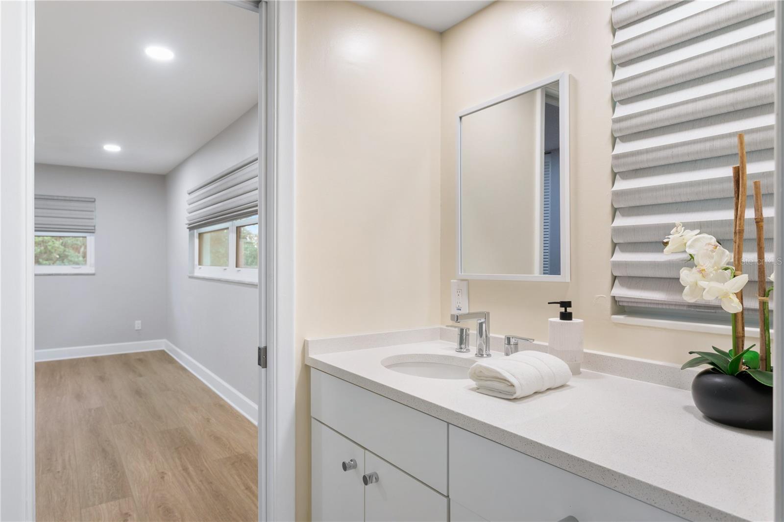 Experience the best of St. Petersburg living in this beautifully maintained home in the highly coveted Snell Isle Estates. Perfectly situated along the Vinoy Golf Course and just minutes from Coffee Pot Bayou, downtown St. Pete, and convenient interstate access, this property offers the ideal blend of elegance, comfort, and location. This home sits at nearly 9 feet elevation and did not experience any flooding or damage from the hurricanes last year. A circular driveway, lush landscaping, and a charming barrel tile roof create an inviting first impression. Inside, the thoughtfully designed split floor plan features four spacious bedrooms and three renovated baths. The primary bedroom boasts a walk-in closet and en suite bath, while two additional bedrooms share a convenient Jack-and-Jill bathroom. The fourth bedroom has access to the third full bath, offering privacy and flexibility for family or guests. Each bathroom showcases custom lacquer cabinetry, quartz countertops, and designer finishes. The modern kitchen is equally impressive, with custom wood cabinetry, a stylish tile backsplash, quartz surfaces, and stainless steel appliances; ideal for both everyday living and entertaining. Multiple living areas provide versatility for relaxing or hosting, and the oversized screened porch extends your living space outdoors. The private backyard offers ample room to create your dream pool while enjoying a generous lawn and lush surroundings. A recent backyard addition expanded the lot, adding square footage and enhancing the overall outdoor living area. This home has been meticulously updated and maintained, with improvements including newer HVAC and ductwork, water heater, hurricane impact-rated windows and garage door, recessed lighting, ceiling fans, updated electrical, custom closets, premium blinds, fencing, and fresh interior and exterior paint. Nestled in a quiet and picturesque golf course and waterfront neighborhood, this home offers a rare opportunity to enjoy modern comfort in one of St. Petersburg’s most desirable communities.