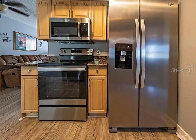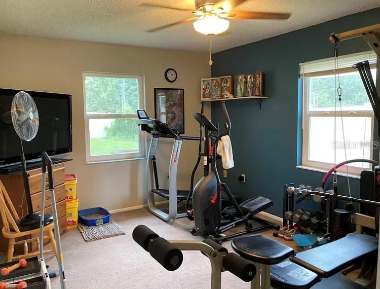 Ceiling Fans(s), Primary Bedroom Main Floor, Solid Surface Counters, Solid Wood Cabinets, Split Bedroom, Thermostat, Window Treatments