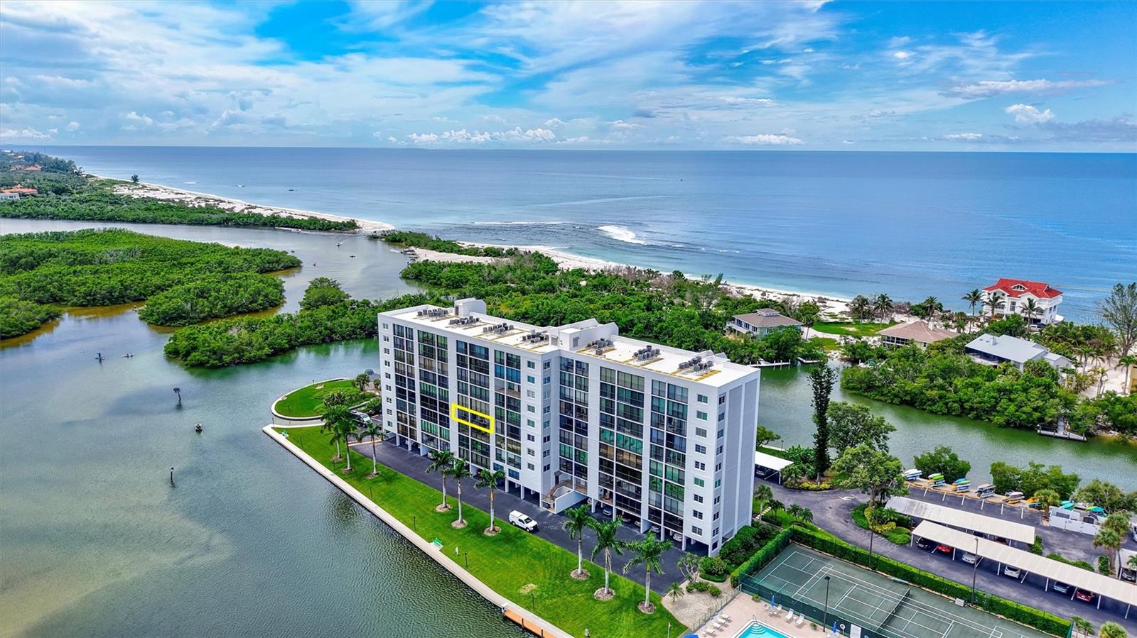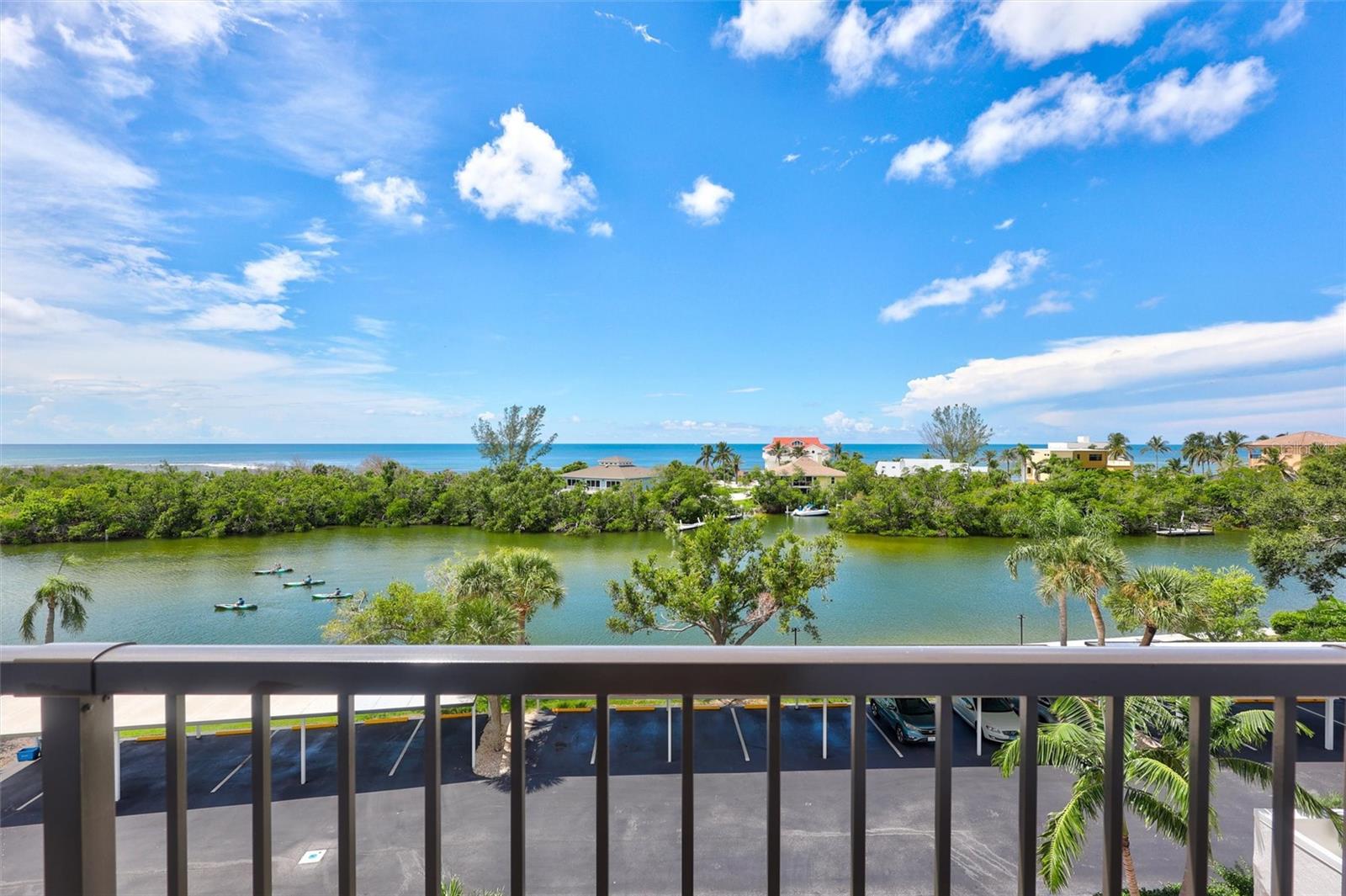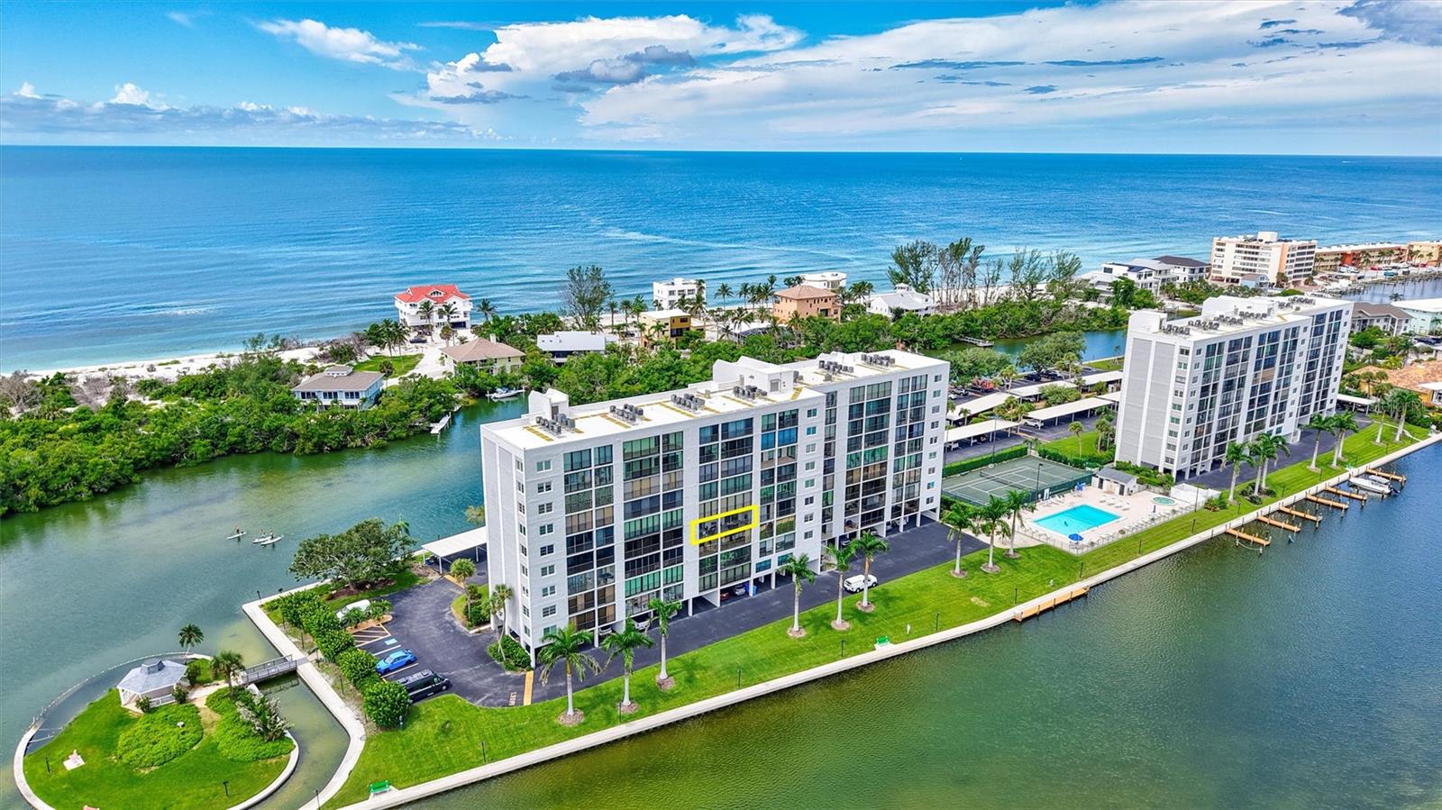 Gated community w/ 5.4 Acres of land at Southern Tip of Siesta Key wrapped around by Intercoastal and Canal waterways! This condo has 180 degree views of the Gulf of America to the West (Sunset) & Eastern Intercoastal & Sarasota Bay Waters (Sunrise)!