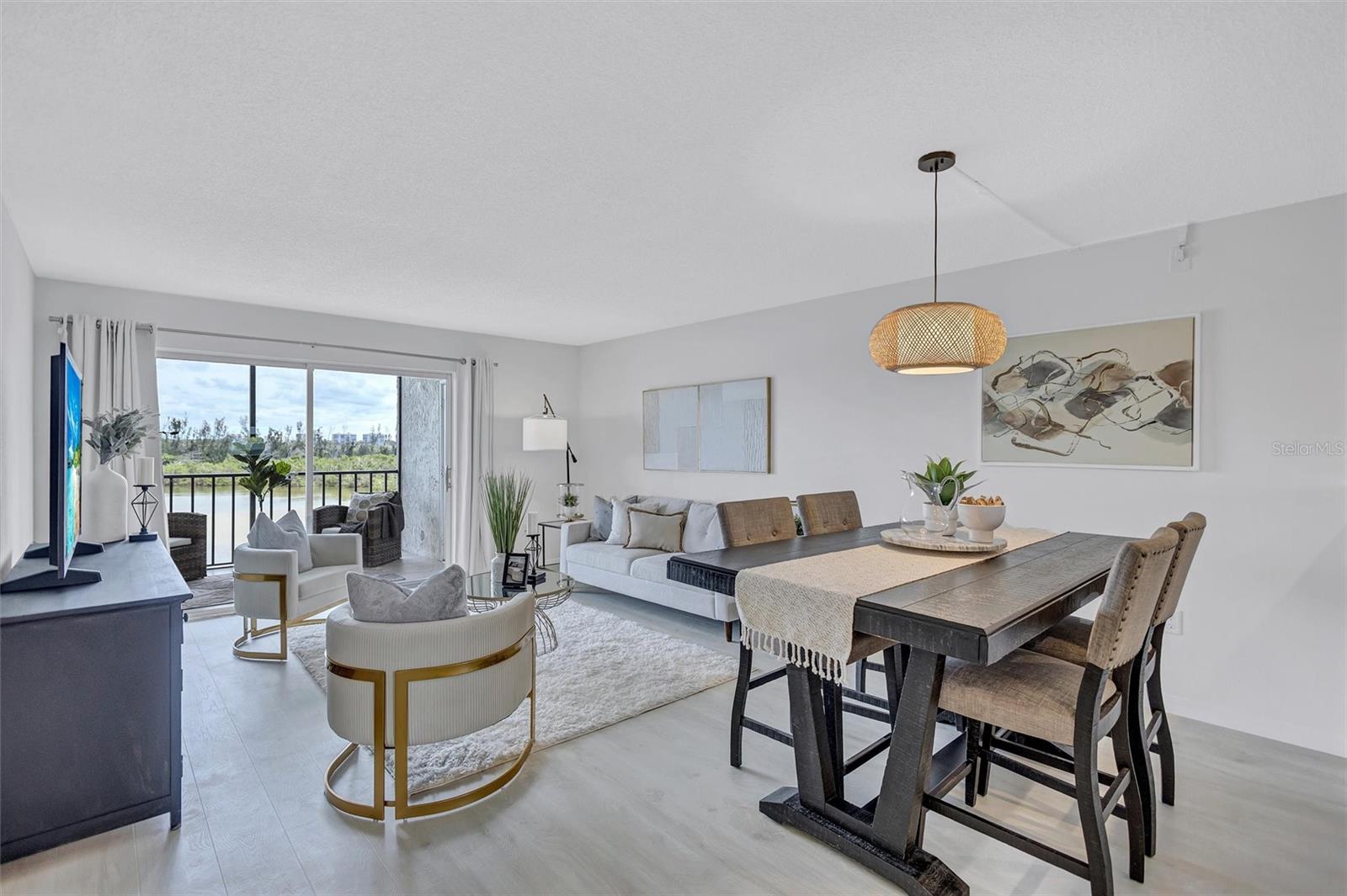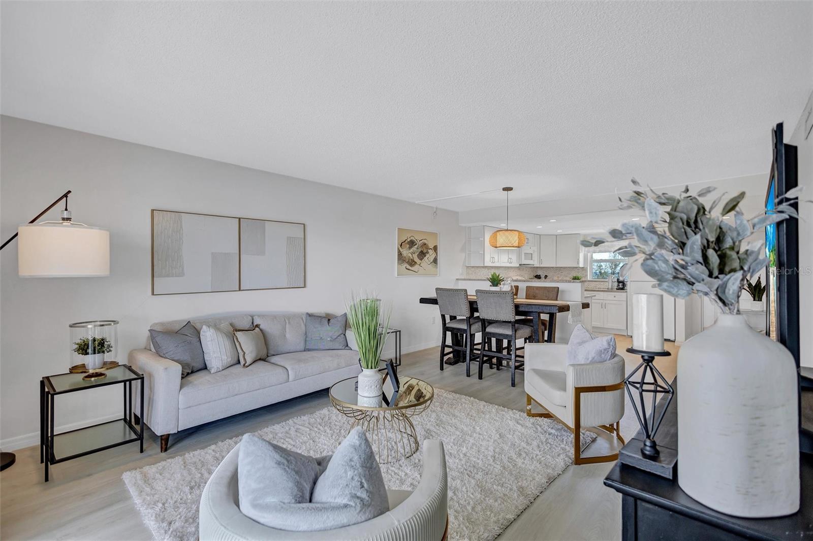 Ceiling Fans(s), Living Room/Dining Room Combo, Open Floorplan, Solid Wood Cabinets, Stone Counters, Thermostat, Window Treatments