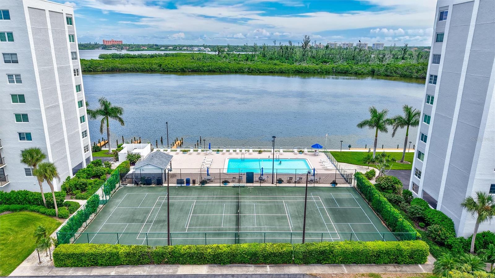 Discover an exclusive, gated oasis at the southernmost tip of Siesta Key. This recently renovated 5th-floor condo, nestled within the private 5.2 acre community of The Pointe, offers a lifestyle of unparalleled luxury & tranquility. The residence provides a rare opportunity to witness breathtaking sunrises over Sarasota Bay & celebrate unforgettable sunsets over Midnight Pass & the Gulf of America. Inside, a chef’s kitchen features solid-wood, soft-close cabinetry, granite countertops & several new appliances. The 2 full bathrooms are equally modern with new fixtures & sleek quartz vanity tops. Throughout the light-filled, move-in-ready home with Impact Glass windows, elegant luxury vinyl & porcelain tile provide low-maintenance sophistication. The new professional staging can be included or purchased separately. Relax on your spacious, 29-foot screened lanai as you watch kayakers glide over the water & observe the natural beauty of the Neville Bird Sanctuary. Engage with resort-style amenities, including a heated lap pool & spa, lighted tennis & pickleball courts, a fitness center & saunas. The pet-friendly community offers the ultimate peace of mind with a dedicated management team & dual elevators. For the boater, slips up to 26 feet & kayak storage are available for a nominal annual fee. Located on an elevated part of the Key, this property had no water damage or storm assessments in 2024. Enjoy the convenience of a short stroll to Turtle Beach & the free public trolley to Siesta Village & Siesta Beach.