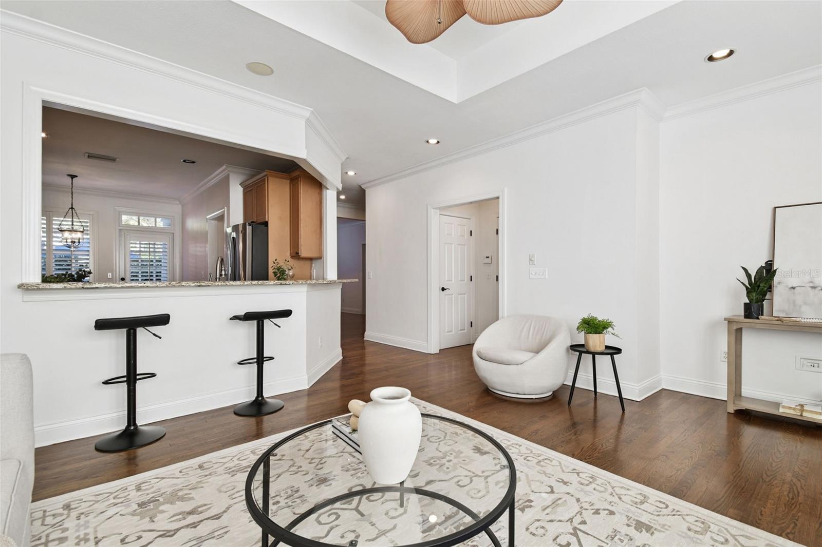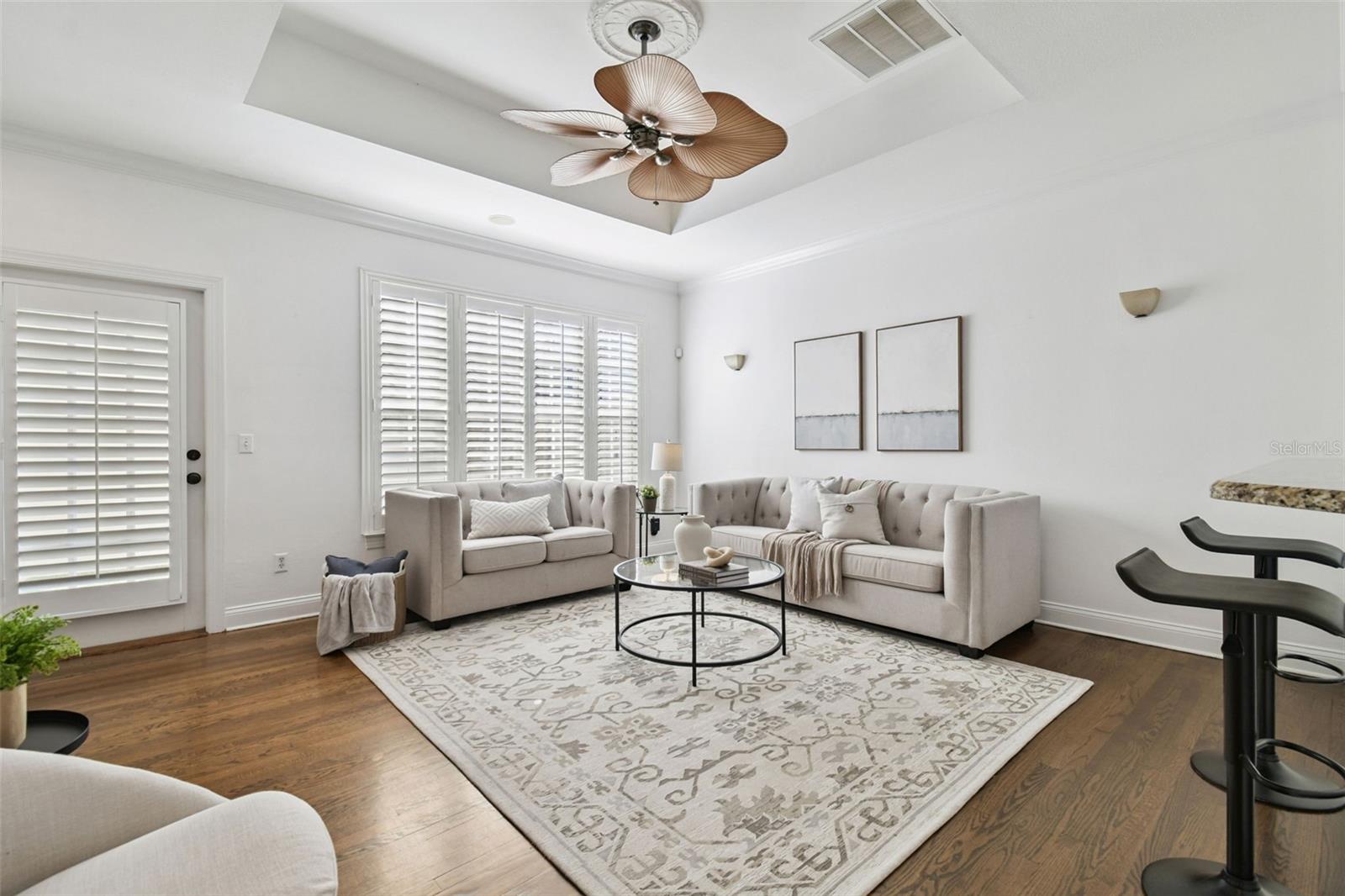 ***HOA is painting the buildings. If under contract before December 8, buyer can choose color.*** Beautiful corner unit townhome in the luxury guard gated community of Harbour Island. Featuring 4 bedrooms, office, 3.5 bathrooms, and 2-car garage, this is maintenance-free living at its very best. Watch the sunrise on your private patio off the family room and then watch the sunset on your other private patio off the kitchen. Once inside, you're bound to be impressed by the floor to ceiling quality including dark oak stained flooring on the first floor, brand new luxury vinyl flooring throughout the second level, wainscoting, crown molding, plantation shutters, and more. Enjoy meals in the formal dining room, eat-in kitchen, or just at the bar overlooking the family room. In the kitchen you have granite countertops, stainless steel appliances, and a huge pantry area. There is an extra-large office space on the first floor which could easily be converted to a fifth bedroom. Upstairs, you'll find all four bedrooms, including the primary suite with a walk-in closet and updated bathroom. Need to cool off on a hot summer day? The community pool is just a few steps away. All of this located next to Tampa's top destinations including Water Street, Riverwalk, Bayshore Blvd., Amalie Arena, and the area's top dining, shopping, and entertainment. Easy access to the Selmon Expressway and I-275. There's a reason homes in Harbour Bay rarely become available, don't let this one get away!