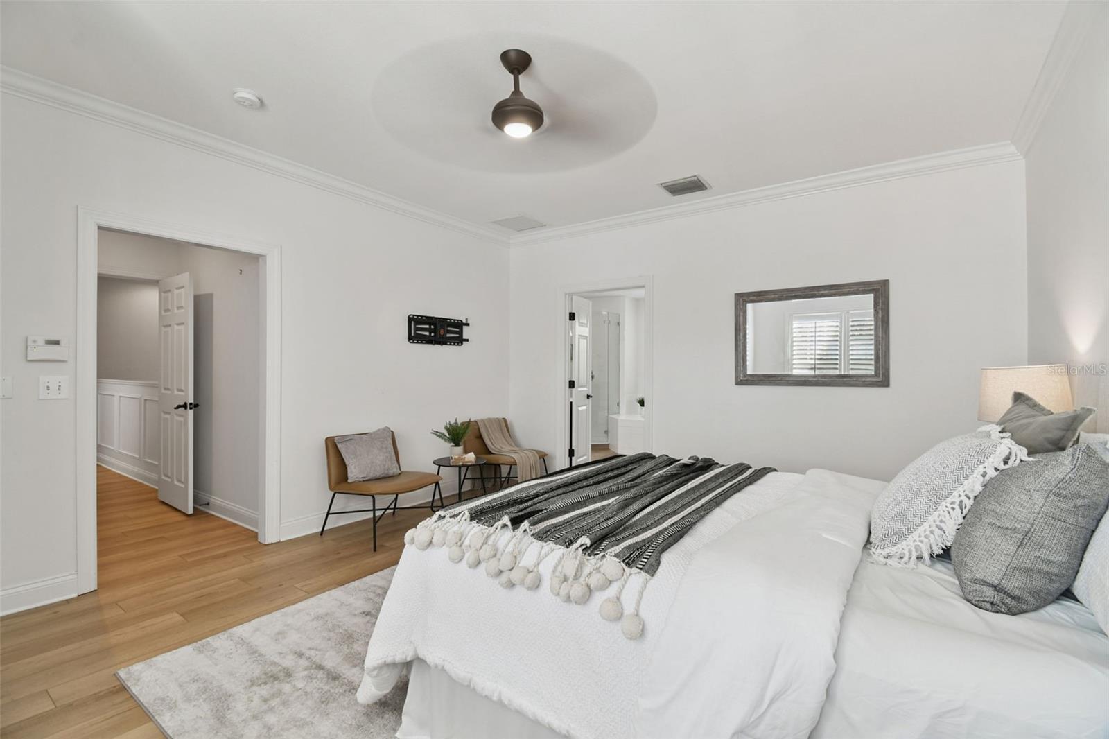 Ceiling Fans(s), Chair Rail, Crown Molding, Eat-in Kitchen, PrimaryBedroom Upstairs, Stone Counters, Tray Ceiling(s), Walk-In Closet(s), Window Treatments
