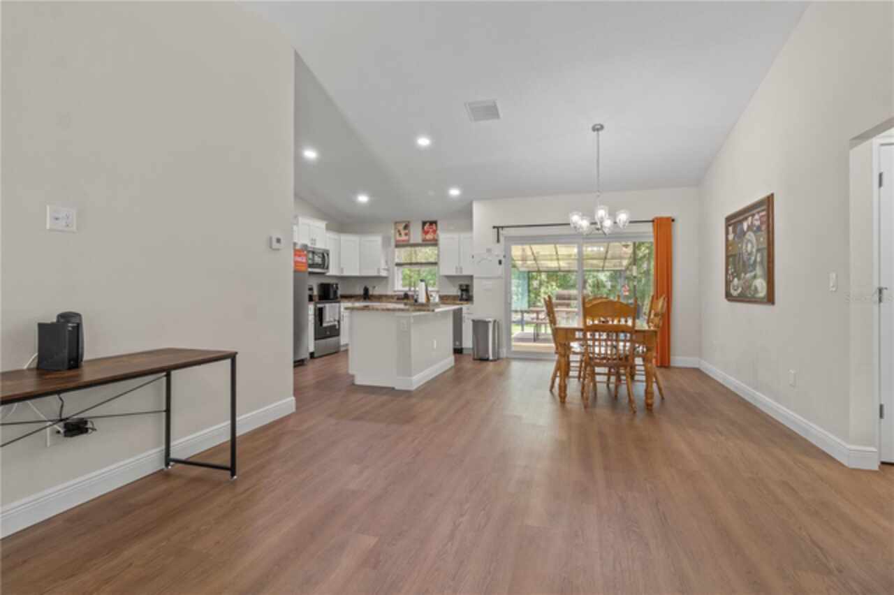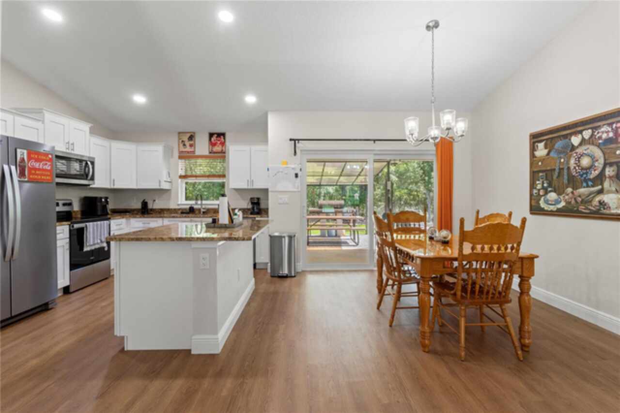 Imagine waking up and hopping onto the Withlacoochee State Trail for a bike ride or nature walk; or heading out to kayak or snorkel in Rainbow Springs just minutes from your door; or enjoy world-class golfing at nearby courses; or join neighbors for community events, bingo nights, and local festivals. Nestled on a spacious oversized 0.33-acre corner lot, this expertly crafted single-story 3/2/2 home delivers modern finishes (granite countertops, luxury plank vinyl flooring, tiled master shower, and a lanai made for relaxing around the firepit or backyard cookouts). Cathedral ceilings in the living room and a tray ceiling with crown molding in the master bedroom add architectural interest and a sense of space. This home embodies the sweet spot of modern Florida living—better than new, practical, and stylish, with no waiting on construction delays. Call now or contact your agent to book a tour—see why everyone is falling in love with Citrus Springs.