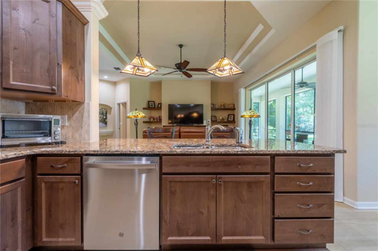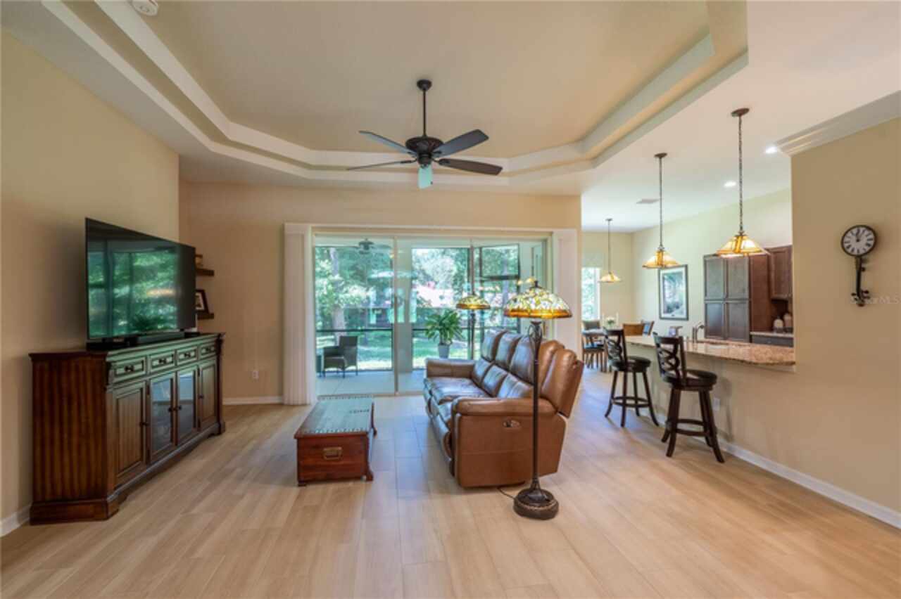 Discover your dream home at 9540 SW 189th Court in the serene community of Dunnellon, Florida. This stunning newer construction home boasts a spacious 3-bedroom, 2-bathroom layout with 2, 073 square feet of luxurious living space and over 3, 000 square feet total under roof. Enjoy the benefits of a split floor plan that includes high coffered ceilings, an open-concept design, a formal dining room, casual dining room with a beautiful open view of the backyard, granite countertops throughout and modern upgrades that won't be overlooked! The expansive living area seamlessly extends to a large screened-in back porch, complete with tall sliding doors that forge a connection to the outdoors. Dine formally or casually while taking in picturesque views of the surrounding wildlife, including deer, fawns, and turkeys. Located in a peaceful cul-de-sac in Rainbow Springs Country Club, residents enjoy beautifully mature landscaping and access to a community clubhouse featuring a delightful restaurant, a swimming pool, and a range of recreational activities. Play shuffleboard, tennis, or billiards, or relax on the 9-hole frisbee golf course. Engage in fitness routines, pickleball, horseshoes, bocce ball, and numerous walking trails. Conveniently close to the World Equestrian Center and essential shopping, this property offers a perfect blend of privacy and accessibility. Outdoor enthusiasts will appreciate the proximity to KP Hole Park, Blue Run of Dunnellon Park, Withlacoochee State Forest, and the Cross Florida Greenway, where you can canoe, kayak, snorkel, tube, camp, and more. Experience a vibrant lifestyle surrounded by nature and community at this exceptional property.