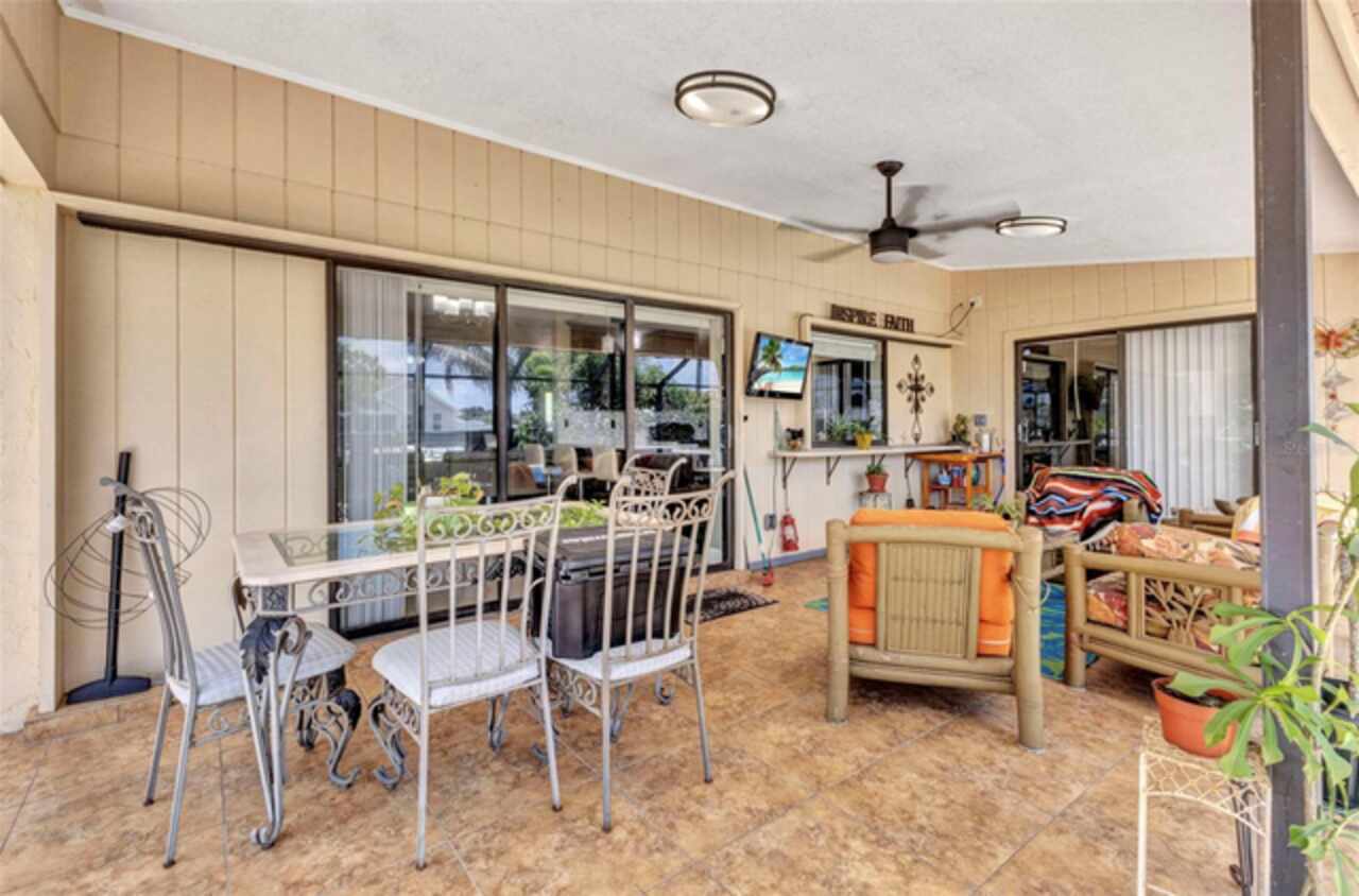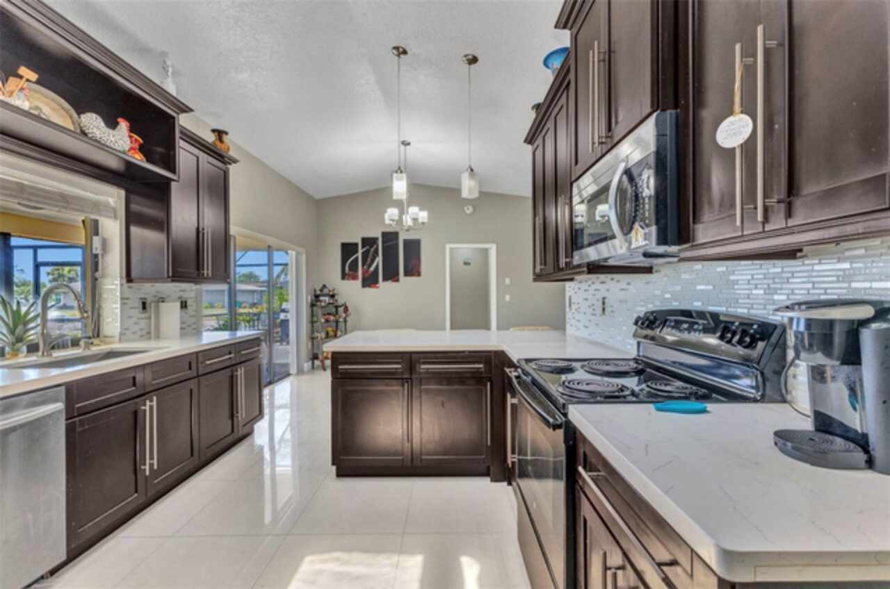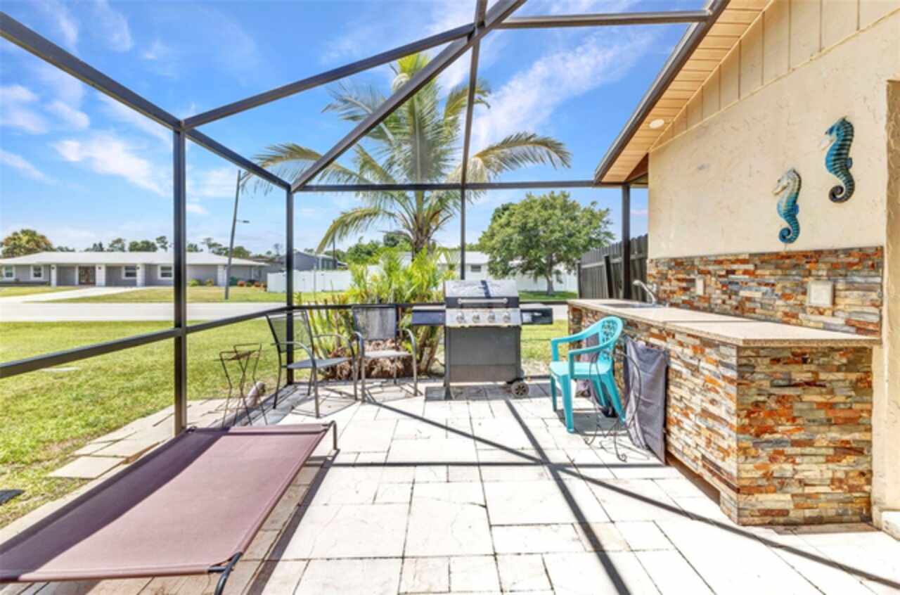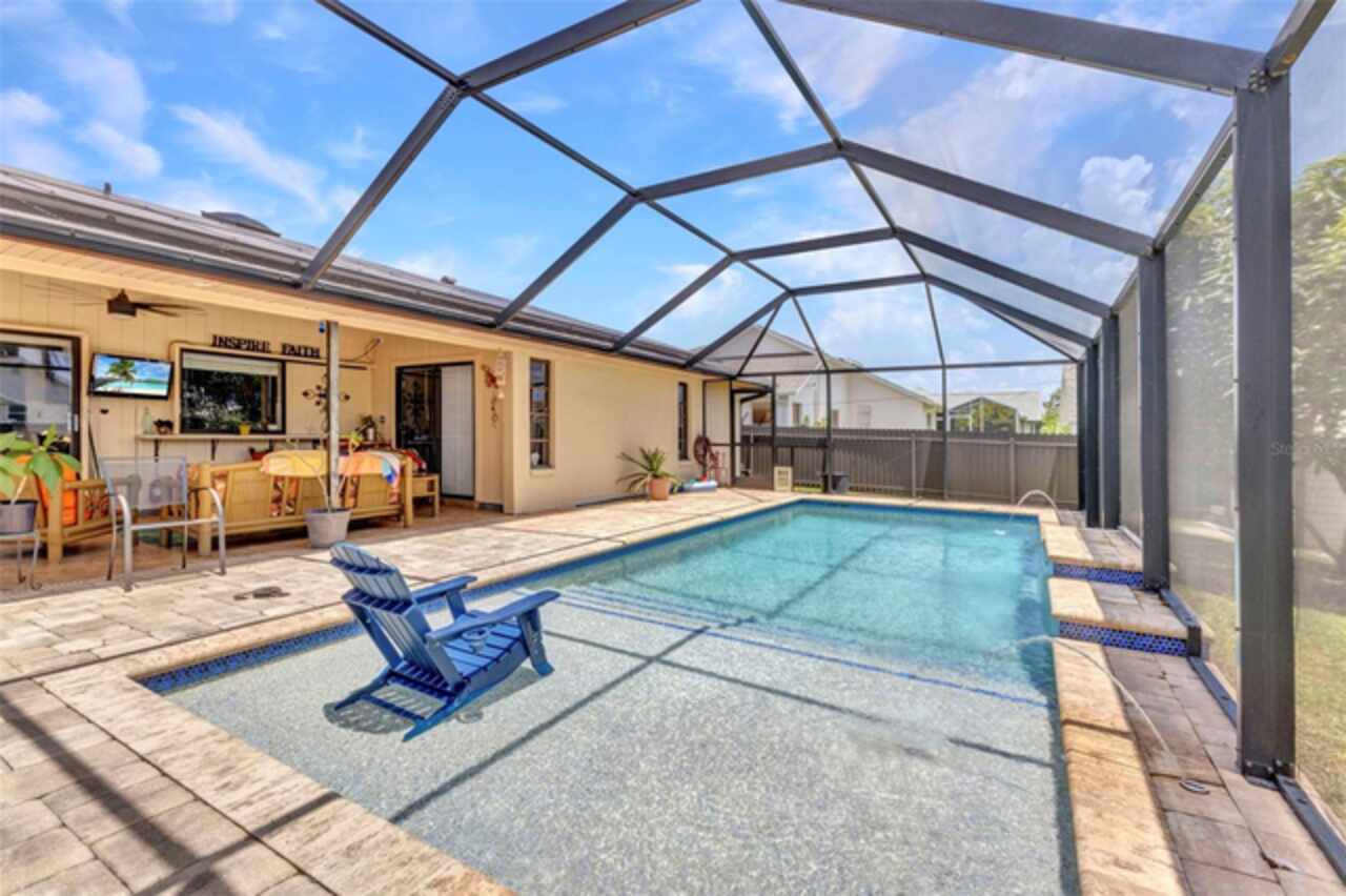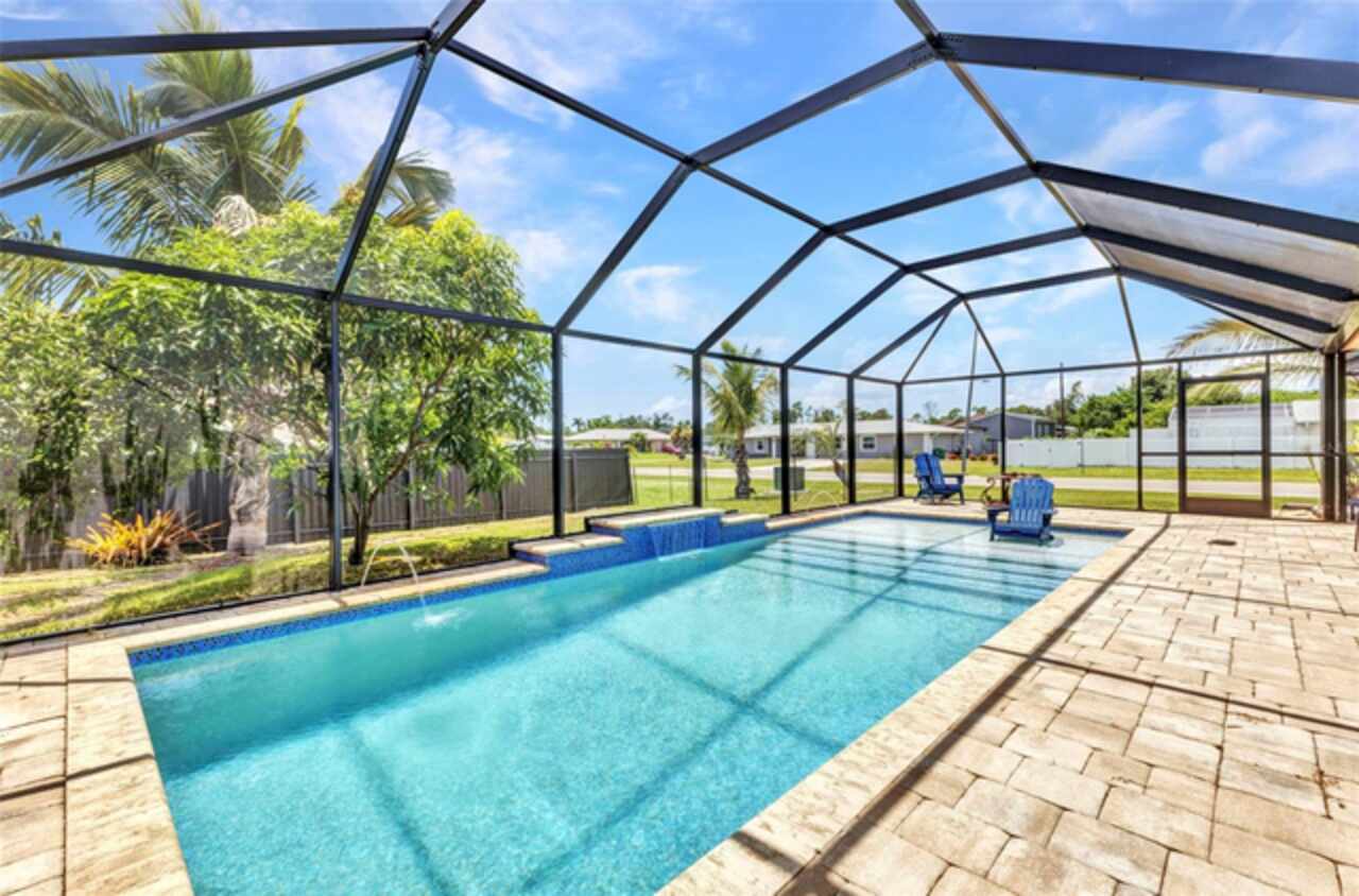 REDUCED!! Beautifully Updated X or No Flood zone Home with gorgeous Pool, also upgraded with Solar Panels for efficiency and energy savings & Whole-House Water Filtration is a plus. Electric bill summer seller said around $20/ mo. In winter time around $50/ mo. This charming and tastefully updated home offers both style and efficiency. Inside, you'll find ceramic tile flooring throughout, and a remodeled kitchen featuring solid wood cabinets and granite countertops. The guest bathroom has been thoughtfully upgraded with a glass shower door, rainfall showerhead, new ceramic tile, and modern cabinetry. Step outside to your private backyard oasis, complete with a sparkling pool installed in 2020, extended decking for entertaining, and full fencing for privacy. The corner lot is perfect to park a boat, truck, or trailer, plus a shed for extra storage. Enjoy low energy costs thanks to newly installed solar panels—the seller reports summer electric bills as low as $20, and just $50 during winter months. A whole-house water filtration system has also been installed, offering clean and purified water throughout the home. A versatile bonus room provides space for a potential third bedroom, home office, or a climate-controlled workshop. This move-in ready home blends modern comfort, energy efficiency, and outdoor living—perfect for years of relaxation and enjoyment. Enjoy fruit trees like matured mangoe and coconut trees and orange tree!
