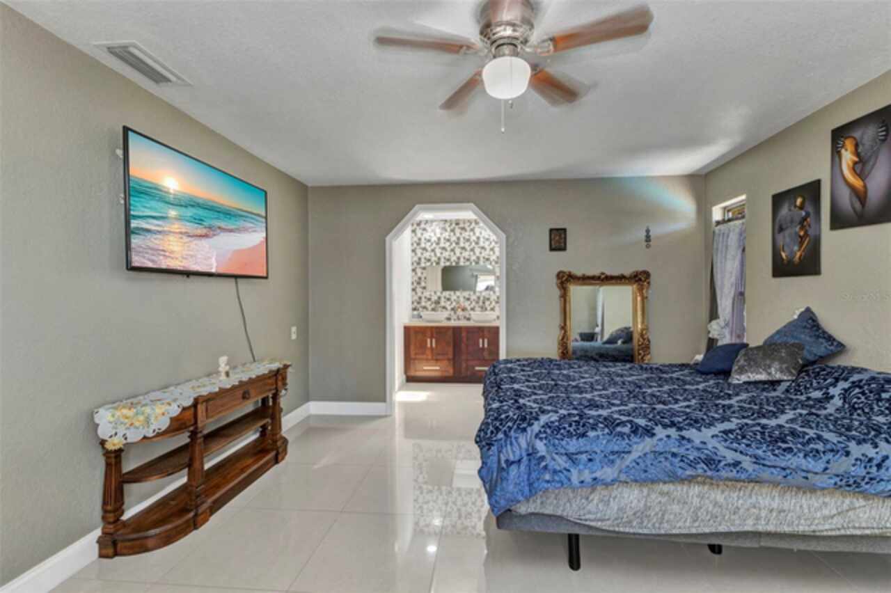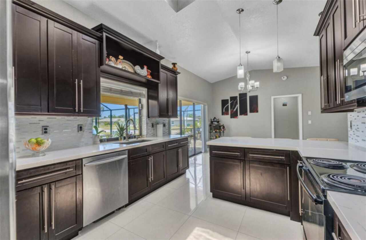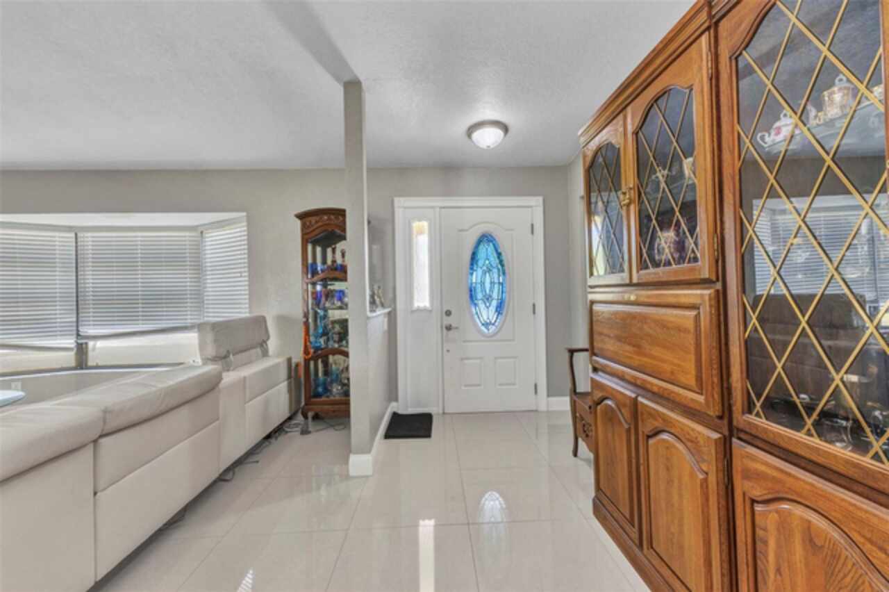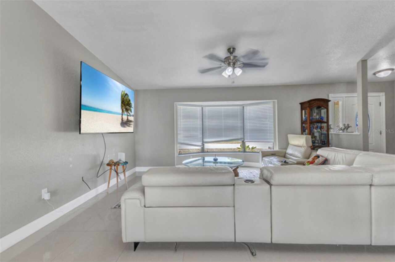 REDUCED!! Beautifully Updated X or No Flood zone Home with gorgeous Pool, also upgraded with Solar Panels for efficiency and energy savings & Whole-House Water Filtration is a plus. Electric bill summer seller said around $20/ mo. In winter time around $50/ mo. This charming and tastefully updated home offers both style and efficiency. Inside, you'll find ceramic tile flooring throughout, and a remodeled kitchen featuring solid wood cabinets and granite countertops. The guest bathroom has been thoughtfully upgraded with a glass shower door, rainfall showerhead, new ceramic tile, and modern cabinetry. Step outside to your private backyard oasis, complete with a sparkling pool installed in 2020, extended decking for entertaining, and full fencing for privacy. The corner lot is perfect to park a boat, truck, or trailer, plus a shed for extra storage. Enjoy low energy costs thanks to newly installed solar panels—the seller reports summer electric bills as low as $20, and just $50 during winter months. A whole-house water filtration system has also been installed, offering clean and purified water throughout the home. A versatile bonus room provides space for a potential third bedroom, home office, or a climate-controlled workshop. This move-in ready home blends modern comfort, energy efficiency, and outdoor living—perfect for years of relaxation and enjoyment. Enjoy fruit trees like matured mangoe and coconut trees and orange tree!