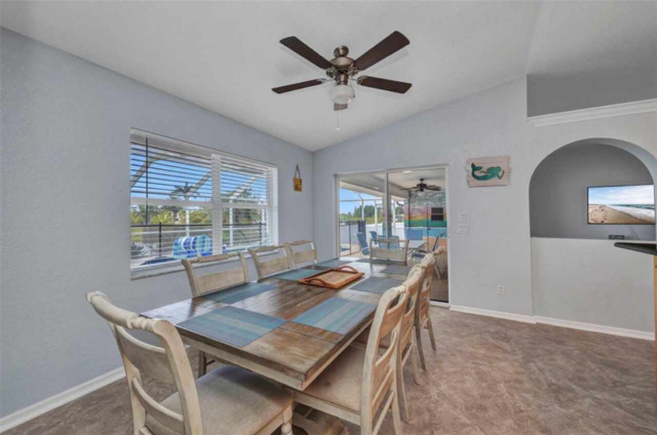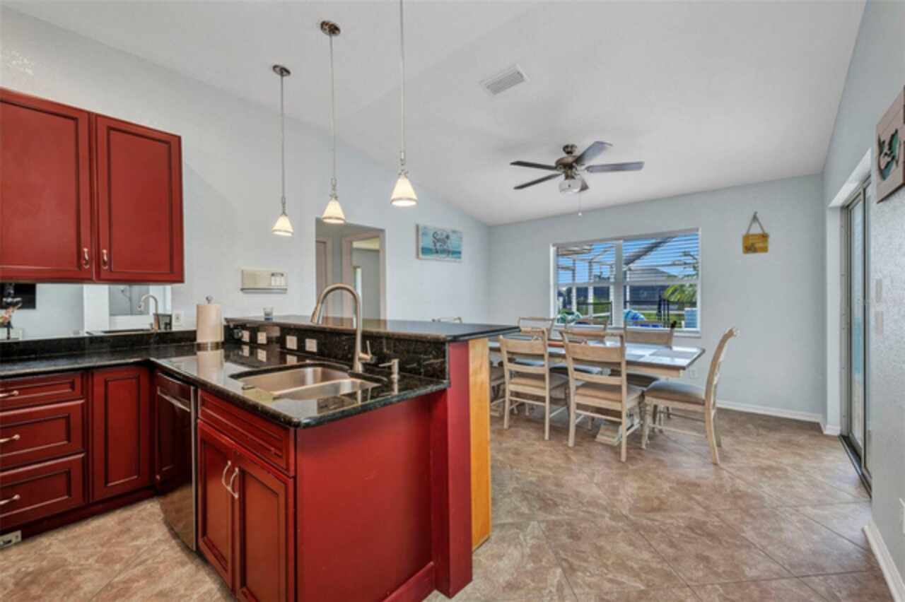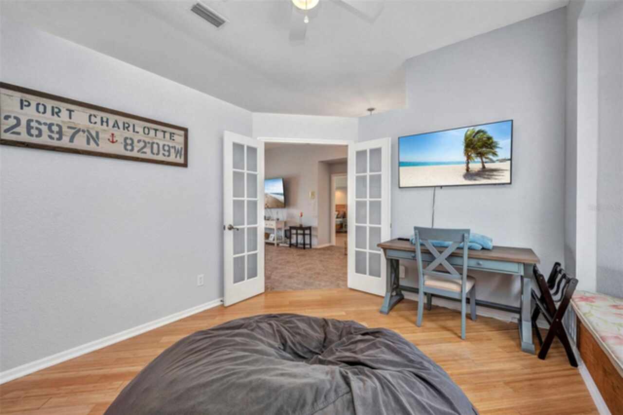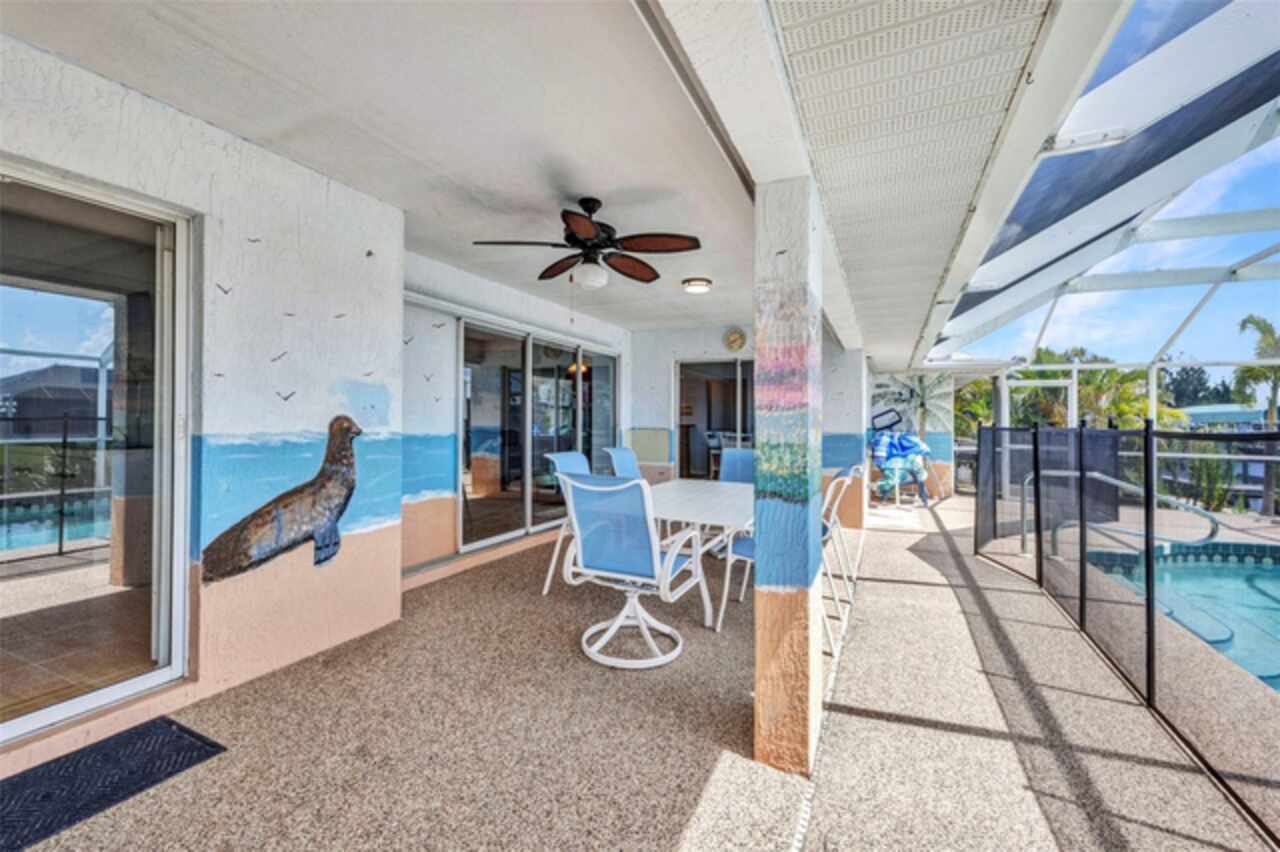 SELLER OFFERING $10, 000 toward buyer closing costs. TURN-KEY WATERFRONT three-bedroom, 2.5-bathroom POOL HOME with a two-car garage, this gem features a BONUS DEN and is situated on A SALTWATER CANAL WITH DIRECT ACCESS TO THE GULF. The generously sized living room offers lovely views of the canal, creating a serene atmosphere for relaxation. The kitchen is equipped with all STAINLESS-STEEL appliances, beautiful GRANITE COUNTERTOPS, and a convenient breakfast bar, perfect for casual dining. All three bedrooms are spacious, with the primary bedroom showcasing TRAY CEILINGS AND PLANTATION SHUTTERS for added elegance. The primary suite also features a walk-in closet and a primary bathroom with a dual sink vanity and a tiled walk-in shower for a luxurious experience. The guest bedrooms are thoughtfully placed on the opposite side of the SPLIT FLOOR PLAN for optimal privacy, each with built-in closets and a shared guest bathroom. The versatile den can serve as office space or can easily accommodate guests with its Murphy bed, providing additional sleeping arrangements. Step outside to discover an amazing outdoor space, complete with a LARGE POOL DECK featuring an undercover seating area, an EPOXY POOL DECK, a HALF BATHROOM, and an outdoor shower for convenience. The PRIVATE DOCK is equipped with a FISH LIGHT, perfect for enjoying stunning sunrises or spending a day fishing. Located in the desirable and deed-restricted community of South Gulf Cove, this home has no mandatory HOA fees and has been successfully utilized as an Airbnb when not occupied by the owner. The community offers an optional HOA with access to a clubhouse, playground, and private boat ramp, and is ideally located just minutes away from Boca Grande Beach, Englewood Beach, and Manasota Key. Live entertainment, shopping, and dining are all within easy reach. Don’t miss out on this incredible opportunity—call for a private showing today!