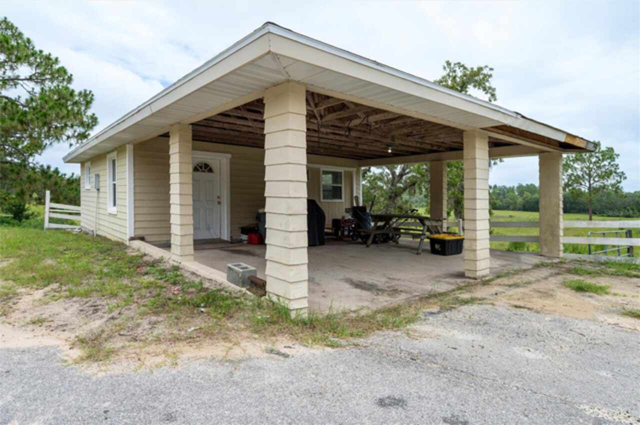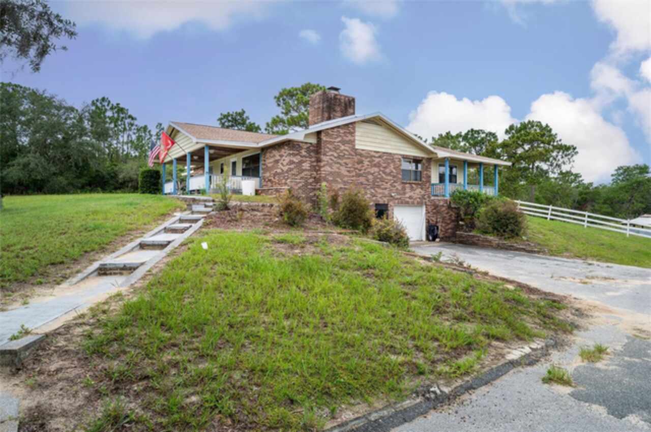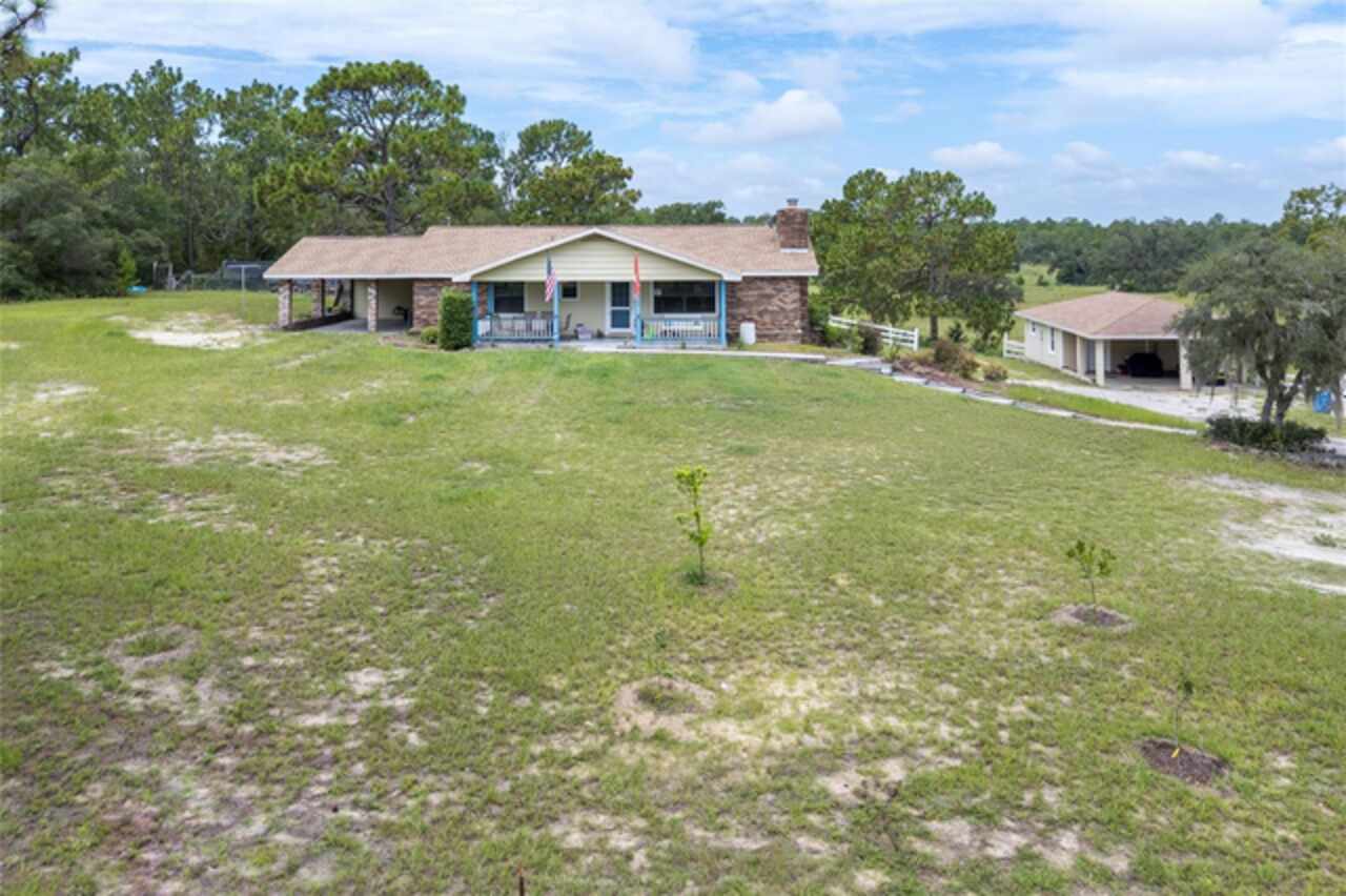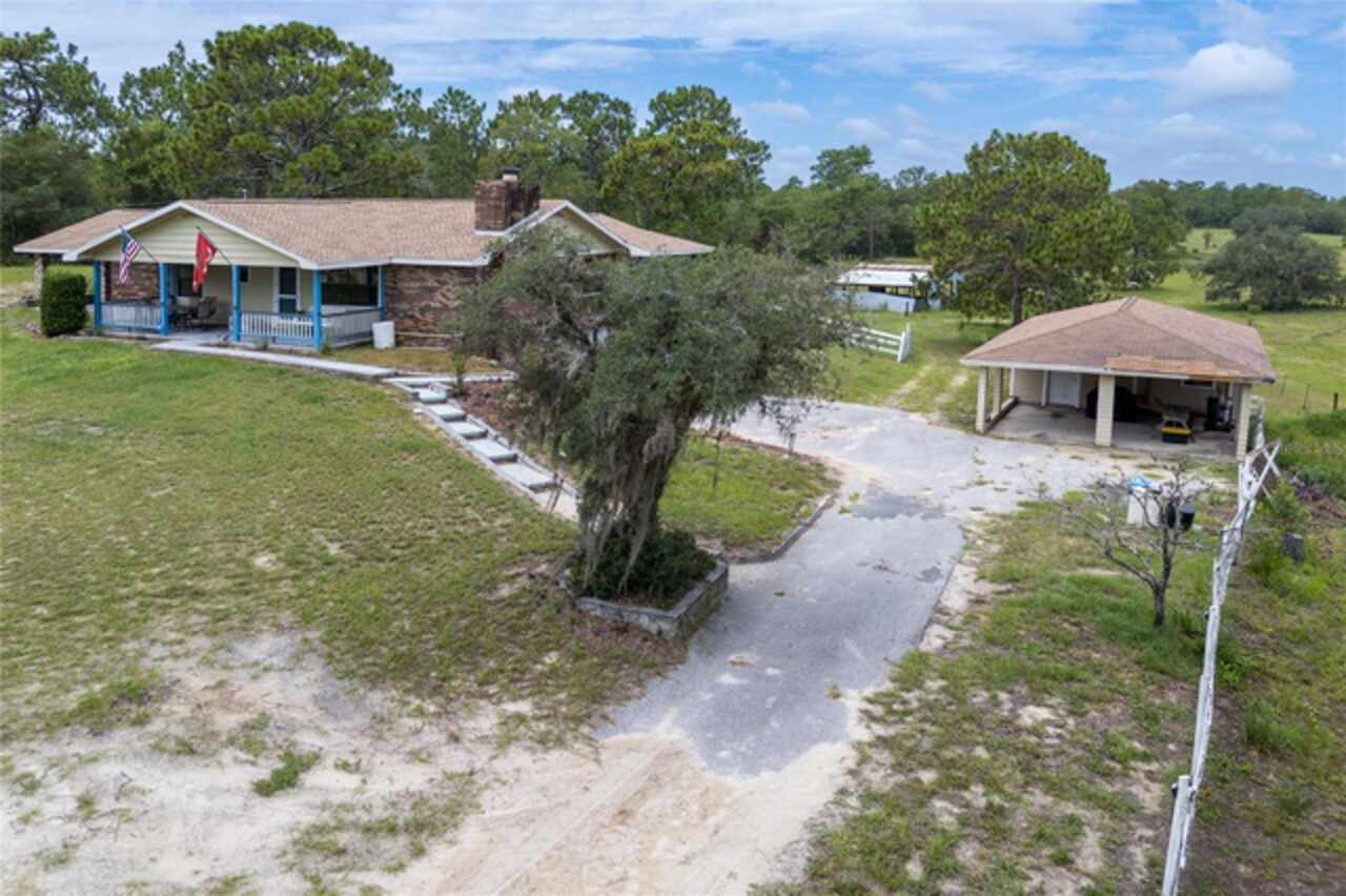 PRICE FURTHER REDUCED! Embrace the charm of country living with this beautifully updated 3-bedroom, 2-bath, bonus room, single-family residence, nestled on 5 serene acres in the heart of Dunnellon’s picturesque farmland. Perfectly situated in Citrus County, this peaceful retreat offers convenient access to downtown, lush state forests, and miles of scenic trail riding. Set atop a gentle hill, the home boasts a welcoming front porch—ideal for quiet mornings—and a cozy wood-burning fireplace that invites relaxation on cool evenings. Crafted with character, the interior features solid pine doors and cabinetry, a spacious kitchen, formal living and dining rooms, and a generous family room, all enhanced by warm wood and luxury vinyl plank flooring. The expansive primary suite offers ample closet space and peaceful views of the surrounding landscape. Step out to the rear porch and enjoy sweeping vistas of rolling pastures and open skies. Additional highlights include a new roof, an oversized garage, and a detached two-bay carport with an air-conditioned 576 sq. ft. bonus room—ideal for a guest suite, gym, home theater, or in-law quarters. Thoughtfully upgraded for comfort and functionality, the home includes a new whole-house reverse osmosis water filtration system, a recently cleaned-up septic tank, new toilets and ceiling fans, and a state-of-the-art digital security system with cameras and sensors. Recent improvements also include the removal of all carpeting, replaced with elegant luxury vinyl flooring throughout the bedrooms. A chicken coop with full amenities awaits the farm enthusiast, and agricultural exemptions may apply, adding value for those seeking a more self-sustained lifestyle. This solid block-and-brick home offers a rare blend of tranquility, comfort, and natural beauty—an ideal haven for those longing to escape the city’s hustle and embrace the whispering winds of Florida’s majestic pines and oak trees.