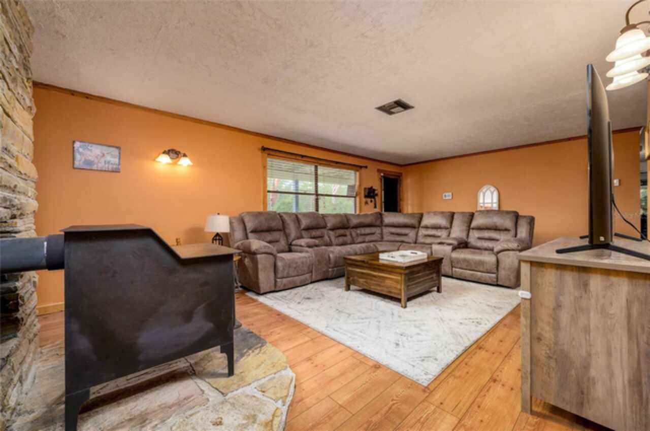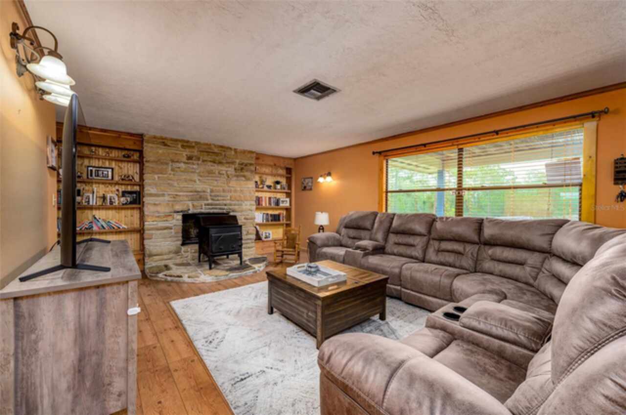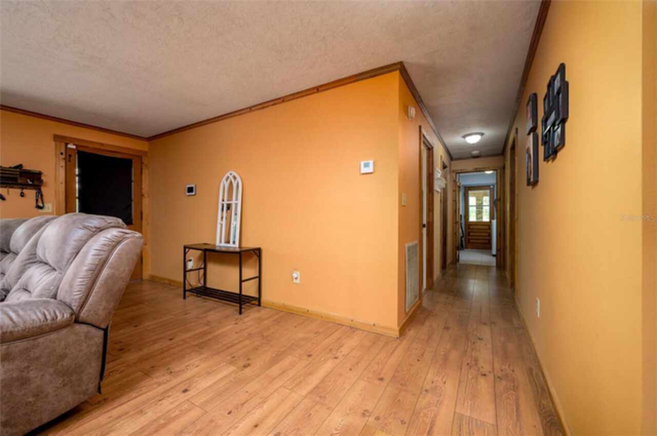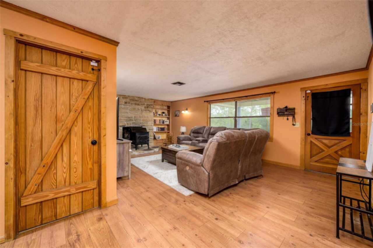 PRICE FURTHER REDUCED! Embrace the charm of country living with this beautifully updated 3-bedroom, 2-bath, bonus room, single-family residence, nestled on 5 serene acres in the heart of Dunnellon’s picturesque farmland. Perfectly situated in Citrus County, this peaceful retreat offers convenient access to downtown, lush state forests, and miles of scenic trail riding. Set atop a gentle hill, the home boasts a welcoming front porch—ideal for quiet mornings—and a cozy wood-burning fireplace that invites relaxation on cool evenings. Crafted with character, the interior features solid pine doors and cabinetry, a spacious kitchen, formal living and dining rooms, and a generous family room, all enhanced by warm wood and luxury vinyl plank flooring. The expansive primary suite offers ample closet space and peaceful views of the surrounding landscape. Step out to the rear porch and enjoy sweeping vistas of rolling pastures and open skies. Additional highlights include a new roof, an oversized garage, and a detached two-bay carport with an air-conditioned 576 sq. ft. bonus room—ideal for a guest suite, gym, home theater, or in-law quarters. Thoughtfully upgraded for comfort and functionality, the home includes a new whole-house reverse osmosis water filtration system, a recently cleaned-up septic tank, new toilets and ceiling fans, and a state-of-the-art digital security system with cameras and sensors. Recent improvements also include the removal of all carpeting, replaced with elegant luxury vinyl flooring throughout the bedrooms. A chicken coop with full amenities awaits the farm enthusiast, and agricultural exemptions may apply, adding value for those seeking a more self-sustained lifestyle. This solid block-and-brick home offers a rare blend of tranquility, comfort, and natural beauty—an ideal haven for those longing to escape the city’s hustle and embrace the whispering winds of Florida’s majestic pines and oak trees.