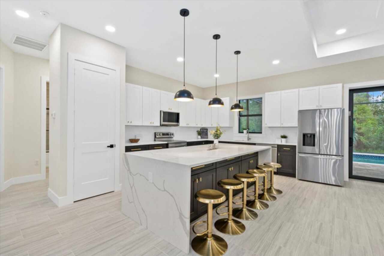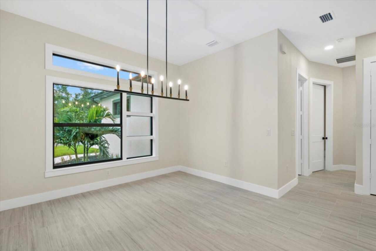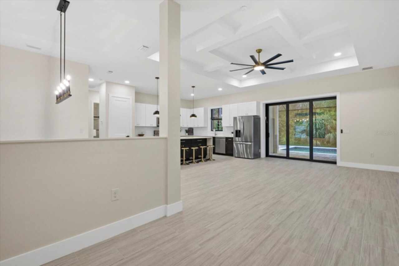 One or more photo(s) has been virtually staged. Welcome to your dream Florida oasis! This stunning newly built 3-bedroom, 2-bathroom single-family home is nestled on a quiet street surrounded by newer homes, offering peace, privacy, and luxurious living. From the moment you arrive, you’ll be impressed by the beautiful landscaping, exterior soffit lighting, and impact-resistant roof, windows, and doors. Step inside to a spacious open-concept layout featuring high ceilings, elegant tile flooring, custom LED lighting, and gorgeous light fixtures throughout. The gourmet kitchen is a showstopper, complete with stainless steel appliances, custom cabinetry, and a waterfall quartz island—perfect for entertaining. The primary suite is a private retreat, offering direct pool access, a large walk-in closet, and a spa-like en-suite with a stand-alone soaking tub and a separate walk-in shower. Enjoy the convenience of indoor laundry and an epoxy-finished garage for extra durability. Step outside to your private in-ground pool with a screened enclosure, spacious covered patio, and a built-in outdoor shower—ideal for Florida living. The sprinkler system keeps your lush green lawn looking its best year-round. Special Features include: Tiled floors, Exterior soffit lighting, Pool, Grass sprinkle system, Stainless steel appliances, Beautiful light fixtures, Master bedroom pool access, Outside shower, spacious covered patio, Inside laundry, Epoxy flooring garage, Beautifully landscaped, High ceilings, & Spacious interior. Located just minutes from Wellen Park, Gulf beaches, shopping, dining, and world-class golf, this move-in-ready home has no HOA or lease restrictions. Come experience the perfect blend of luxury, comfort, and location—schedule your private showing today!