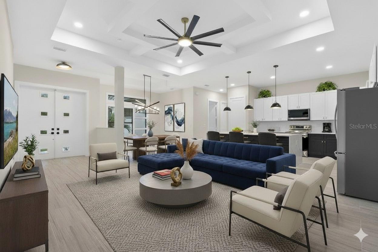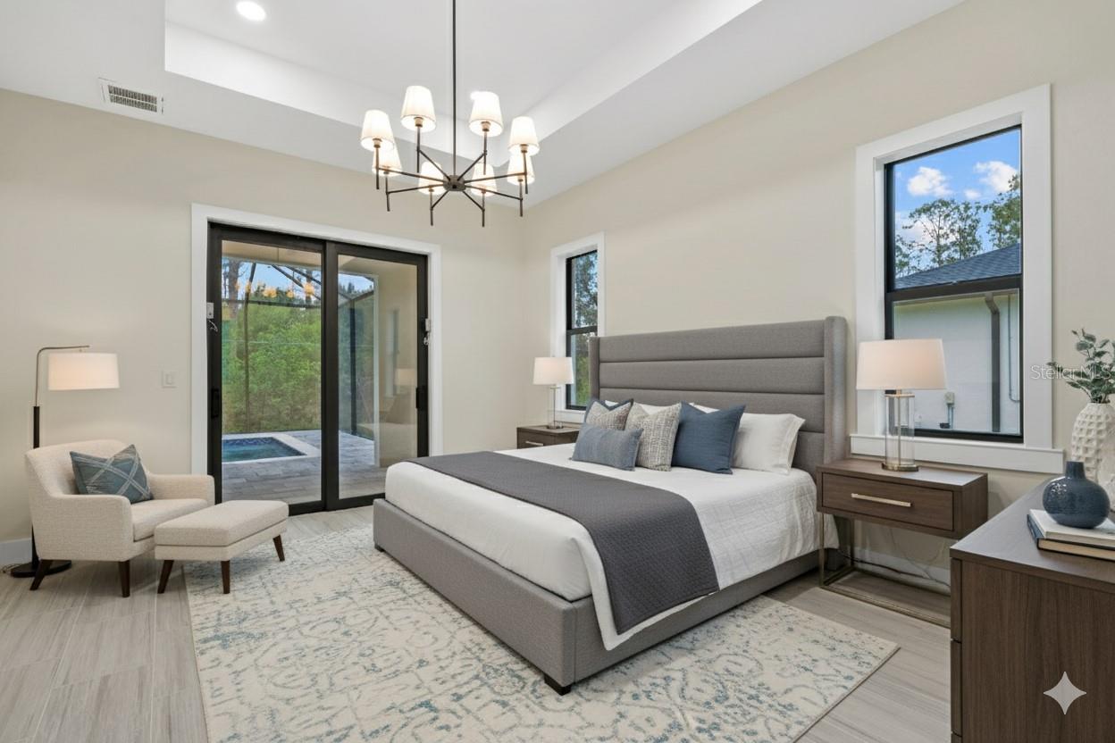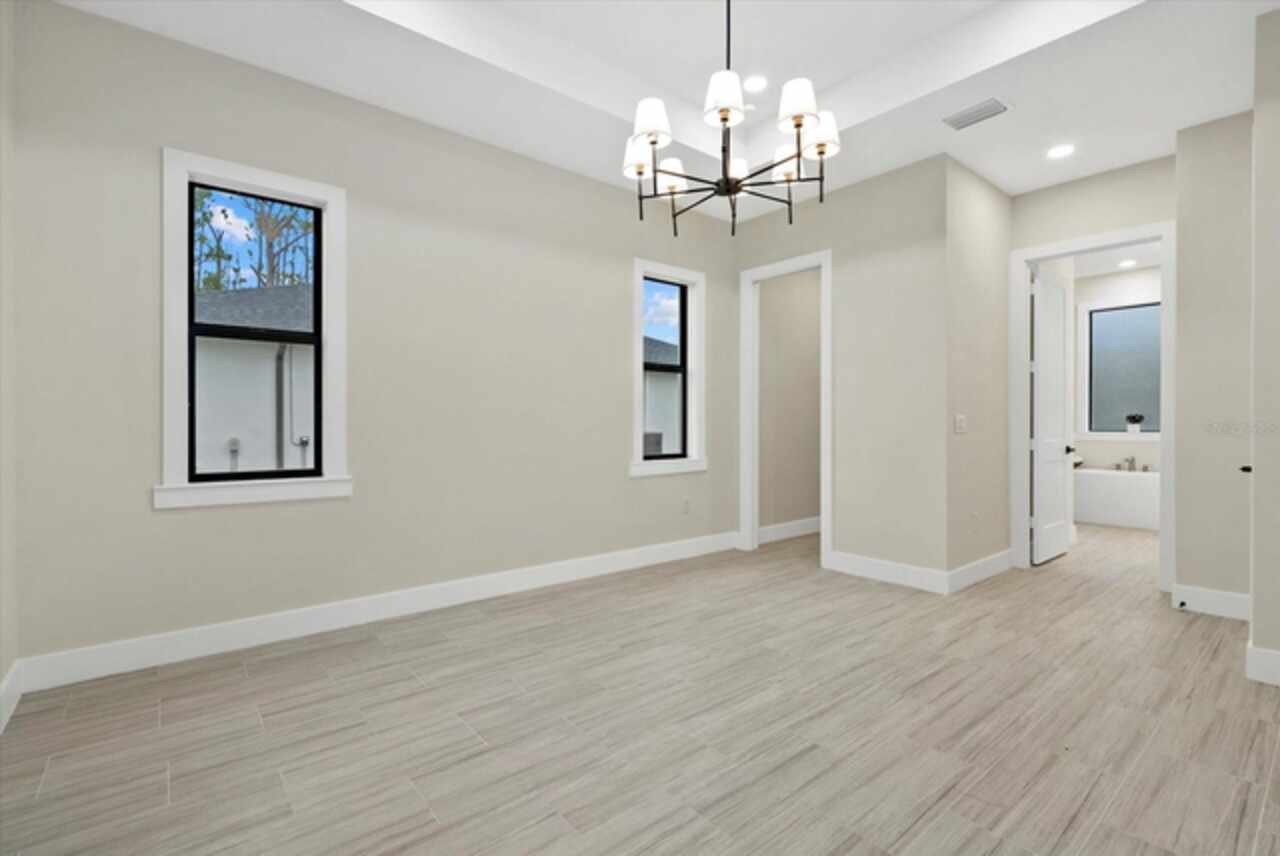 One or more photo(s) has been virtually staged. Welcome to your dream Florida oasis! This stunning newly built 3-bedroom, 2-bathroom single-family home is nestled on a quiet street surrounded by newer homes, offering peace, privacy, and luxurious living. From the moment you arrive, you’ll be impressed by the beautiful landscaping, exterior soffit lighting, and impact-resistant roof, windows, and doors. Step inside to a spacious open-concept layout featuring high ceilings, elegant tile flooring, custom LED lighting, and gorgeous light fixtures throughout. The gourmet kitchen is a showstopper, complete with stainless steel appliances, custom cabinetry, and a waterfall quartz island—perfect for entertaining. The primary suite is a private retreat, offering direct pool access, a large walk-in closet, and a spa-like en-suite with a stand-alone soaking tub and a separate walk-in shower. Enjoy the convenience of indoor laundry and an epoxy-finished garage for extra durability. Step outside to your private in-ground pool with a screened enclosure, spacious covered patio, and a built-in outdoor shower—ideal for Florida living. The sprinkler system keeps your lush green lawn looking its best year-round. Special Features include: Tiled floors, Exterior soffit lighting, Pool, Grass sprinkle system, Stainless steel appliances, Beautiful light fixtures, Master bedroom pool access, Outside shower, spacious covered patio, Inside laundry, Epoxy flooring garage, Beautifully landscaped, High ceilings, & Spacious interior. Located just minutes from Wellen Park, Gulf beaches, shopping, dining, and world-class golf, this move-in-ready home has no HOA or lease restrictions. Come experience the perfect blend of luxury, comfort, and location—schedule your private showing today!