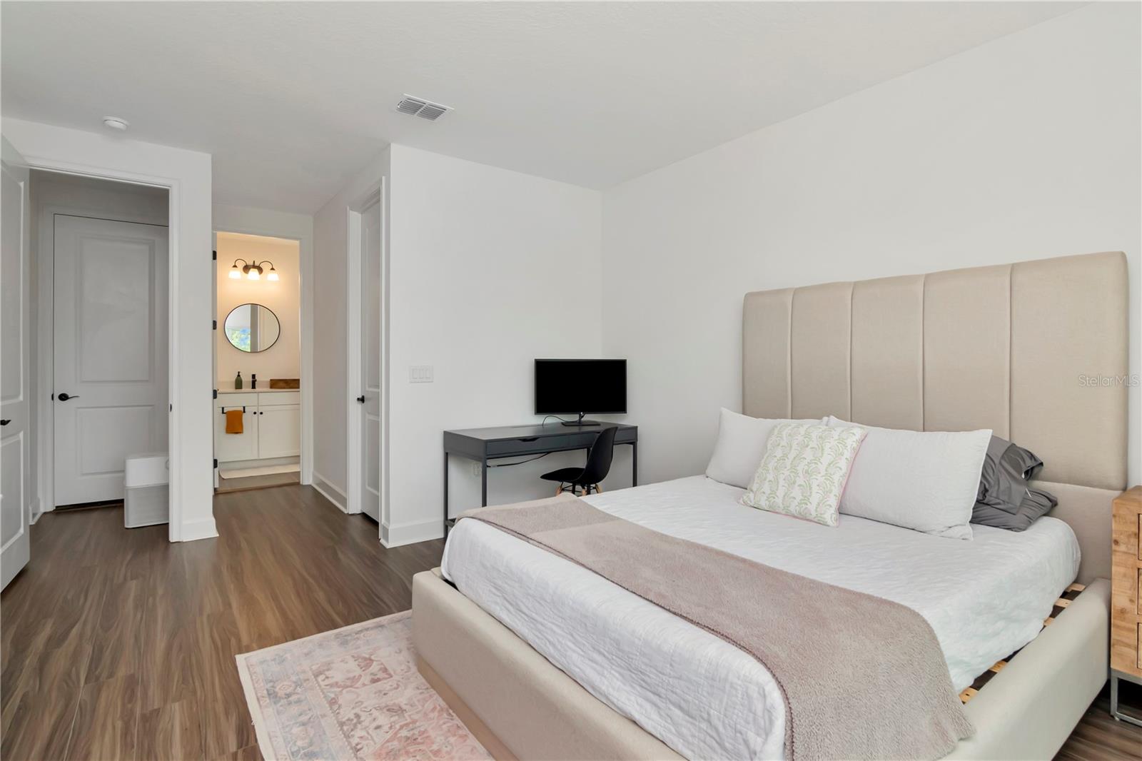SELLER TO PAY FOR ONE YEAR OF POOL AND LAWN SERVICE AT CLOSING AS A WELCOME GIFT FOR THE NEW BUYER. Welcome to this new and beautifully designed coastal-style residence offering the perfect blend of luxury, comfort, and Florida living. Located in the MiraBay community of Apollo Beach, this spacious two-story home features 4 bedrooms, 3.5 bathrooms, and a 3-car garage with an elegant paver driveway. Step inside to find an open-concept floor plan filled with natural light, high ceilings, and stylish finishes. The gourmet kitchen is a chef’s dream with quartz countertops, stainless steel appliances, a large island with bar seating, and abundant cabinet space. The inviting living areas are perfect for entertaining, while the ginormous upstairs loft provides a great flex space for a media room, playroom, or home office. Your private backyard oasis is a true showstopper! Relax by the sparkling saltwater pool that was just finished last year. Pool features a soothing waterfall, sun shelf, security pool gate and built-in umbrella, all surrounded by lush landscaping and a privacy fence. It’s the ultimate retreat for both relaxing and entertaining. Downstair, the spacious primary suite offers a spa-like ensuite bath with dual vanities, and a walk-in shower. The walk-in closets are everyone's dream and are perfect for even the largest shoe enthusiast. Additional bedrooms are all located upstairs and are generously sized, providing comfort for family and guests. The fourth bedroom features an en-suite bathroom as well and can serve as a second primary suite. Throughout you will also find lots of storage closets. As if that wasn't enough, all professionally mounted TVS convey with the property along with the installed EV charger in the garage and the camera doorbell and exterior mounted cameras. Living in MiraBay means resort-style amenities at your fingertips—enjoy a clubhouse, fitness center, café, heated swimming pool with waterslide, tennis courts, basketball courts, and exclusive access to kayaking, paddleboarding, and boating on Tampa Bay. Conveniently located near top-rated schools, shopping, dining, and major highways, this home offers the best of both a vibrant community and serene waterfront living. Don’t miss your chance to call this stunning property home! Schedule your private showing today.