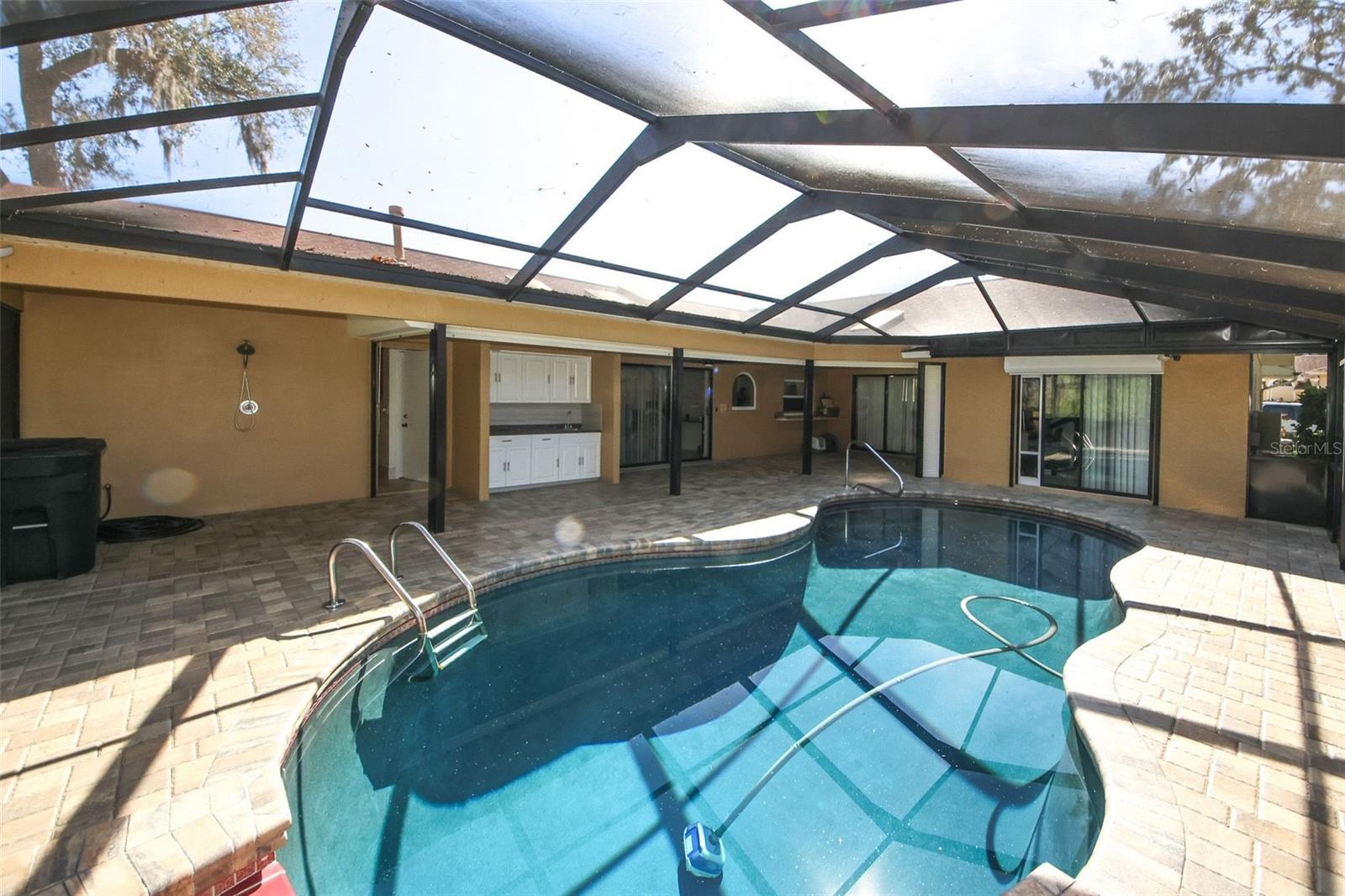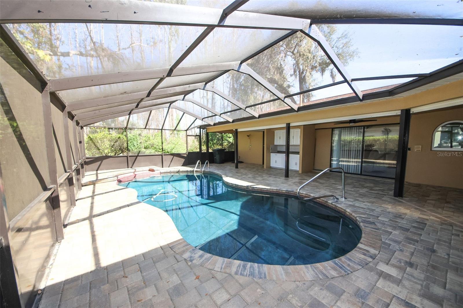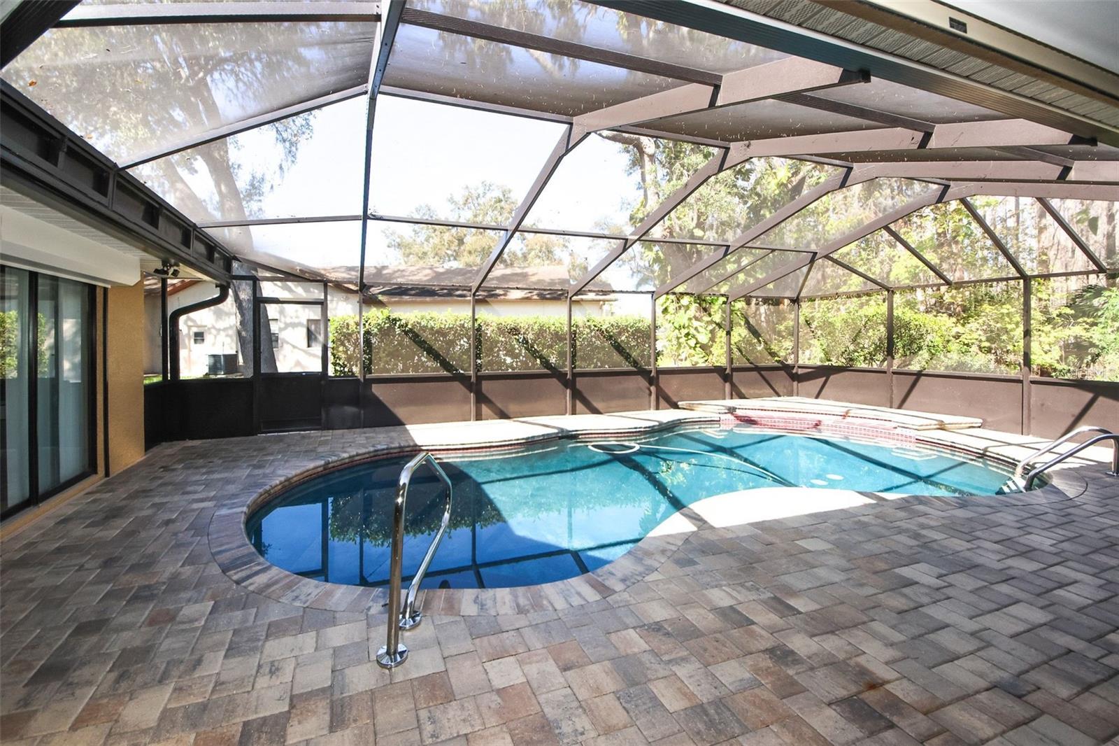 PRICE REDUCED FOR QUICK SALE $479, 000.00 PROPERTY JUST APPRAISED AT $525, 000.00 ALL NEW APPLIANCES. House for sale in New Port Richey/Trinity in Hunters Ridge. What a great find! This 3 bedroom, 2560 square feet, 3 bath, 2 car (air conditioned) garage pool home is full of so many amazing items! Home has all new hurricane rated windows through New South Proud with a transferrable warranty. To start there are TWO master bedroom suites both with an attaching office both with pool access. 10 Foot Pool with a Salt Water system recently remarcited and all new pool equipment. There is an outside shower, wet bar and pass-through serving window to the kitchen plus a poolside bathroom for convenience. New Pavers are around entire home and have been sealed. TWO master bathrooms and TWO living areas. The kitchen has cabinets galore and a large tiled island and is connected to the living area with fireplace and a pool view! . Large laundry room with a sink and more cabinet space, a separate air conditioned storage area outside of the 8ft garage and a view of the conservation area. 100 Gallon Propane water heater and a Brand New AC This is a must see!