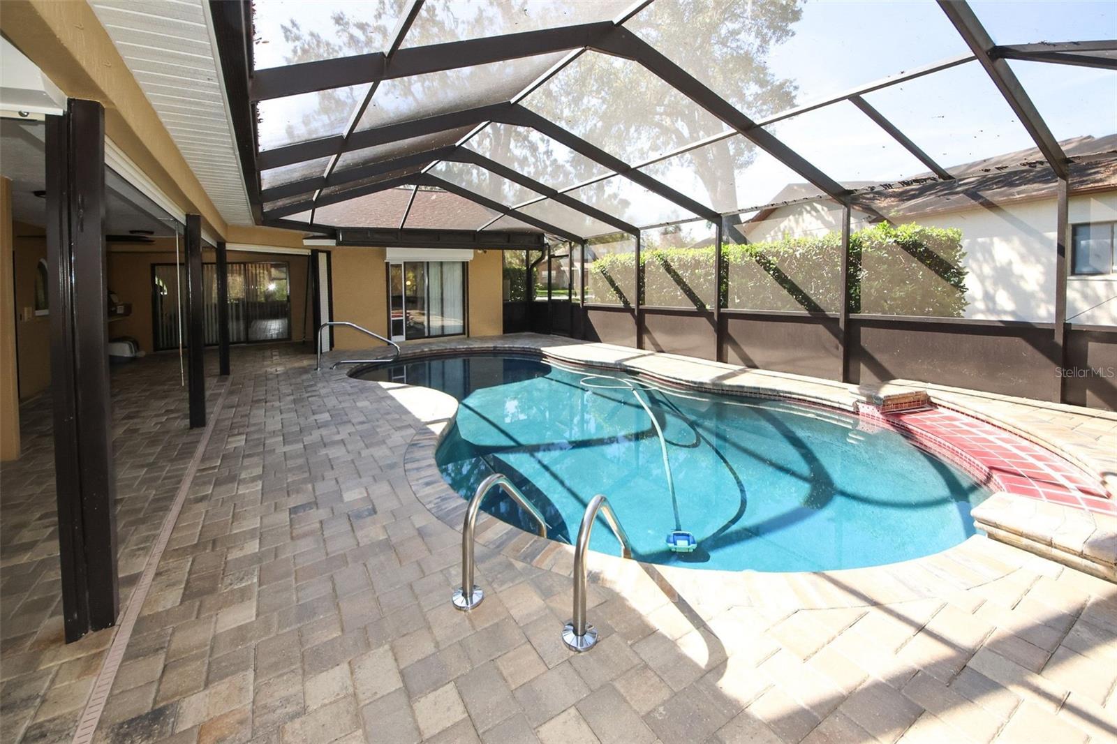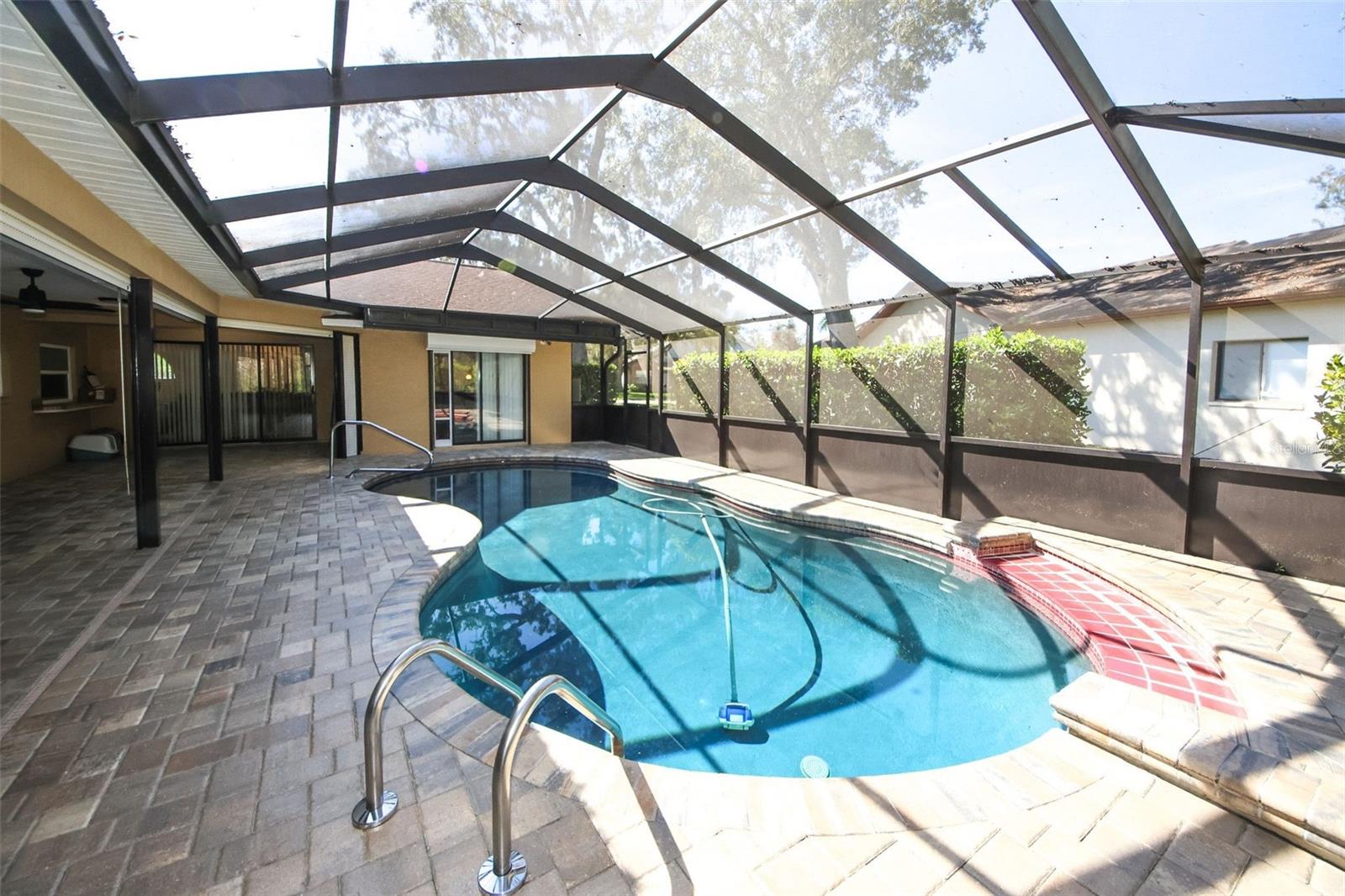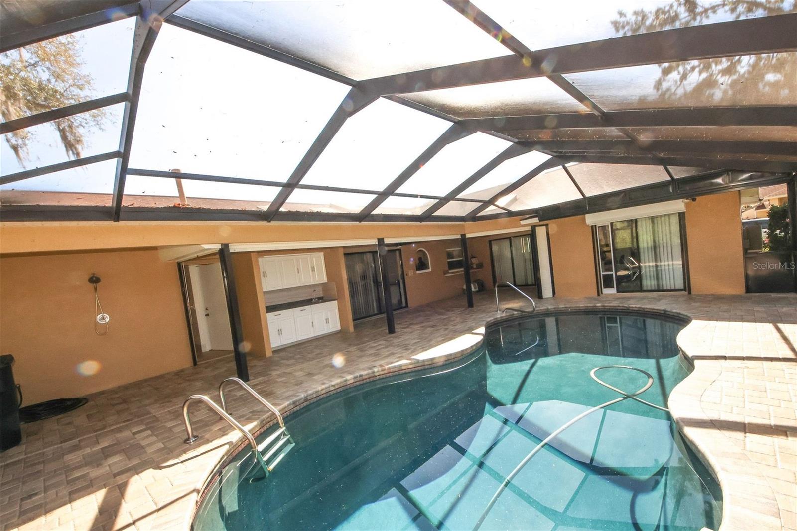PRICE REDUCED FOR QUICK SALE $479, 000.00 PROPERTY JUST APPRAISED AT $525, 000.00 ALL NEW APPLIANCES. House for sale in New Port Richey/Trinity in Hunters Ridge. What a great find! This 3 bedroom, 2560 square feet, 3 bath, 2 car (air conditioned) garage pool home is full of so many amazing items! Home has all new hurricane rated windows through New South Proud with a transferrable warranty. To start there are TWO master bedroom suites both with an attaching office both with pool access. 10 Foot Pool with a Salt Water system recently remarcited and all new pool equipment. There is an outside shower, wet bar and pass-through serving window to the kitchen plus a poolside bathroom for convenience. New Pavers are around entire home and have been sealed. TWO master bathrooms and TWO living areas. The kitchen has cabinets galore and a large tiled island and is connected to the living area with fireplace and a pool view! . Large laundry room with a sink and more cabinet space, a separate air conditioned storage area outside of the 8ft garage and a view of the conservation area. 100 Gallon Propane water heater and a Brand New AC This is a must see!