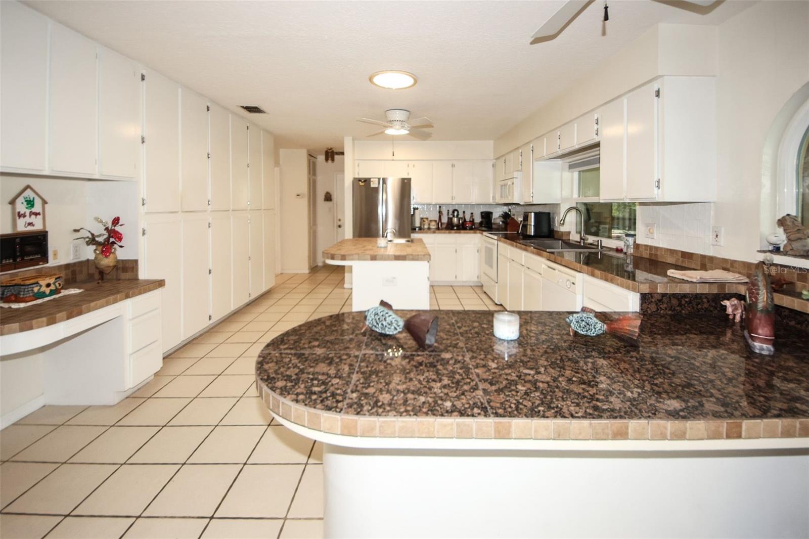 Built-in Features, Cathedral Ceiling(s), Central Vaccum, High Ceilings, Kitchen/Family Room Combo, Open Floorplan, Solid Wood Cabinets, Split Bedroom, Stone Counters, Thermostat, Walk-In Closet(s), Window Treatments