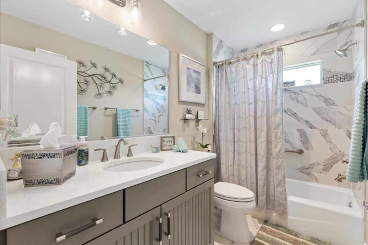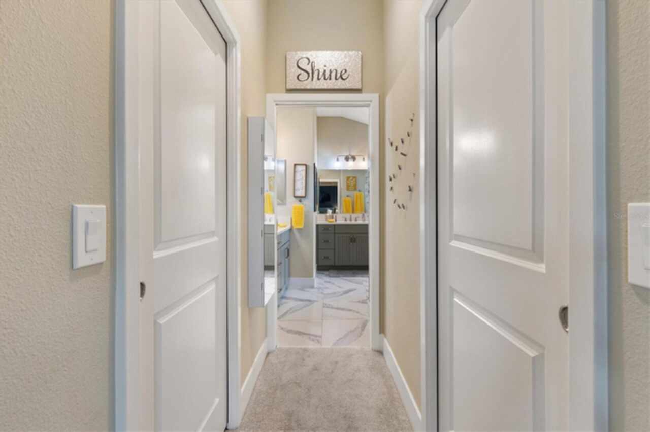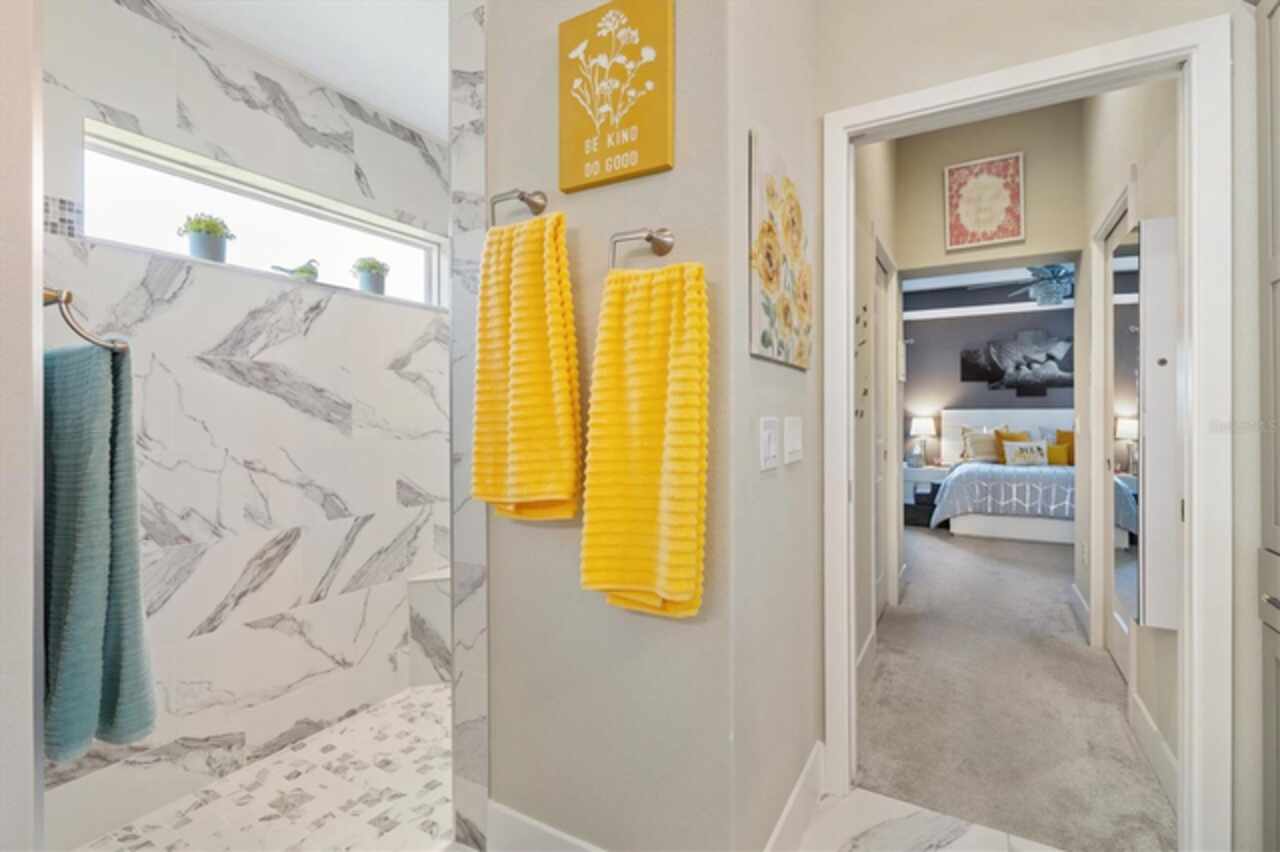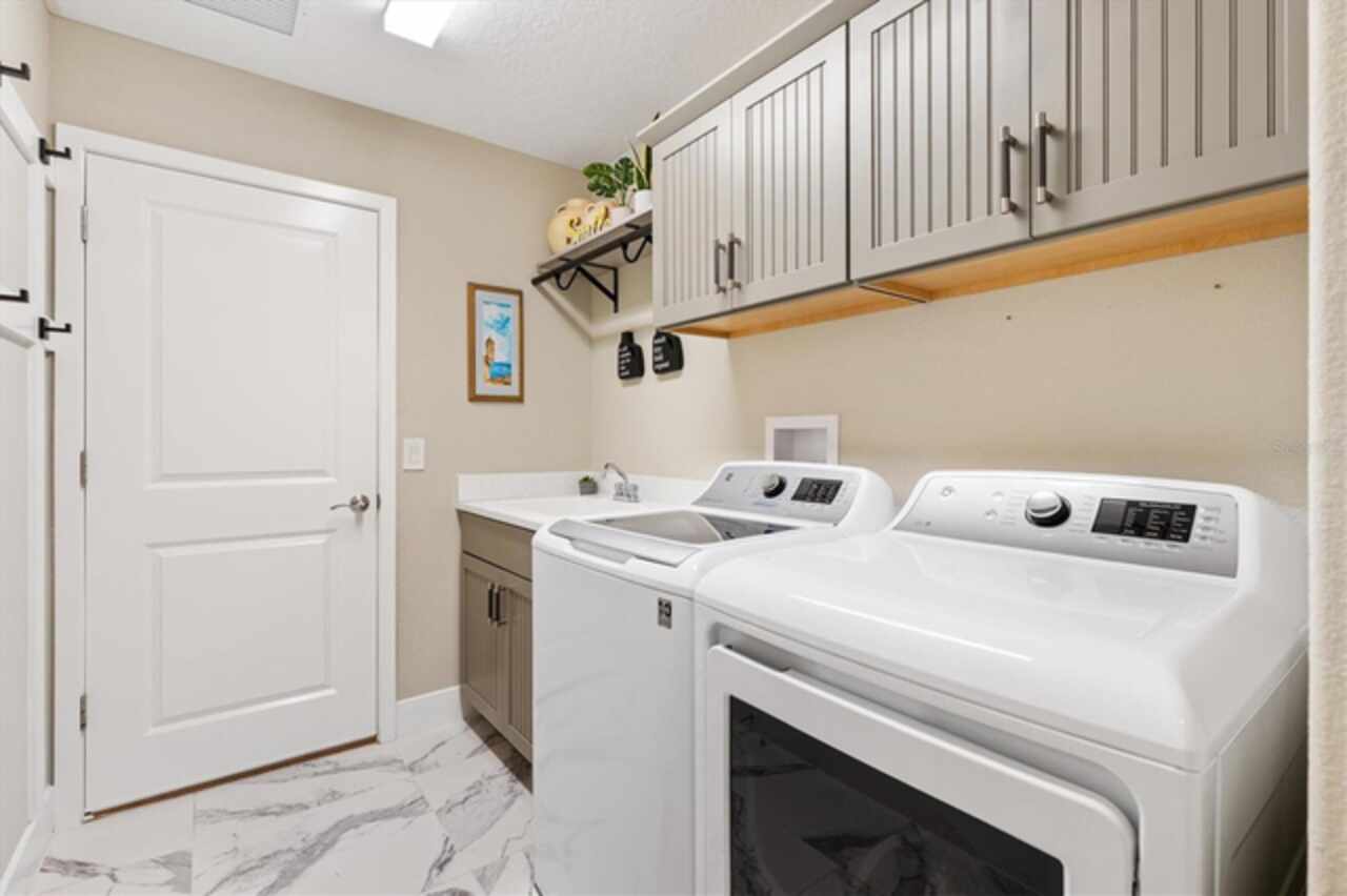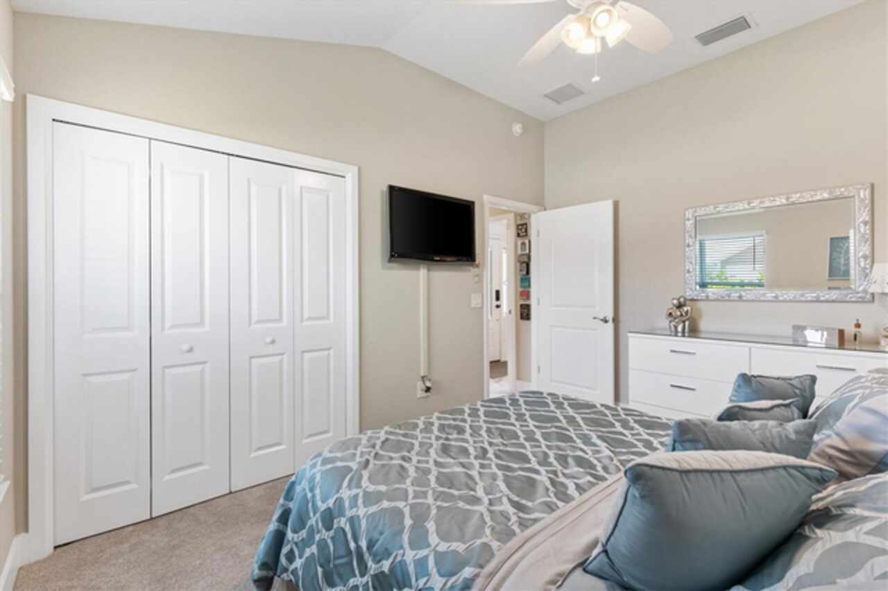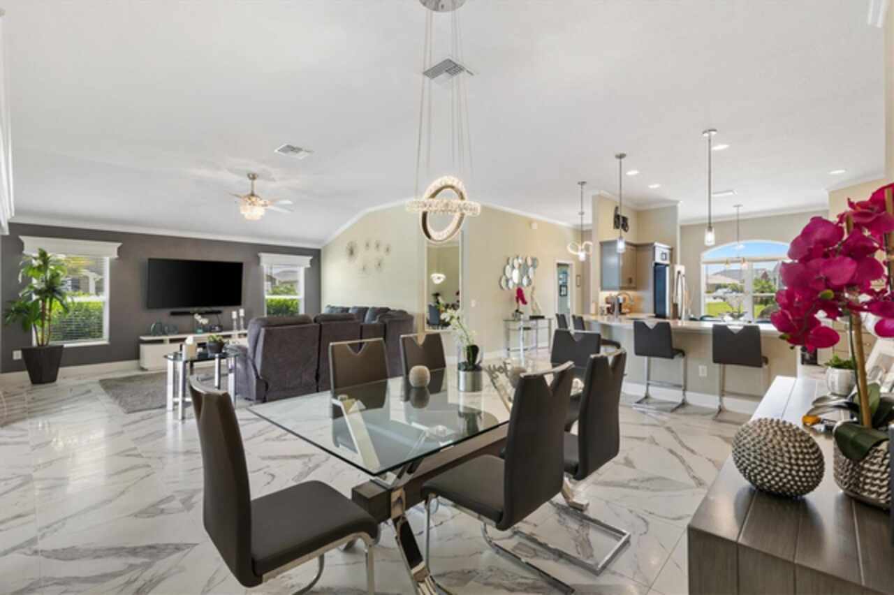 Price Reduction! Welcome to 987 Frederick Terrace, an exquisite Three Bedroom, Two Bathroom, Pool home, built in 2020, with approximately 2060 Square Feet of Living Space, located in the Village of Bradford in The Villages. This beautiful modern Designer Home features a split floor plan, and a spacious and open Living Room/Dining Room, leading to a truly spectacular private Outdoor Oasis. There is an inviting Heated Pool and Spa in this Extended Outdoor Space, with an Enclosed Screened Lanai, surrounded by Lush Tropical Landscaping, making the outdoor living space very private., with relaxing lounge areas, perfect for entertaining family and friends! The Primary Bedroom has a Tray Ceiling, with Two Custom Walk-In Closets, and an En Suite Bathroom with a Tiled Floor, private Toilet Room and a Roman Shower. There is a privacy pocket door leading to the Guest Bedrooms, which share an Upgraded Bathroom with Maple Cabinets, Quartz Counters, Tiled Floor and Tiled Bath/Shower Enclosure. The Kitchen has Custom Stacked Aloe Maple Cabinets, with elegant Quartz Countertops and Tile Backsplash, an Eating Area, Stainless Steel Appliances, and a Pantry Closet. Additional features include Crown Molding, Window Valances, gorgeous Tile Floors, an Indoor Laundry Room, a large Extended Garage and Golf Cart Garage with Epoxy Floors, an attic with pull down stairs, a spacious, beautifully Landscaped Corner Lot on a Quiet Interior Street, Painted Driveway, Low-E Double Pane Windows, Rounded Corner walls, and Smooth Skip Trowel Ceilings. This home is conveniently located near Shopping, Medical Facilities, Village's Entertainment and Restaurants. It is very close to The Bradford Recreation Area, as well as both the Everglades and the Rohan Regional Recreation Centers. There is also the Marsh View Pitch and Putt and the Lowlands Executive Golf Course to practice your golf game!! Come take a look at this wonderful custom home as it will not be on the market for very long!