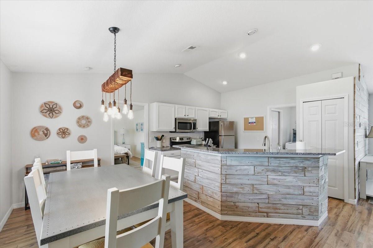 Cathedral Ceiling(s), Eat-in Kitchen, High Ceilings, Kitchen/Family Room Combo, Primary Bedroom Main Floor