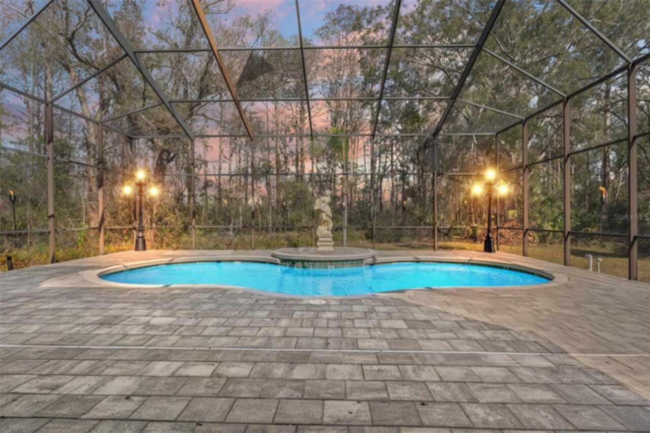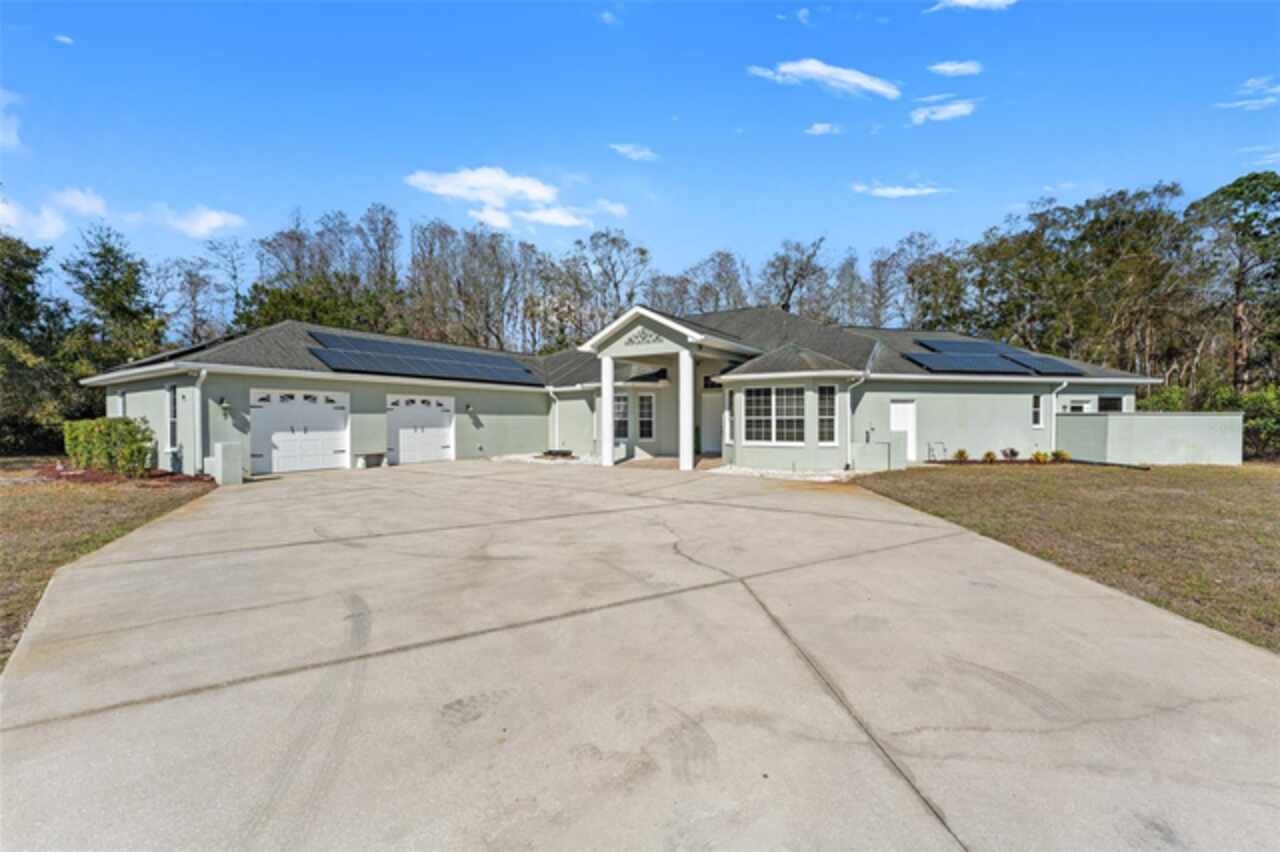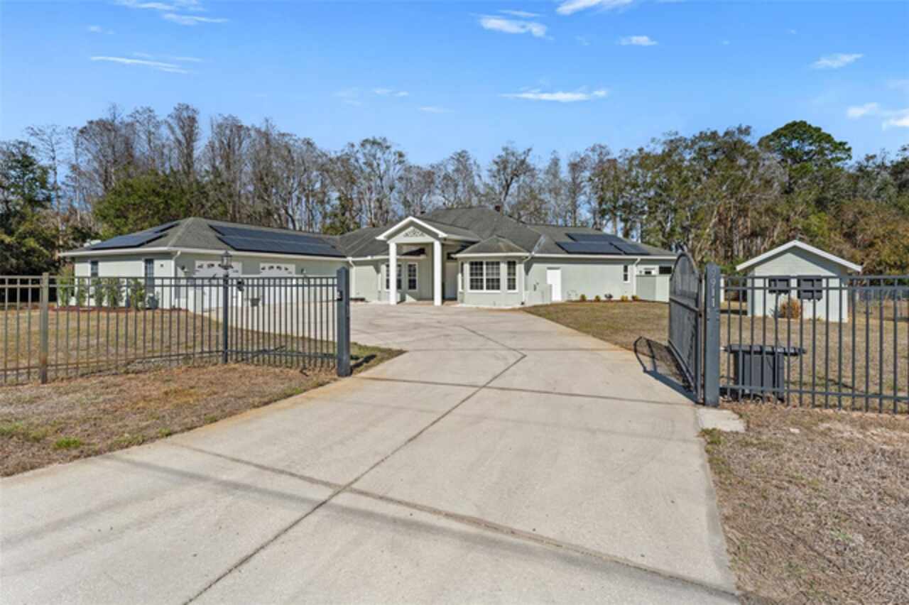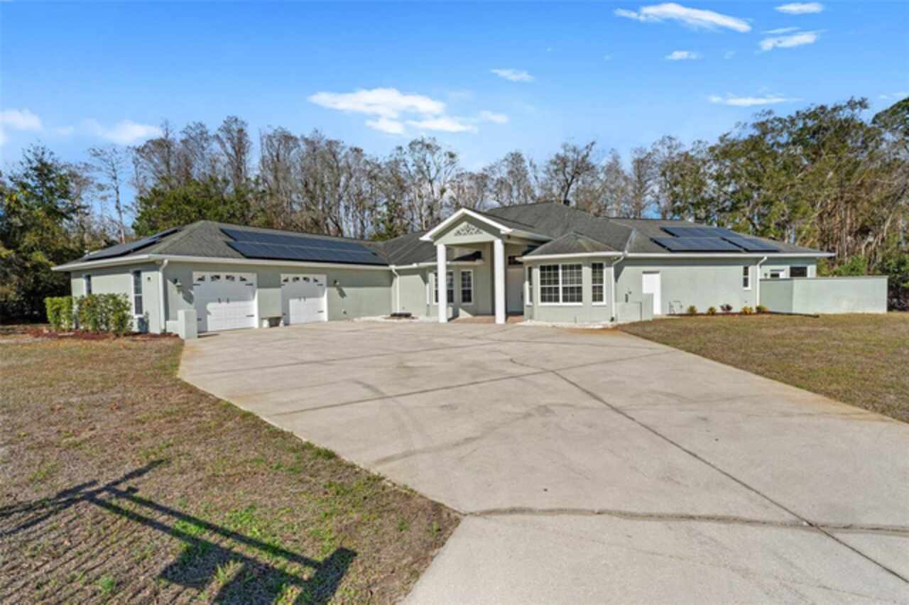Experience unparalleled luxury and serenity in this breathtaking 4, 200 sq. ft. estate, nestled on 2.5 private acres on a dead end street in the heart of New Port Richey. Built in 2005, this meticulously designed 4-bedroom, 3.5-bathroom home is a true masterpiece, blending elegance, functionality, and sustainability with a recently added fully equipped solar panel system for maximum energy efficiency making your monthly electric bill only $150-$200 a month! Both AC units are new from 2023 and the water heater is also NEW! From the moment you step inside, you'll be captivated by the soaring ceilings, exquisite architectural details, and abundant natural light streaming through expansive windows. At the heart of the home, a chef’s dream kitchen awaits, featuring BRAND NEW top-of-the-line stainless steel appliances, an island, custom cabinetry, and countertops with premium space. Thoughtfully designed for both culinary enthusiasts and entertainers alike, this space flows seamlessly into the expansive living and dining areas, creating the perfect ambiance for hosting gatherings both large and small. The grand primary suite is a private sanctuary, offering a spa-like en-suite bath complete with a soaking tub, dual vanities, and a spacious walk-in shower. Generously sized guest bedrooms provide comfort and style, while high-end finishes such as crown molding add to the home’s sophistication. Every inch of this residence has been thoughtfully crafted to maximize both elegance and functionality. Stepping outside, you'll find your own resort-style retreat, where a screened-in, heated in-ground pool with a BRAND NEW pool pump, invites you to unwind in complete tranquility. Whether you're enjoying a quiet morning coffee on the covered lanai or entertaining guests under the stars, this backyard paradise offers endless possibilities. The expansive 2.5-acre lot provides ample space for recreational activities, and with no HOA restrictions, you have the freedom to bring your boats, RVs and more. The home is placed at the end of a dead end street and over looks 2.5 acres of wetland! This exceptional property offers the perfect balance of privacy and convenience, located just minutes from top-rated schools, shopping, dining, and the stunning Gulf Coast beaches. Homes like this—where luxury, comfort, and sustainability come together—are a rare find. The home is on well and septic and offers a BRAND NEW Well pump AND holding tank!