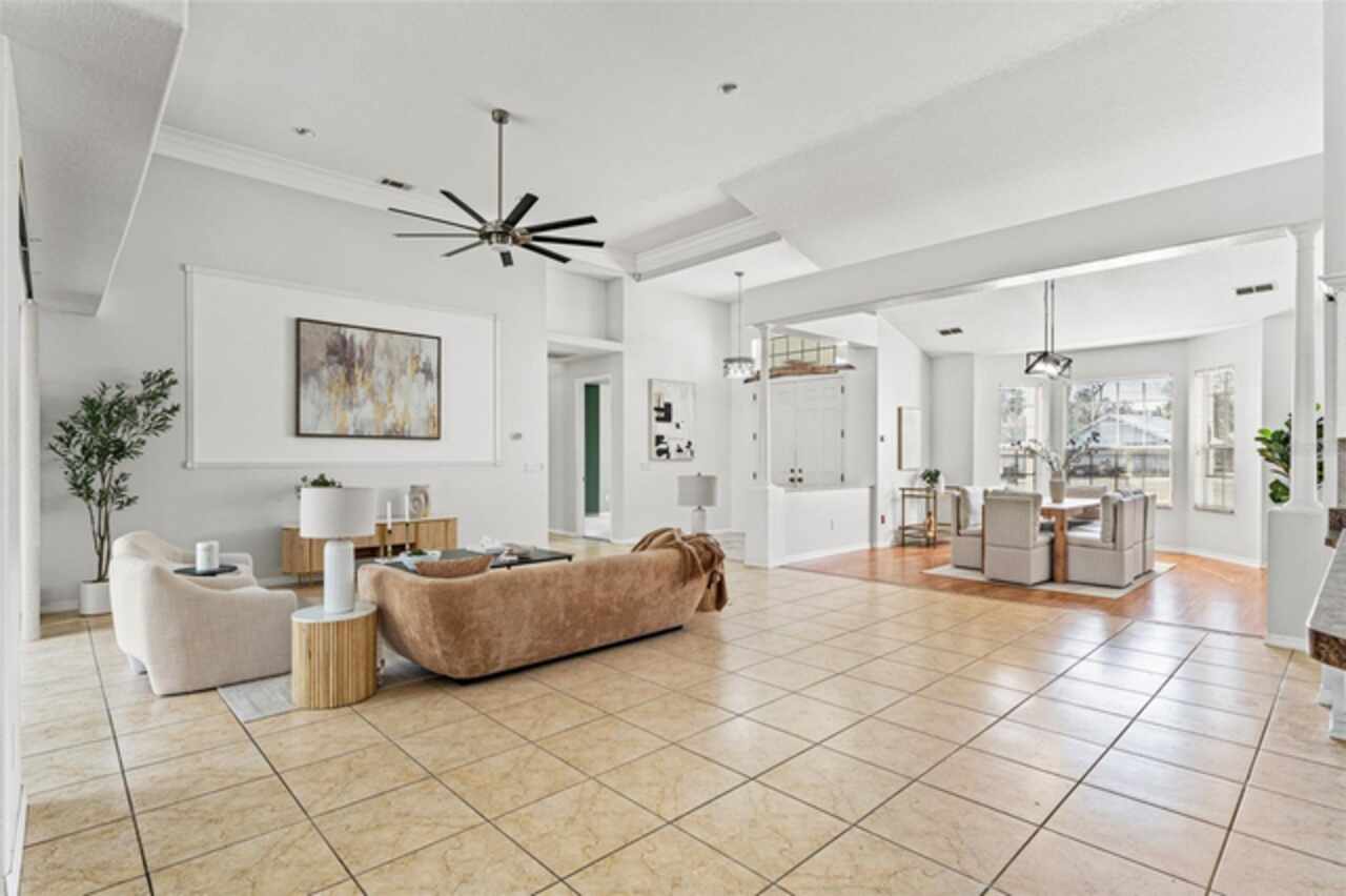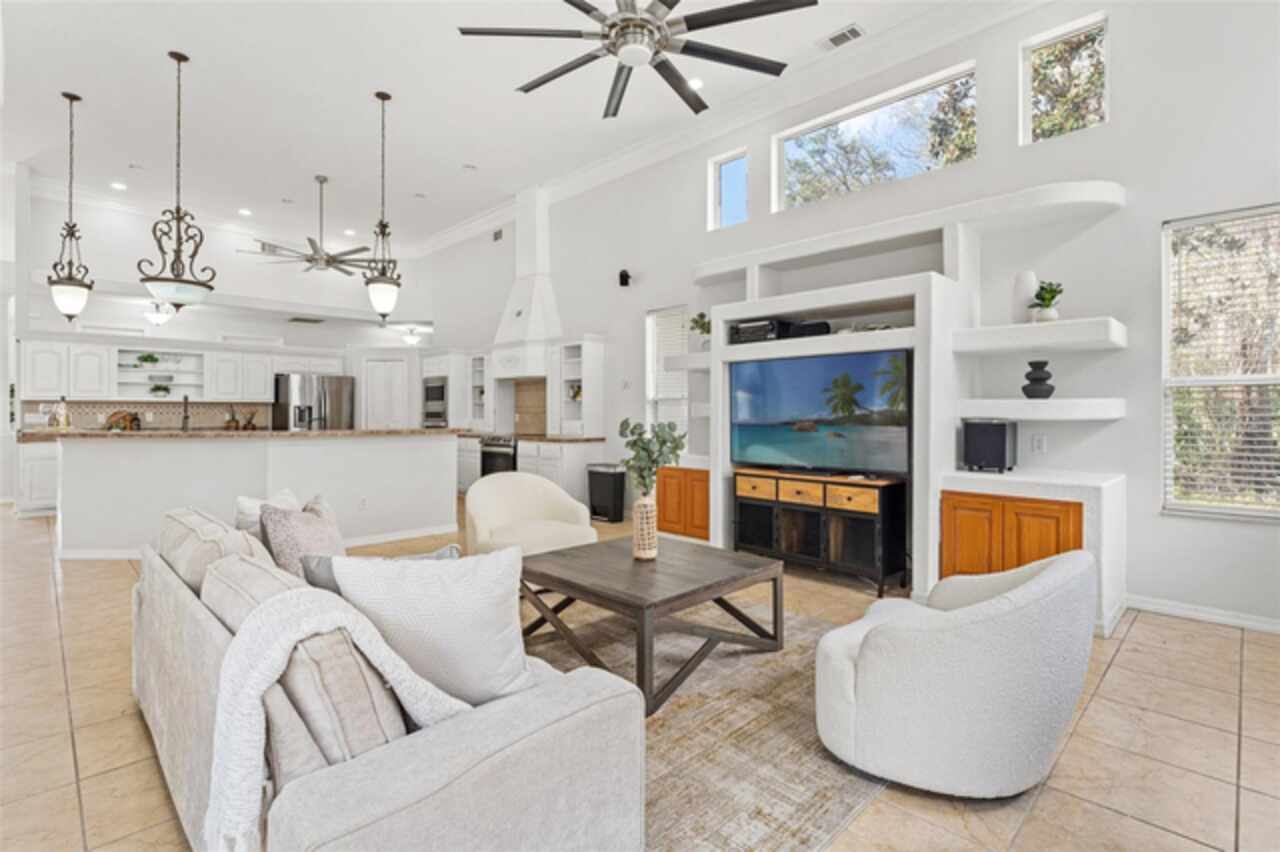 Cathedral Ceiling(s), Ceiling Fans(s), Eat-in Kitchen, High Ceilings, Kitchen/Family Room Combo, Living Room/Dining Room Combo, Open Floorplan, Primary Bedroom Main Floor, Solid Wood Cabinets, Thermostat, Walk-In Closet(s)