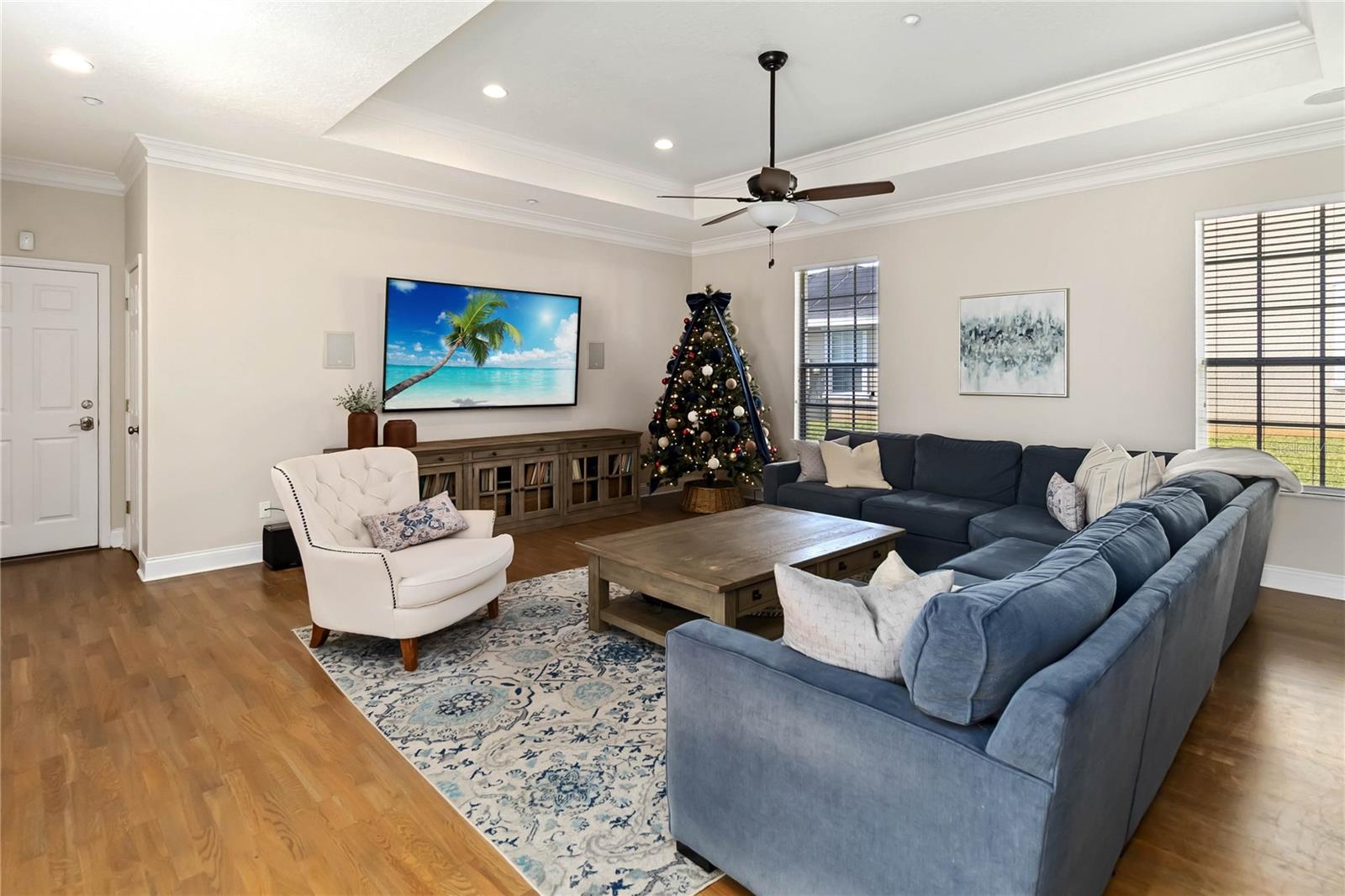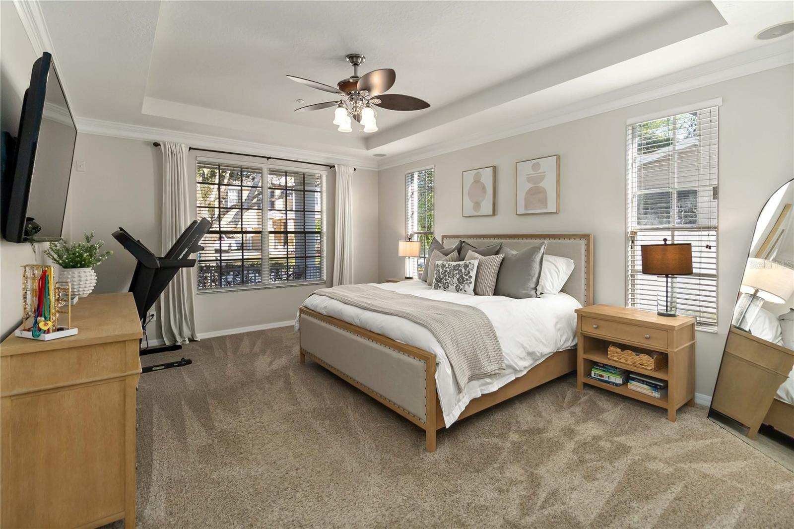 Colonial charm meets modern luxury in this bright & classic, Florida home. Located in picturesque North Lake Park at Lake Nona, this home sits steps away from a tree-lined park, which you can enjoy from the front porch. The home itself sits on a large, tree-shaded lot, with a fenced-in heated pool. Its well-appointed 3, 048 square feet includes a study office, bonus room, generous bedrooms, a fist floor master suite and a large entertainer’s kitchen. The home is as comfortable as it is elegant, with spacious, light-filled rooms, superior craftsman finishings, rich architectural features, tray ceilings, and supple wood floors. The kitchen has been remodeled with central prep island, butler’s pantry. Custom private pool deck with oversized covered lanai and its heated pool with unique shallow wading area. This beautiful home was just painted on the exterior and has surround sound thru out the house. Northlake Park is an exclusive community, spanning 500 acres and home to an award-winning school and YMCA (with membership included in your HOA), an Olympic size pool, athletic courts, and a charming dog park. You’ll be close to the crystal waters of Lake Nona, pristine parks, green spaces, and miles of walking trails. Call today for a tour!