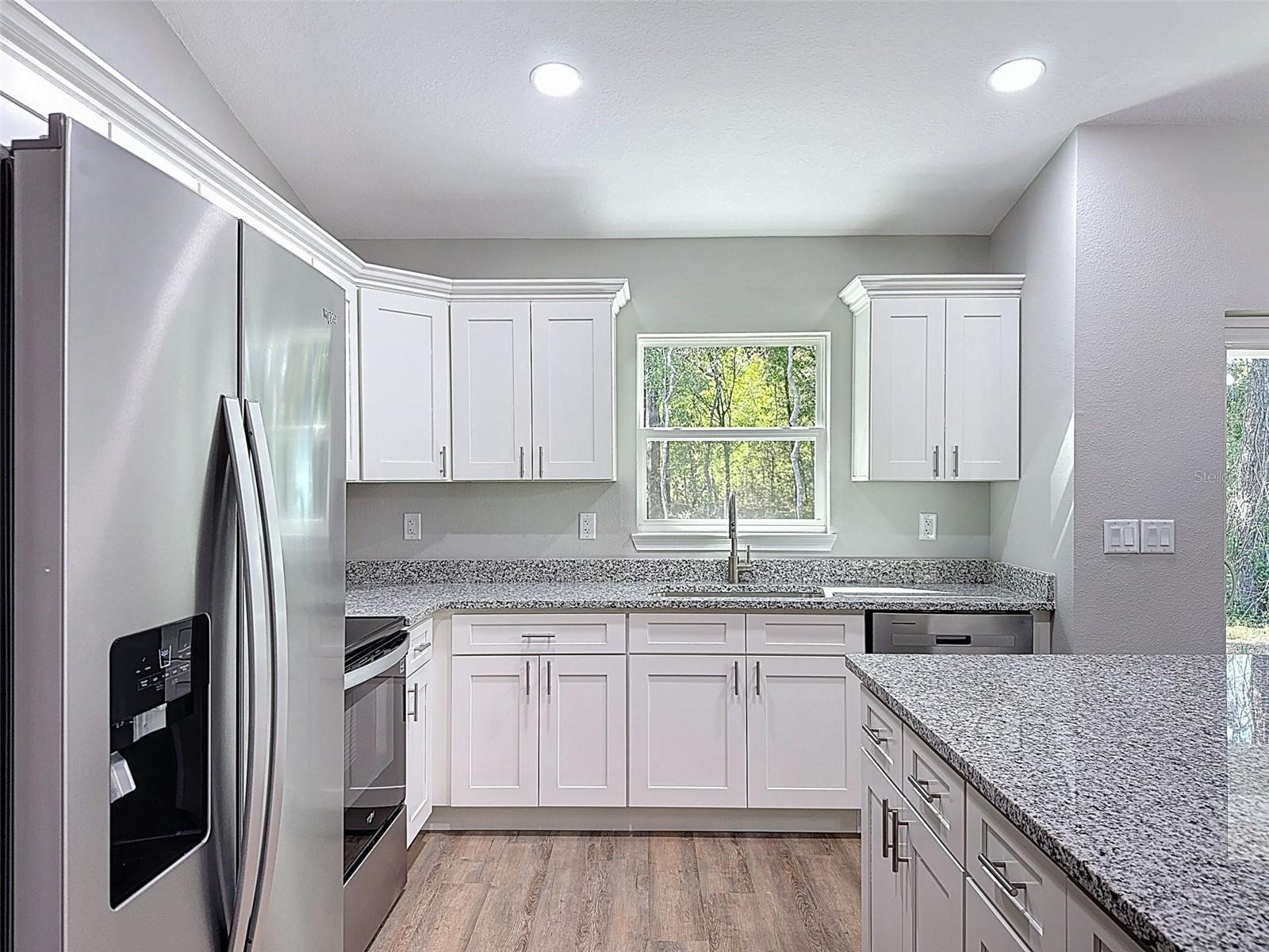 Welcome to your brand-new home in Citrus Springs, where quality craftsmanship meets everyday comfort. This thoughtfully designed 3-bedroom, 2-bath residence is newly completed and built with care by Empire Construction. From top to bottom, it offers stylish upgrades, energy efficiency, and a layout that suits today’s lifestyle. As you enter, you’re greeted by tall ceilings and an open floor plan that makes the most of every square foot. The main living area connects effortlessly to the kitchen and dining space, creating a perfect setup for gathering with friends or enjoying quiet evenings at home. The kitchen is beautifully finished with granite counters, soft-close cabinets, and sleek hardware, all brought together by durable luxury vinyl flooring that runs throughout the home. Natural light pours in through energy-efficient windows and a wide sliding glass door, which leads to a covered patio in the backyard. It’s the ideal spot to relax, grill out, or enjoy Florida’s sunshine in peace. The owner’s suite is set apart from the guest rooms for privacy and includes elegant ceiling details, dual sinks, and a tiled walk-in shower. Behind the scenes, this home is just as impressive. Upgraded insulation in both walls and ceiling helps keep utility bills low. Underground electrical service adds to the clean look of the property, and a meter/main combo provides added convenience for future expansion. Depending on lot configuration, some homes may include a septic system upgrade as well. A spacious two-car garage with a side access door offers additional storage and functionality. This home is perfectly positioned within a short drive to local rivers, springs, and parks, not to mention shopping, dining, and new retail centers nearby. It’s the kind of place that gives you room to breathe without being far from the essentials. If you’re looking for something new, well built, and ready to go, this one deserves your attention. Builder incentives and closing cost assistance may be available, reach out for details and come see the difference for yourself. Homes like this don’t stay on the market long.