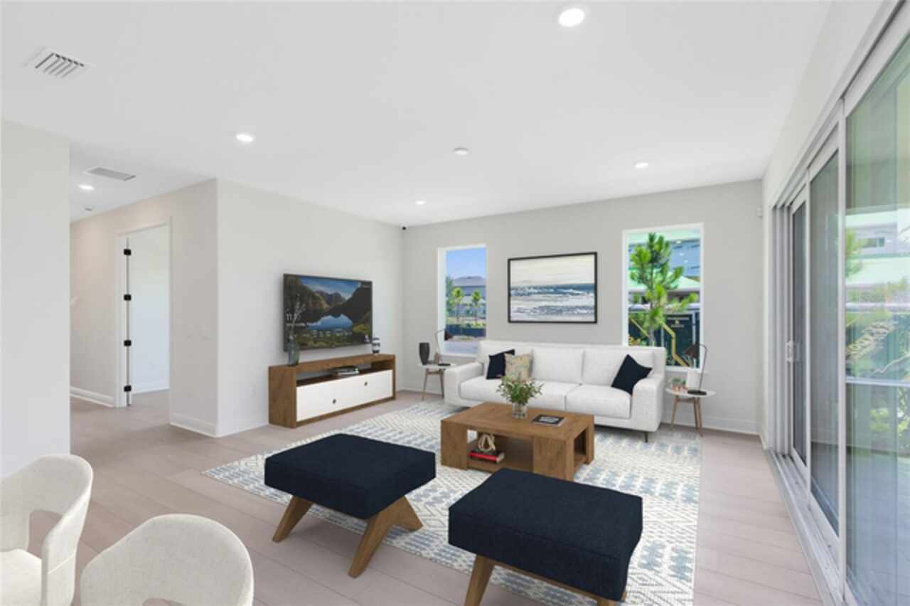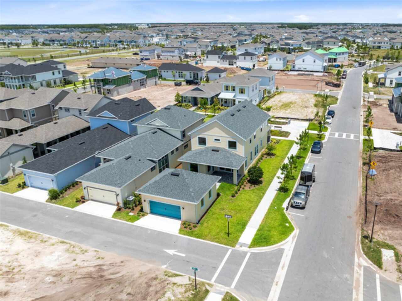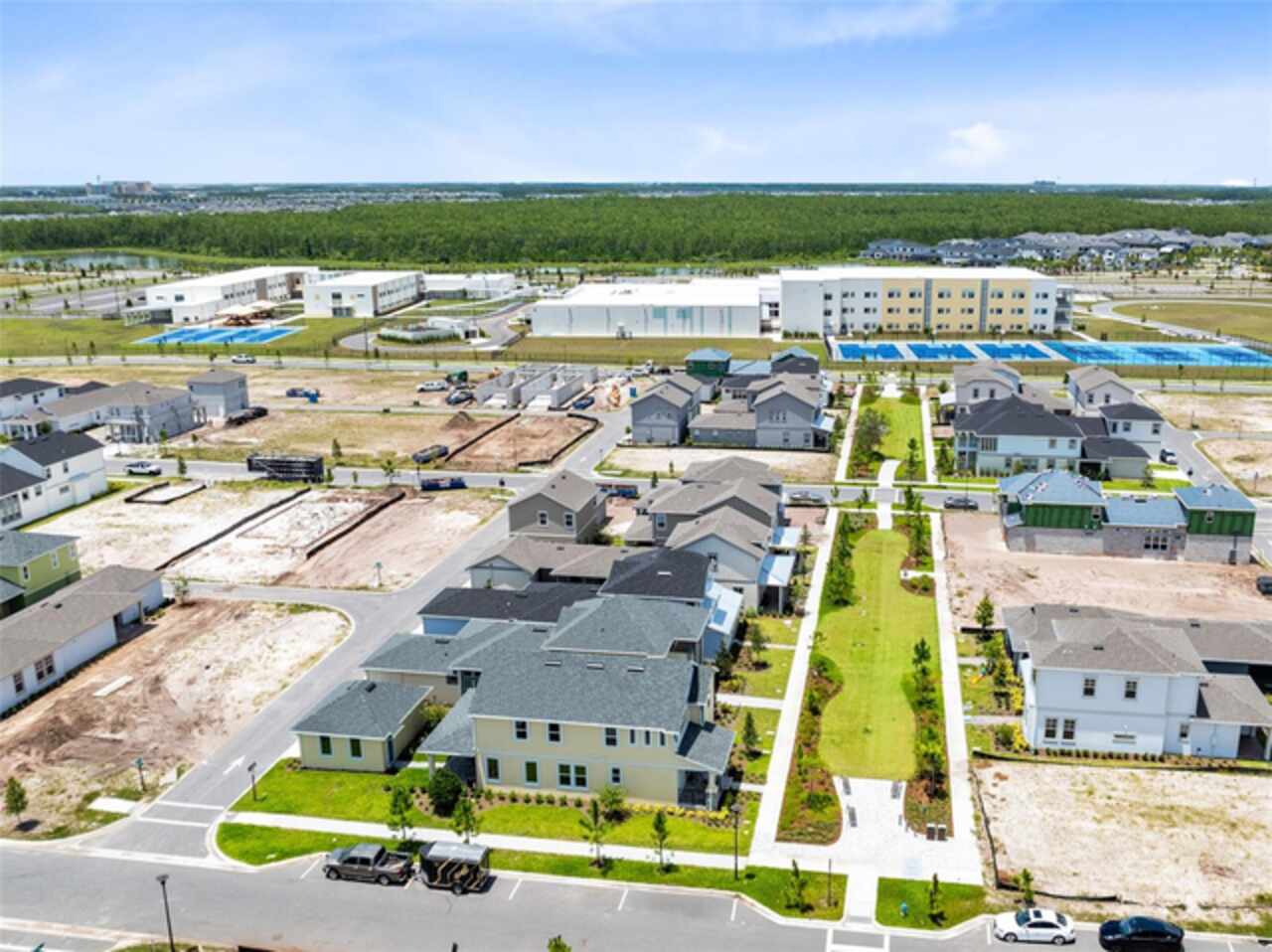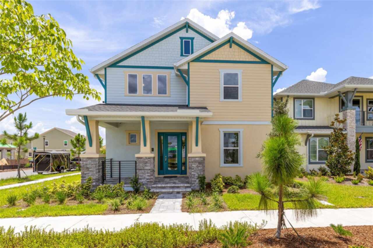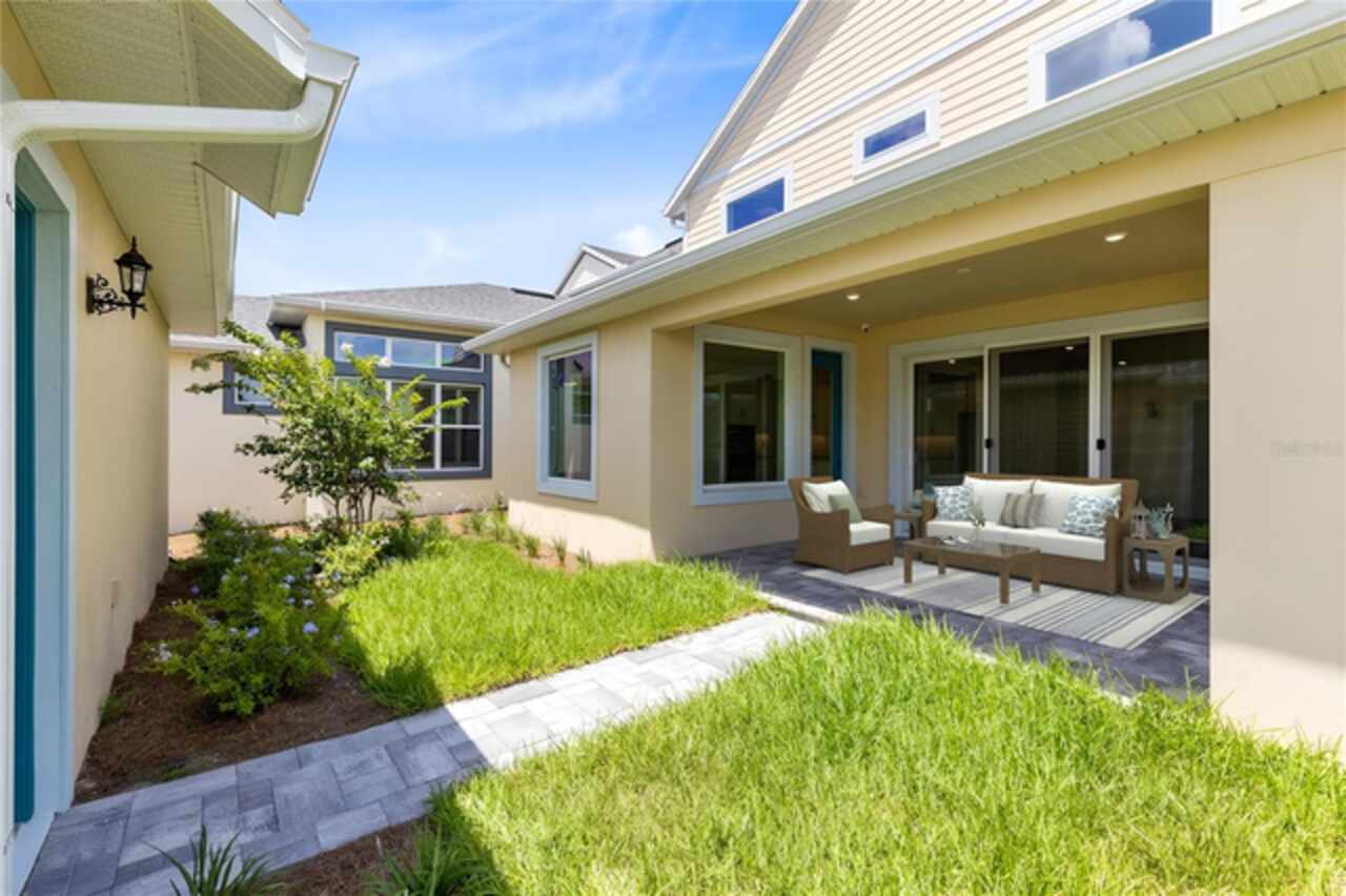 One or more photo(s) has been virtually staged. This custom brand new, never-lived-in Laureate Park home sits on a prime corner lot facing a landscaped mew and walking path. Built in 2025, it features coastal-style curb appeal with stone columns, a covered front porch, and bold teal double doors that make a statement from the start. Inside, you’re welcomed by light luxury vinyl floors, oversized windows, and an open-concept layout filled with natural light. The kitchen is equipped with stone countertops, under-cabinet lighting, built-in stainless steel appliances, a sleek vent hood, and a walk-in pantry. It opens to spacious dining and living areas, perfect for entertaining. The main floor also includes two guest bedrooms with a Jack & Jill bath, a private office with French doors, and a laundry room. Upstairs, a generous loft provides extra space for a second living area, media room, or playroom. The primary suite offers peaceful views and includes one walk-in closet and a spa-like bath with dual sinks and a glass-enclosed shower. Two additional bedrooms and a full bath complete the second floor. The covered rear patio leads to a detached 2.5-car garage with extra storage space, a paver walkway, and low-maintenance landscaping. Laureate Park isn’t just a neighborhood—it’s a vibrant lifestyle. Enjoy the Aquatic Center, resort-style pools, LP Fit gym, and 44+ miles of trails. Located in prime Lake Nona, minutes from Medical City, the VA hospital, Nemours, dining, and shopping. Close to major highways, Orlando International Airport, and the USTA National Campus. Easy access to Orlando’s top theme parks and beautiful Florida beaches. This home blends space, luxury, and community in a sought-after location. Experience elevated living—schedule your private tour today!