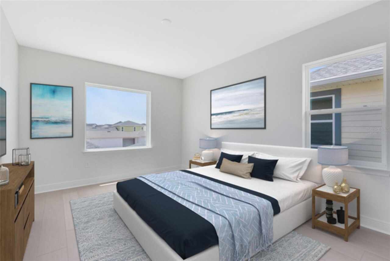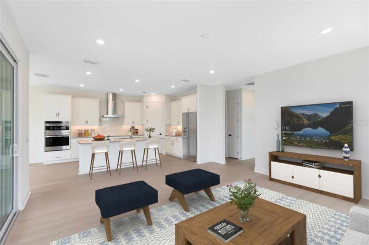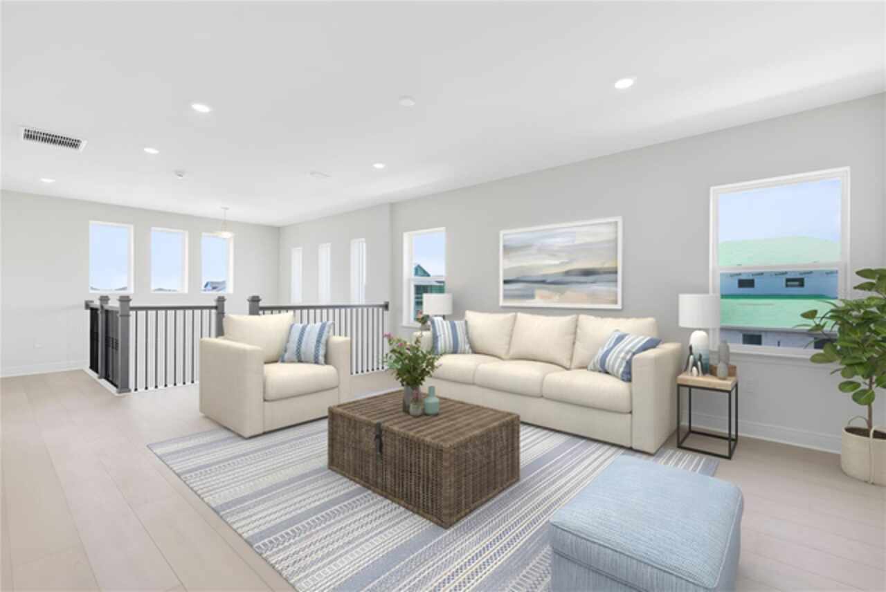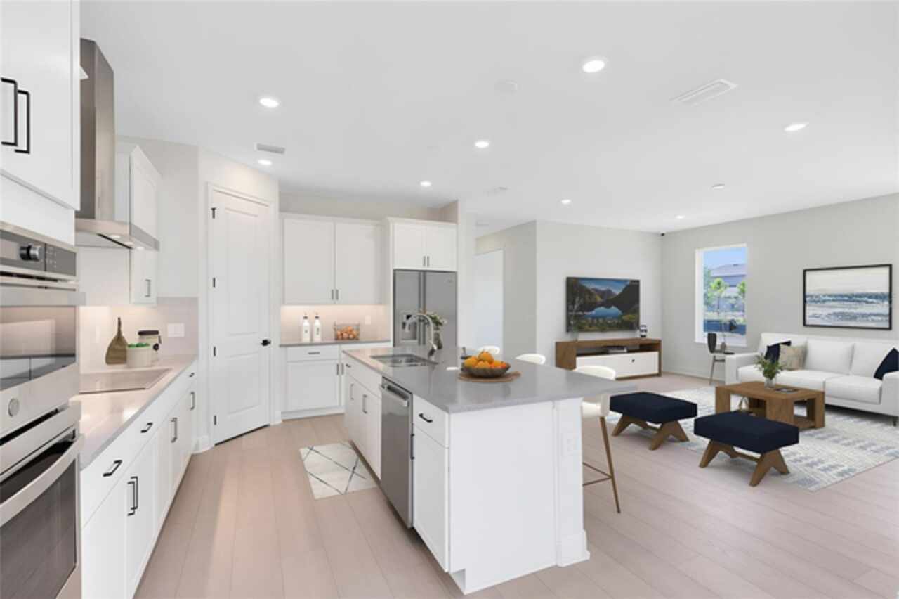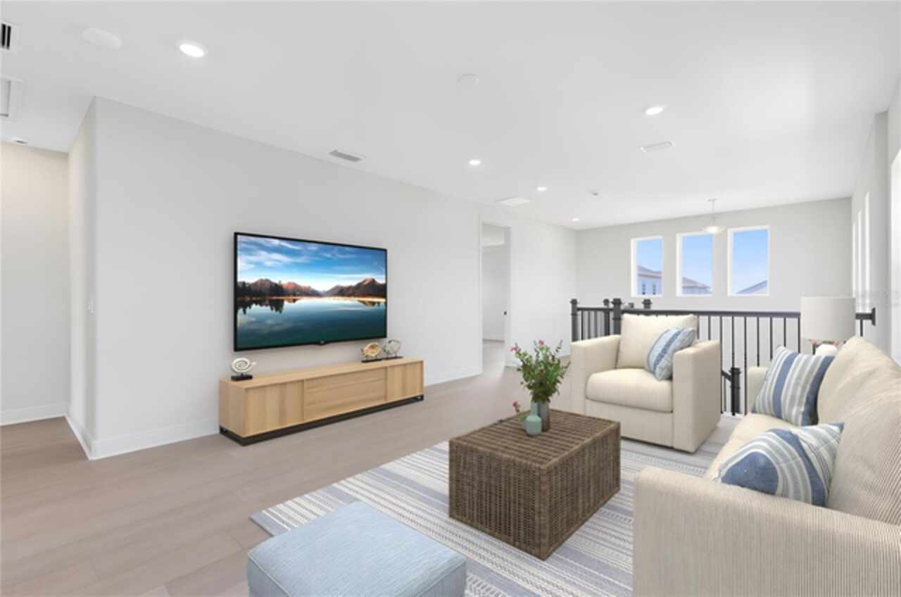 One or more photo(s) has been virtually staged. This custom brand new, never-lived-in Laureate Park home sits on a prime corner lot facing a landscaped mew and walking path. Built in 2025, it features coastal-style curb appeal with stone columns, a covered front porch, and bold teal double doors that make a statement from the start. Inside, you’re welcomed by light luxury vinyl floors, oversized windows, and an open-concept layout filled with natural light. The kitchen is equipped with stone countertops, under-cabinet lighting, built-in stainless steel appliances, a sleek vent hood, and a walk-in pantry. It opens to spacious dining and living areas, perfect for entertaining. The main floor also includes two guest bedrooms with a Jack & Jill bath, a private office with French doors, and a laundry room. Upstairs, a generous loft provides extra space for a second living area, media room, or playroom. The primary suite offers peaceful views and includes one walk-in closet and a spa-like bath with dual sinks and a glass-enclosed shower. Two additional bedrooms and a full bath complete the second floor. The covered rear patio leads to a detached 2.5-car garage with extra storage space, a paver walkway, and low-maintenance landscaping. Laureate Park isn’t just a neighborhood—it’s a vibrant lifestyle. Enjoy the Aquatic Center, resort-style pools, LP Fit gym, and 44+ miles of trails. Located in prime Lake Nona, minutes from Medical City, the VA hospital, Nemours, dining, and shopping. Close to major highways, Orlando International Airport, and the USTA National Campus. Easy access to Orlando’s top theme parks and beautiful Florida beaches. This home blends space, luxury, and community in a sought-after location. Experience elevated living—schedule your private tour today!