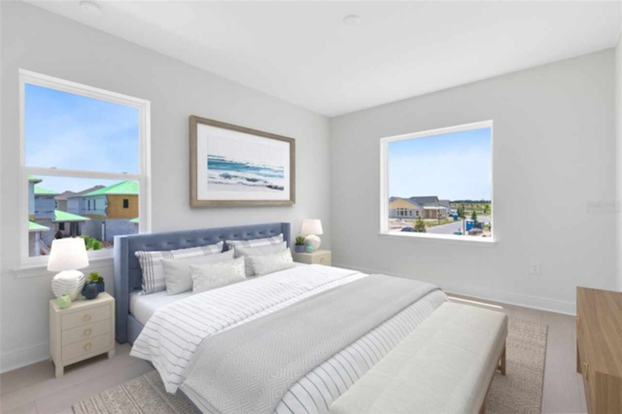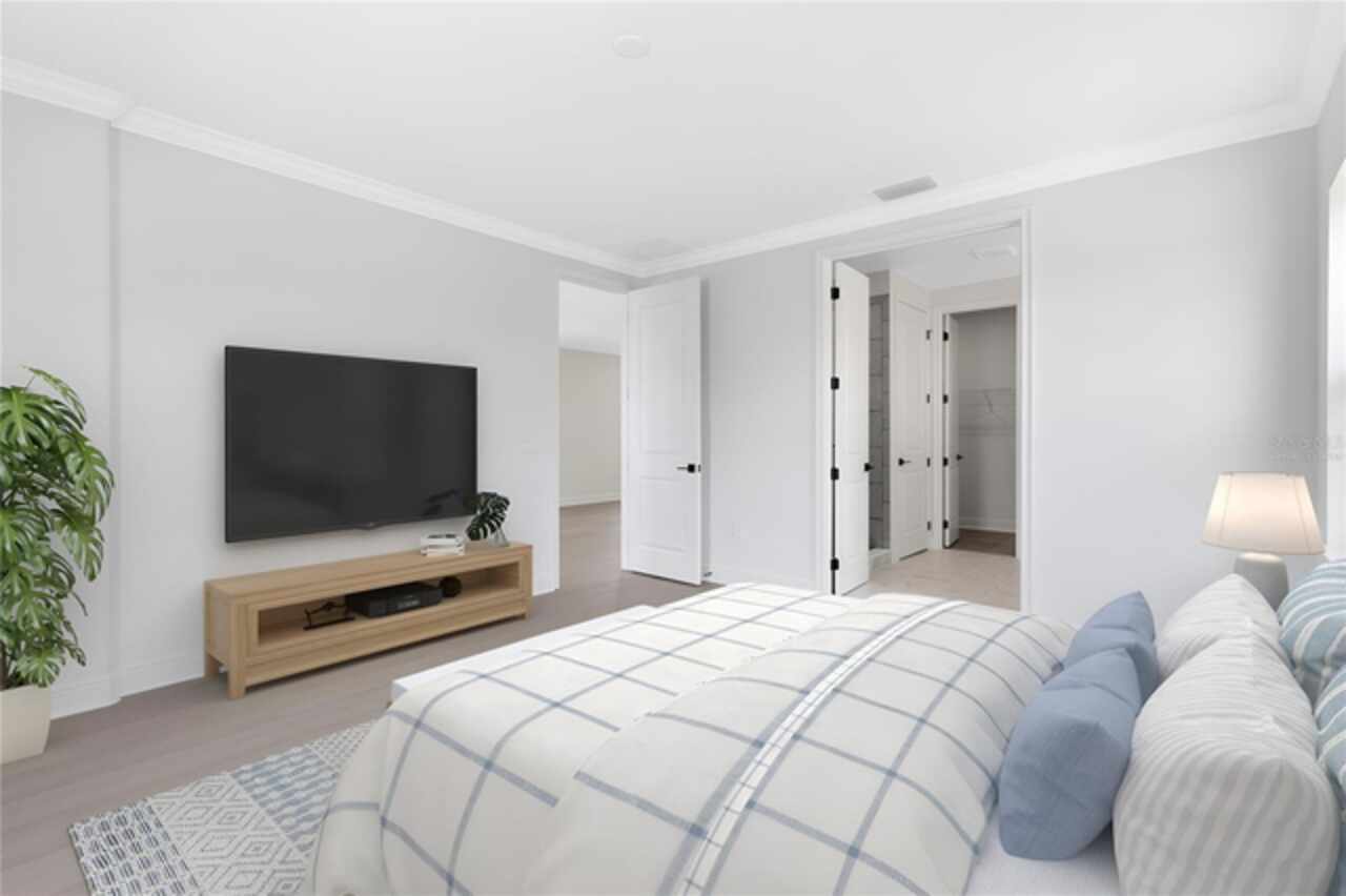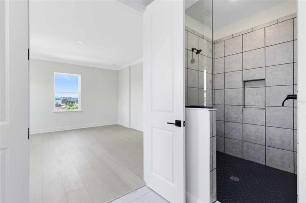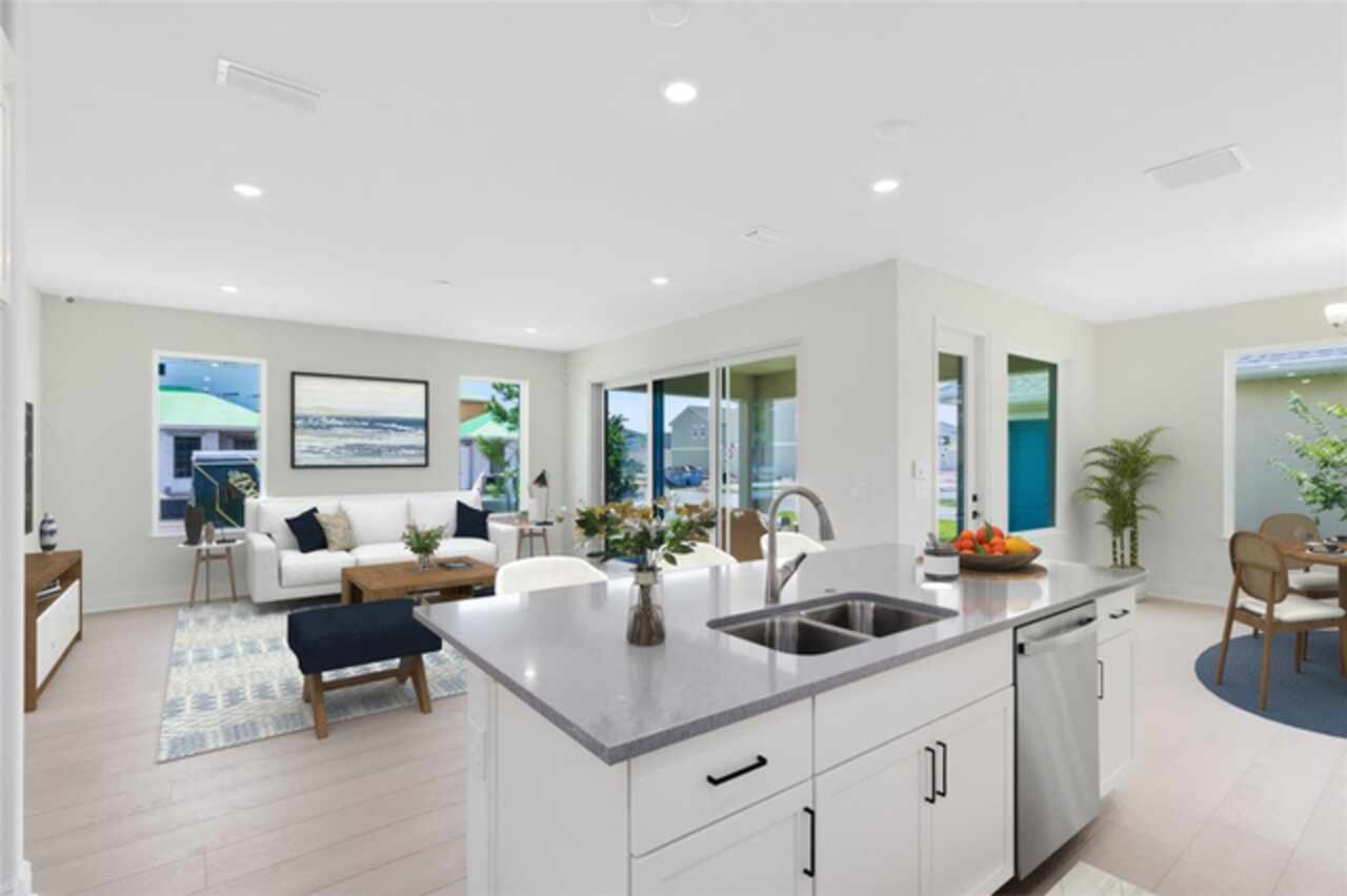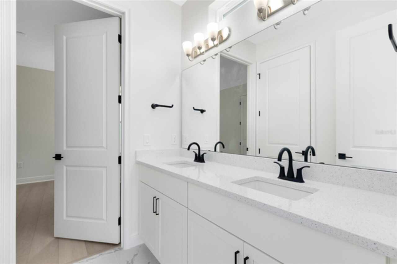 One or more photo(s) has been virtually staged. This custom brand new, never-lived-in Laureate Park home sits on a prime corner lot facing a landscaped mew and walking path. Built in 2025, it features coastal-style curb appeal with stone columns, a covered front porch, and bold teal double doors that make a statement from the start. Inside, you’re welcomed by light luxury vinyl floors, oversized windows, and an open-concept layout filled with natural light. The kitchen is equipped with stone countertops, under-cabinet lighting, built-in stainless steel appliances, a sleek vent hood, and a walk-in pantry. It opens to spacious dining and living areas, perfect for entertaining. The main floor also includes two guest bedrooms with a Jack & Jill bath, a private office with French doors, and a laundry room. Upstairs, a generous loft provides extra space for a second living area, media room, or playroom. The primary suite offers peaceful views and includes one walk-in closet and a spa-like bath with dual sinks and a glass-enclosed shower. Two additional bedrooms and a full bath complete the second floor. The covered rear patio leads to a detached 2.5-car garage with extra storage space, a paver walkway, and low-maintenance landscaping. Laureate Park isn’t just a neighborhood—it’s a vibrant lifestyle. Enjoy the Aquatic Center, resort-style pools, LP Fit gym, and 44+ miles of trails. Located in prime Lake Nona, minutes from Medical City, the VA hospital, Nemours, dining, and shopping. Close to major highways, Orlando International Airport, and the USTA National Campus. Easy access to Orlando’s top theme parks and beautiful Florida beaches. This home blends space, luxury, and community in a sought-after location. Experience elevated living—schedule your private tour today!