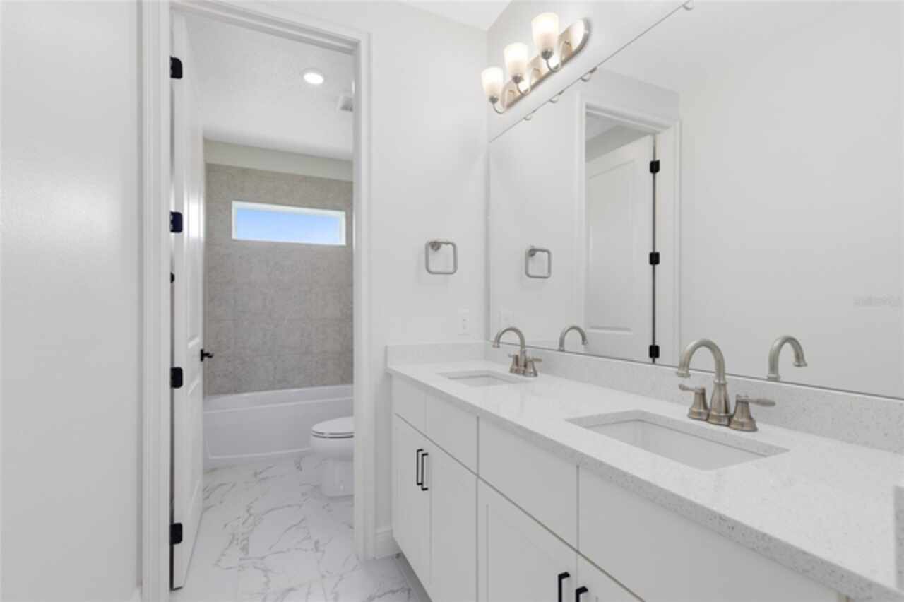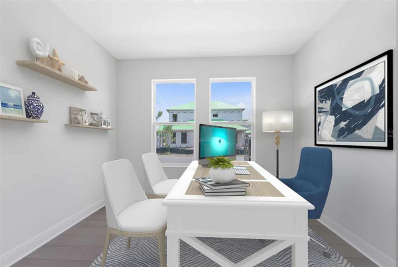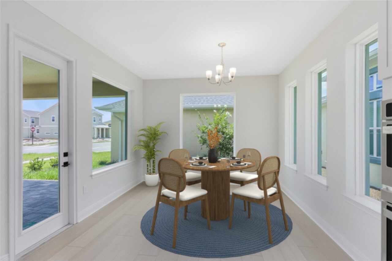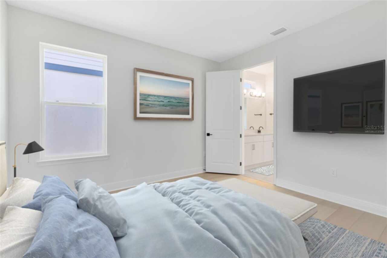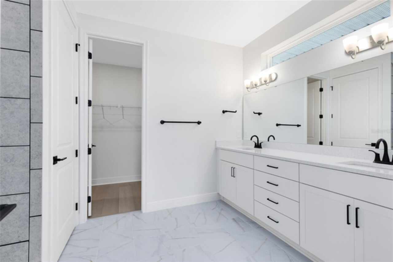 One or more photo(s) has been virtually staged. This custom brand new, never-lived-in Laureate Park home sits on a prime corner lot facing a landscaped mew and walking path. Built in 2025, it features coastal-style curb appeal with stone columns, a covered front porch, and bold teal double doors that make a statement from the start. Inside, you’re welcomed by light luxury vinyl floors, oversized windows, and an open-concept layout filled with natural light. The kitchen is equipped with stone countertops, under-cabinet lighting, built-in stainless steel appliances, a sleek vent hood, and a walk-in pantry. It opens to spacious dining and living areas, perfect for entertaining. The main floor also includes two guest bedrooms with a Jack & Jill bath, a private office with French doors, and a laundry room. Upstairs, a generous loft provides extra space for a second living area, media room, or playroom. The primary suite offers peaceful views and includes one walk-in closet and a spa-like bath with dual sinks and a glass-enclosed shower. Two additional bedrooms and a full bath complete the second floor. The covered rear patio leads to a detached 2.5-car garage with extra storage space, a paver walkway, and low-maintenance landscaping. Laureate Park isn’t just a neighborhood—it’s a vibrant lifestyle. Enjoy the Aquatic Center, resort-style pools, LP Fit gym, and 44+ miles of trails. Located in prime Lake Nona, minutes from Medical City, the VA hospital, Nemours, dining, and shopping. Close to major highways, Orlando International Airport, and the USTA National Campus. Easy access to Orlando’s top theme parks and beautiful Florida beaches. This home blends space, luxury, and community in a sought-after location. Experience elevated living—schedule your private tour today!