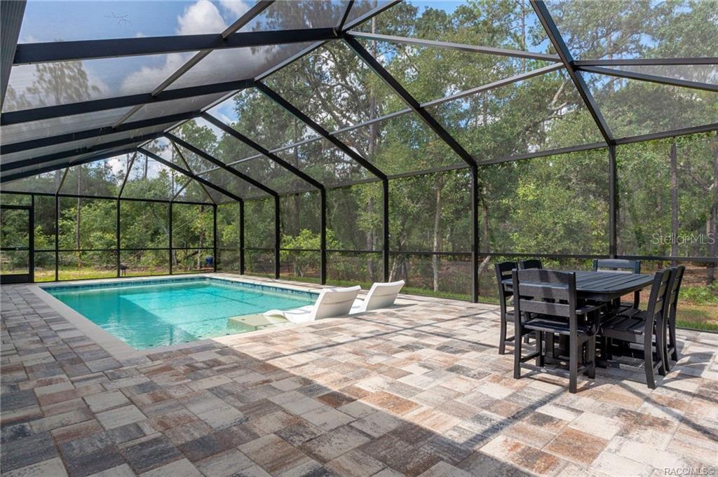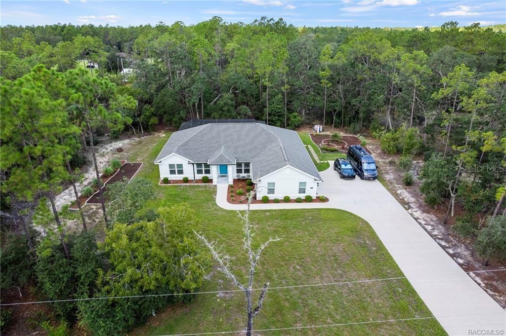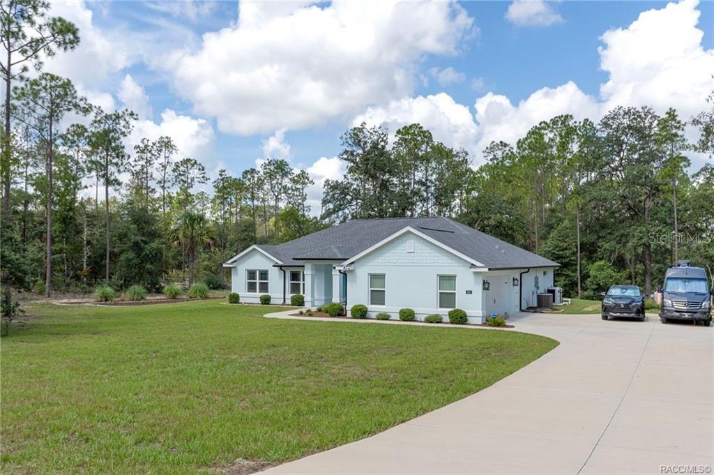 *Back on the market due to previous buyer’s home sale contingency not being met.* Built in 2023 by Triple Crown Construction, this stunning custom home blends modern elegance with thoughtful design and an incredible outdoor lifestyle. Featuring 3 spacious bedrooms, 2 bathrooms, and a versatile bonus room perfect for an office or home gym, this property has it all. The split floor plan showcases soaring cathedral ceilings and oversized bedrooms, creating a bright, airy feel throughout. The kitchen is a true chef’s delight, offering abundant cabinetry, smart appliances, and generous counter space, with large windows framing views of the pool and private backyard. A dedicated indoor laundry room and storage-rich garage—complete with a smart garage door and a 30-amp RV hookup outlet—add everyday convenience. Even the thermostat is smart-enabled, allowing you to control your home with ease. Step outside to your personal paradise—a heated saltwater pool with sun deck, a wide covered patio with pavers throughout, and plenty of room for entertaining family and friends. The property spans just over an acre with no restrictions, giving you room for your boat, RV, toys, or even the dream workshop you’ve always wanted. Surrounded by woods, fruit trees, native plants, and pollinator-friendly landscaping, it provides a serene sense of privacy and connection to nature. Enjoy the tranquility of country living while being just minutes from grocery stores, medical facilities, parks, and shopping. Best of all, you’re close to the world-famous Rainbow River, a crystal-clear spring-fed river known for kayaking, tubing, snorkeling, and its breathtaking natural beauty. In addition, Rainbow Lakes Estates community offers a variety of free recreational amenities, including a fitness center, sports courts (tennis, pickleball, basketball, handball), softball and baseball fields, and access to three community lakes with a boat ramp, fishing pier, and areas for swimming and canoeing. Residents can also enjoy a clubhouse, youth center with pool table and computer games, playgrounds, picnic areas, and scenic nature trails. This property is more than a home—it’s a lifestyle retreat, perfect as a primary residence, a second home getaway, or an investment opportunity.