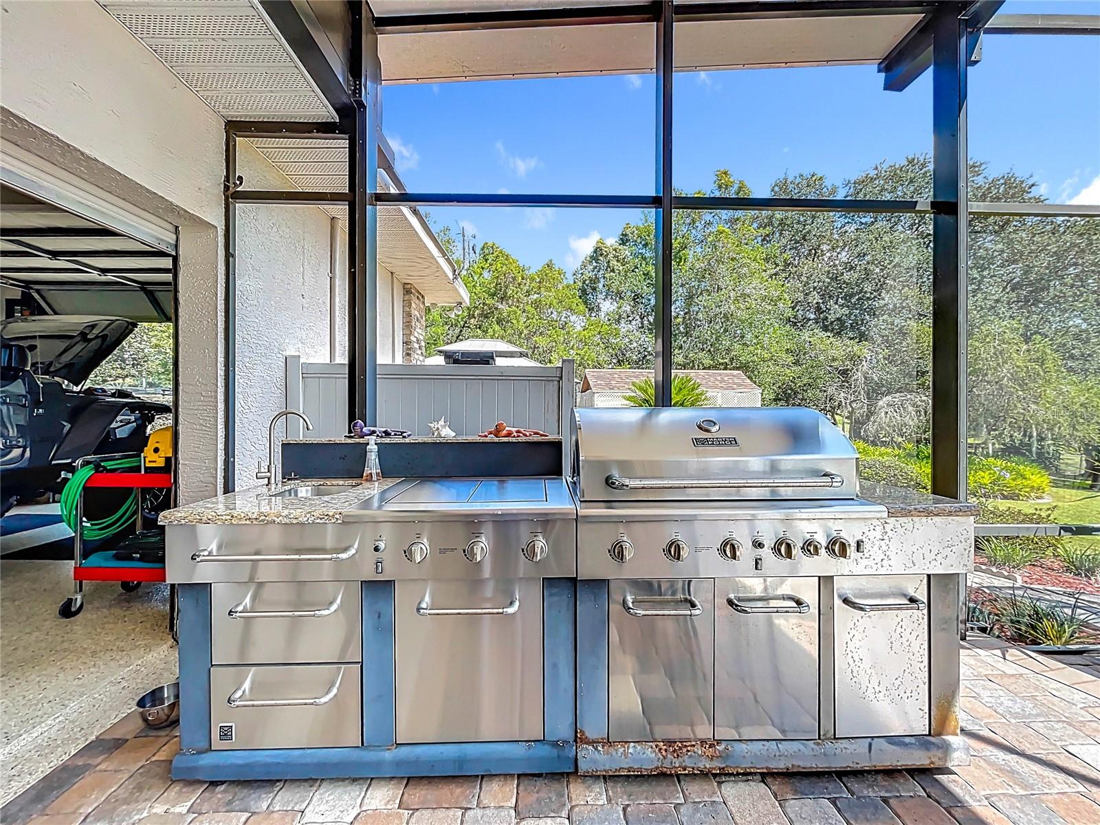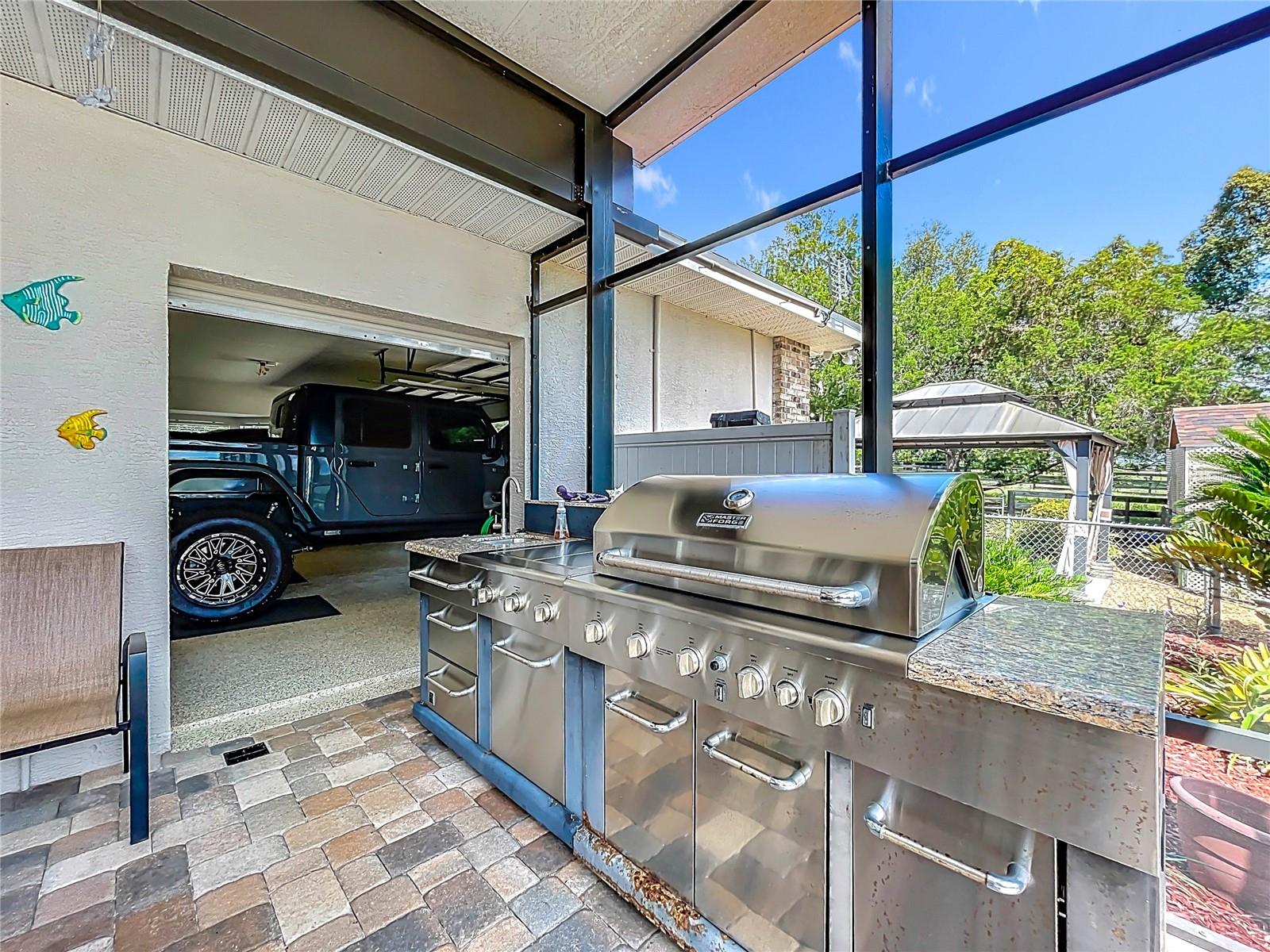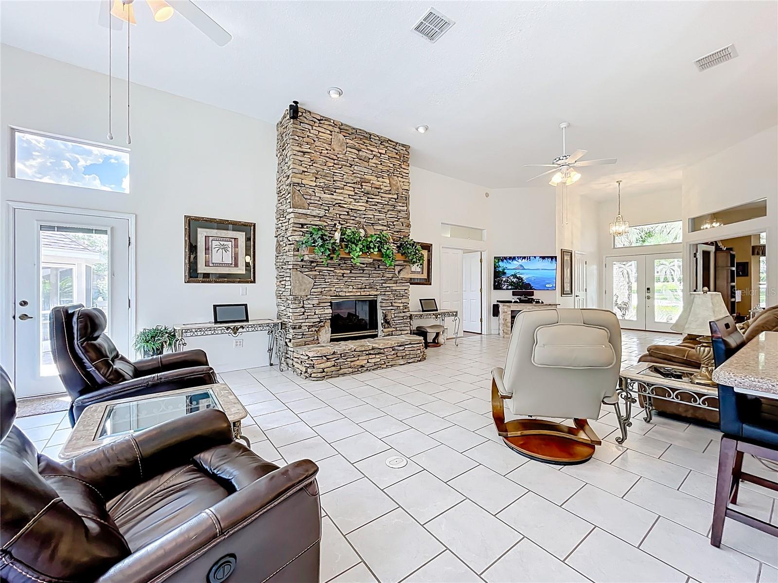 This stunning **custom-built lakefront estate** presents a rare opportunity to embrace resort-style living on 2.41 acres of fully fenced land with equestrian zoning. Thoughtful upgrades and distinctive amenities elevate every corner of this 3-bedroom, 2-bathroom home. The open floor plan is anchored by an expansive wall of windows that floods the living area with natural light while offering breathtaking views of Bay Lake, an excellent lake for fishing, along with a private dock and a custom saltwater pool and spa. A gourmet kitchen invites culinary exploration with stainless steel appliances, upgraded silestone countertops, and skylight accents, while the Great Room draws attention with its etched glass entry and a commanding stone fireplace. The Owner's Suite is a sanctuary, complete with a cozy sitting area, private gazebo access, gas fireplace, and a luxurious two-person jetted tub with ambient lighting and waterfall features. The third bedroom, enhanced with French doors and a window seat, offers versatility for use as a home office or guest room. Storage and garage space abound, including a 30'x17' RV garage, screened three-car garage, and ample cabinetry in the laundry area. Outdoor living is at its finest with mature trees, manicured landscaping, a paver pool deck, and a gated circular drive entrance that frames the residence like a private park. Additional features such as a whole-house generator, central vacuum, top-tier water purification system, smart home enhancements, hurricane shutters, and lake-fed irrigation reflect the owners' attention to quality, convenience, and security. Centrally located close to major cities, like Orlando, Gainesville, just 5 minutes to Mount Dora and not to far to the SOFT sandy beaches too! Although you get the tranquil feeling of country life, all shopping, restaurants, schools and medical facilities are just 5 miles away and Lake Square Mall just a short drive away! Dreams are fulfilled at this this exceptional property, blends tranquility with modern refinement. You'll fall in love with the serene setting and the extensive list of amenities. It must be seen to be truly appreciated!
