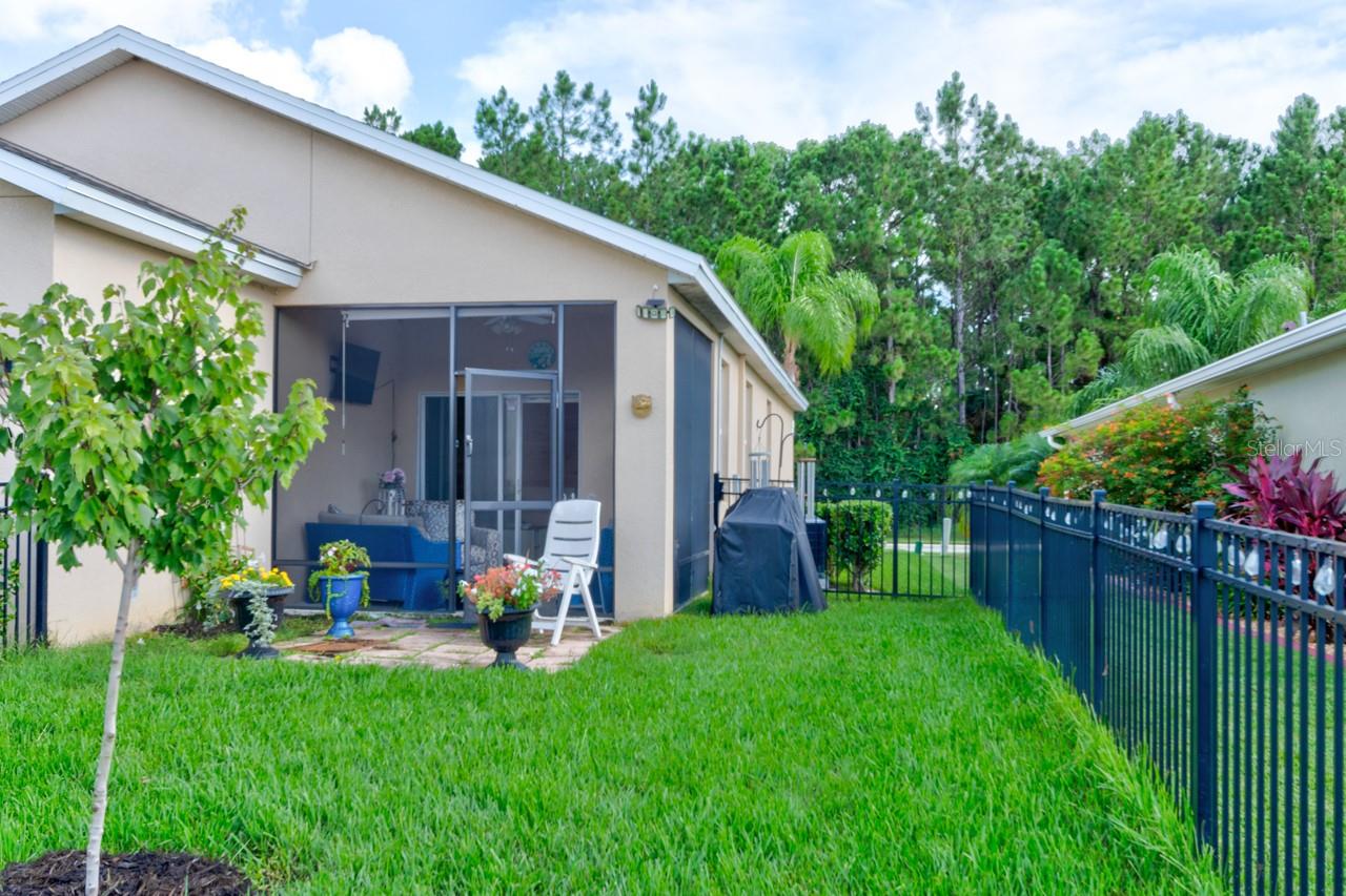 Welcome to this well-maintained 3 bedroom, 2 bathroom home with a 2 car garage in the highly desirable Venetian Bay community of New Smyrna Beach, Florida. This beautiful home features an open floor plan with high ceilings, large windows, and a sliding glass door Enjoy durable vinyl plank flooring throughout the main living areas and cozy carpet in the bedrooms for added comfort. The spacious living / dining area flows seamlessly into a kitchen with raised-panel cabinetry, granite countertops, and stainless steel appliances, perfect for cooking and entertaining. Recent updates include a new HVAC system (2024), fresh interior paint, recessed lighting in the kitchen and hallway, new ceiling fans, a front storm door, and upgraded flooring. The rear-entry 2 car garage enhances curb appeal and includes extra storage racks for convenience. Step outside to a fenced backyard with updated landscaping, a screened-in porch, and a sprinkler system, providing both comfort and privacy. Built with solid concrete block construction, this 1, 476 sq ft home is situated directly across from a peaceful wooded common area, offering a serene setting and beautiful views. Located just minutes from the Venetian Bay Town Center, residents enjoy shopping, dining, a spa, golf course, walking trails, and community events all within the neighborhood. Don't miss your chance to own a move-in ready home in one of New Smyrna Beach's most sought-after communities. Schedule your private showing today and experience Florida coastal living at its finest. All information is believed to be accurate but not guaranteed. Buyer to verify all details.