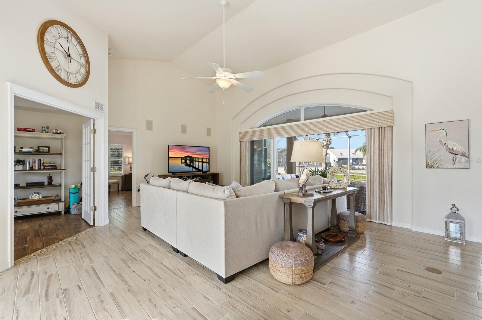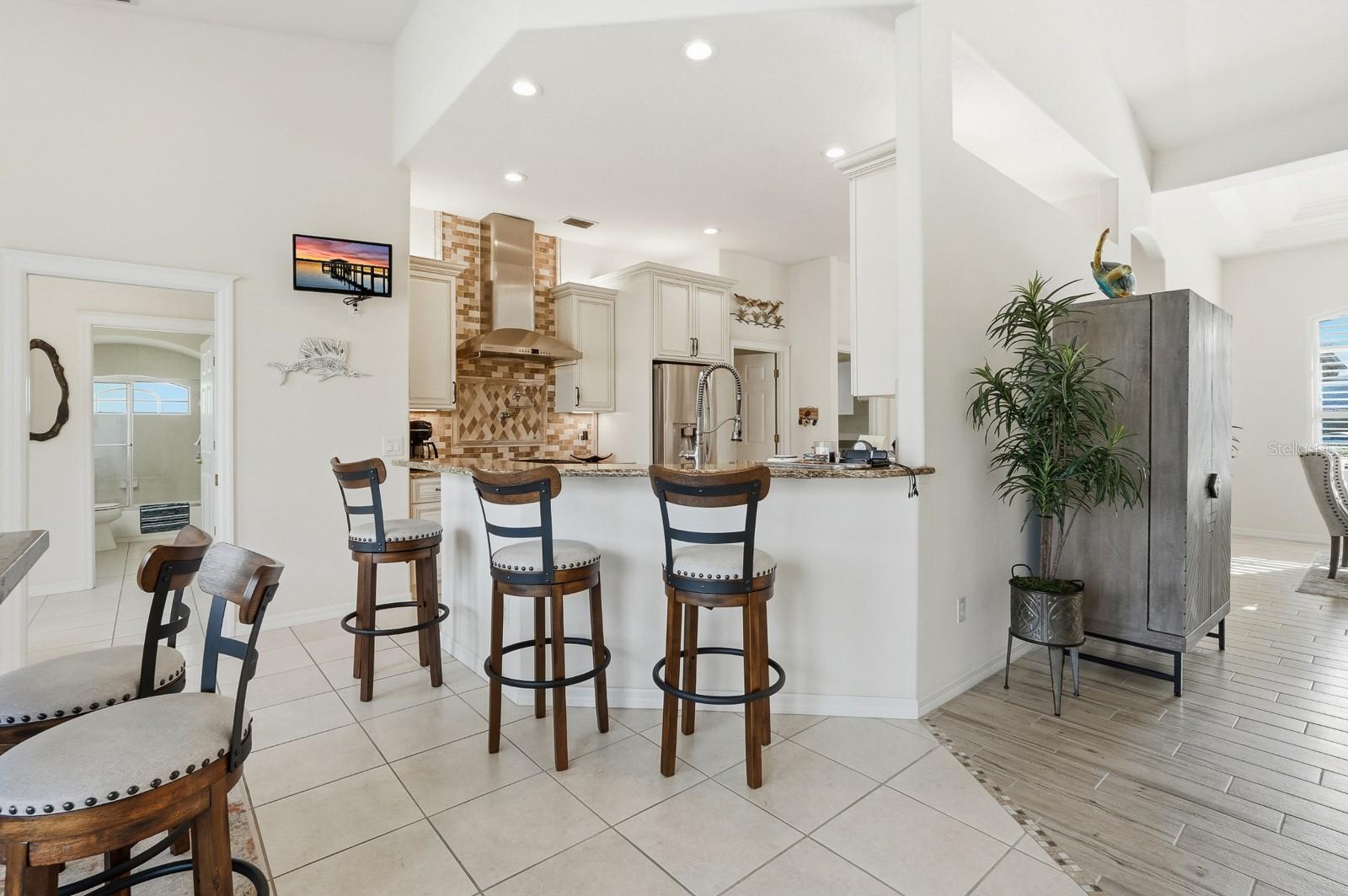 Experience the best of Florida waterfront living in this beautifully remodeled 3BR/2BA saltwater canal home w/office-flex room, ideally situated on a tip lot at the end of a quiet cul-de-sac. Offering 180 ft of water frontage, this Howell-built residence (2001) combines luxury, comfort, and efficiency in a move-in ready package. From the moment you arrive, the beautifully landscaped grounds and inviting entry sets the tone for what’s inside. Step into an open layout highlighted by high coffered ceilings, wood-look tile flooring (no carpet), plantation shutters, and sweeping canal views from the living room, kitchen, and primary suite. The gourmet kitchen will delight any chef, featuring custom soft-close cabinetry, granite counters, WOLF 6- burner gas range w/pot filler, SS “Monogram” hood, LG refrigerator, Sharp drawer microwave, wine storage, and large prep space perfect for entertaining. The primary suite retreat offers serene water views, an updated ensuite bath w/roman-style walk-in shower (rain & handheld heads, bench seat), private water closet, and a spacious walk-in closet w/custom shelving. Enjoy outdoor living at its finest with a private boathouse (7, 500-lb straddle hoist lift), solar heated pool w/spa, and generous patio space ideal for relaxing or hosting guests. Modern smart home features include a Honeywell/Generac whole-house generator, Vector Security System, 2017 Trane A/C, Daikin mini-split in garage, tankless water heater, metered irrigation, 2022 SWAT mosquito system, and solar attic fans. Roof (2023) and exterior paint (2020) add peace of mind. Located in Palm Coast, a welcoming coastal community known for its scenic canals, boating, golf, trails, and proximity to the Intracoastal and Atlantic beaches—offering a true Florida lifestyle that’s both tranquil and convenient.