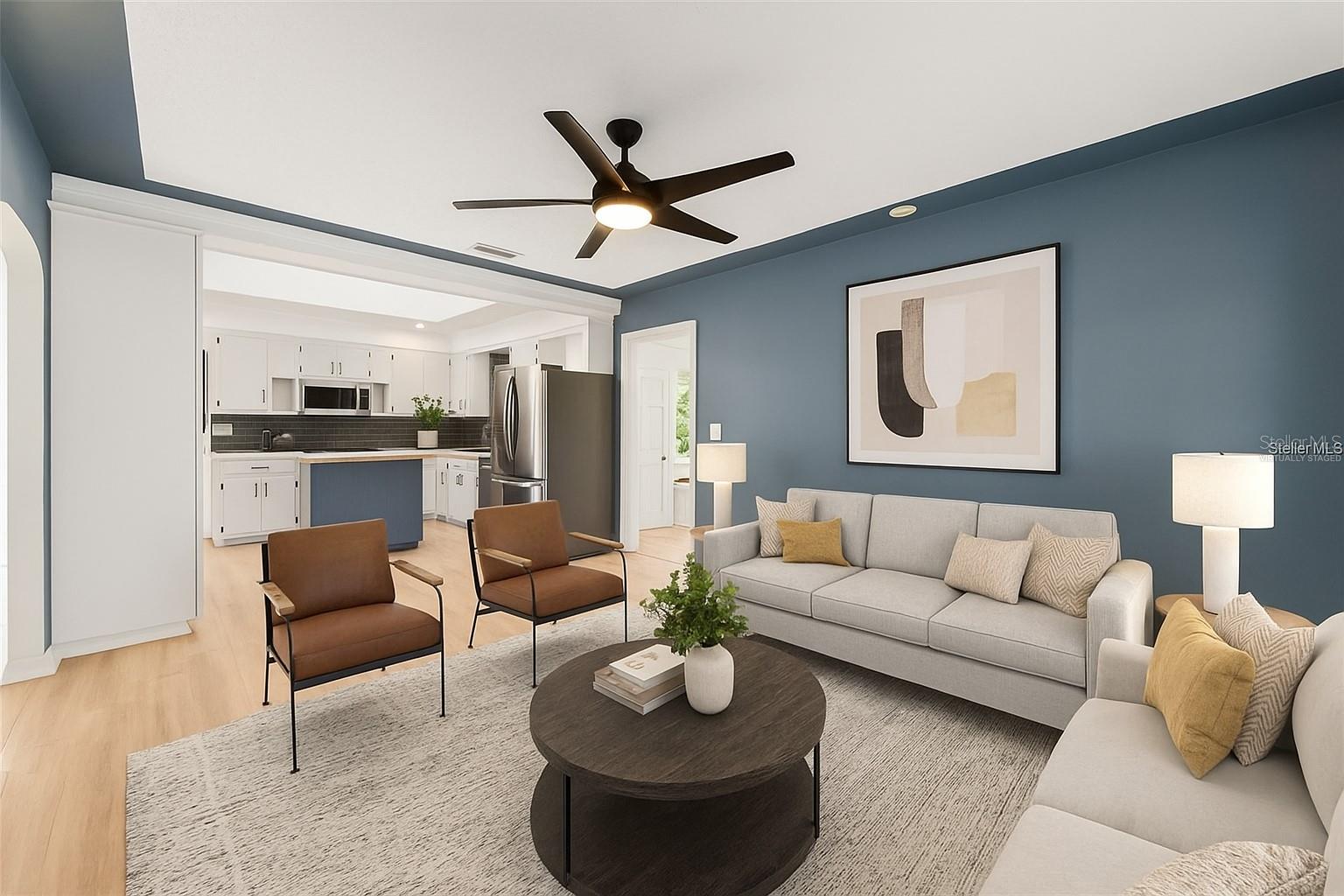 Attic Ventilator, Ceiling Fans(s), Eat-in Kitchen, Open Floorplan, Thermostat, Vaulted Ceiling(s)